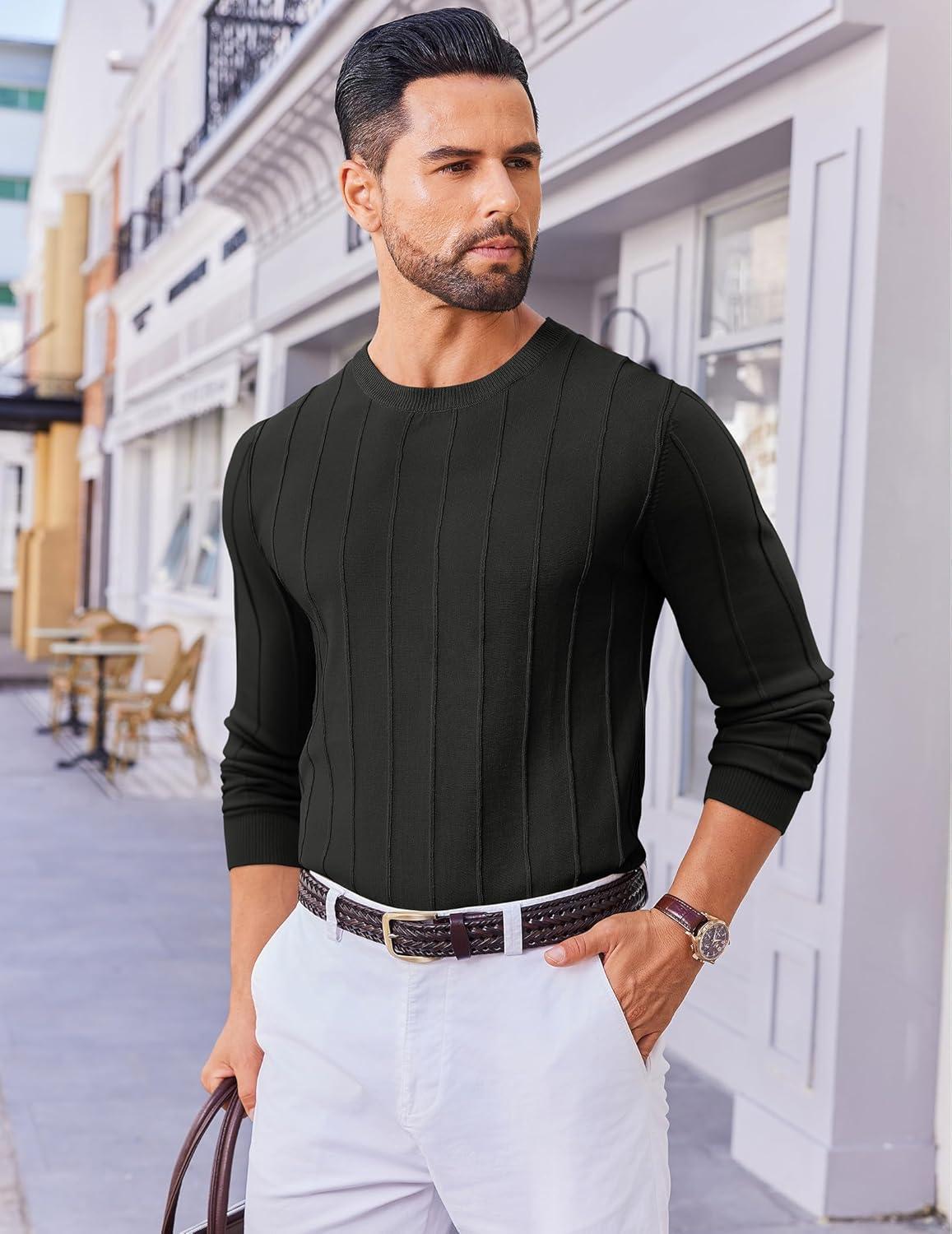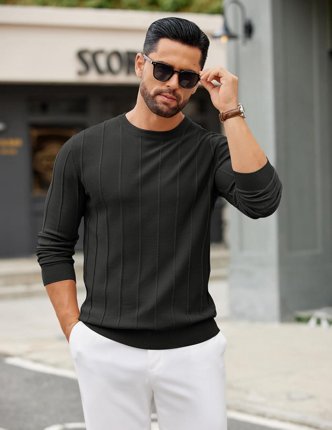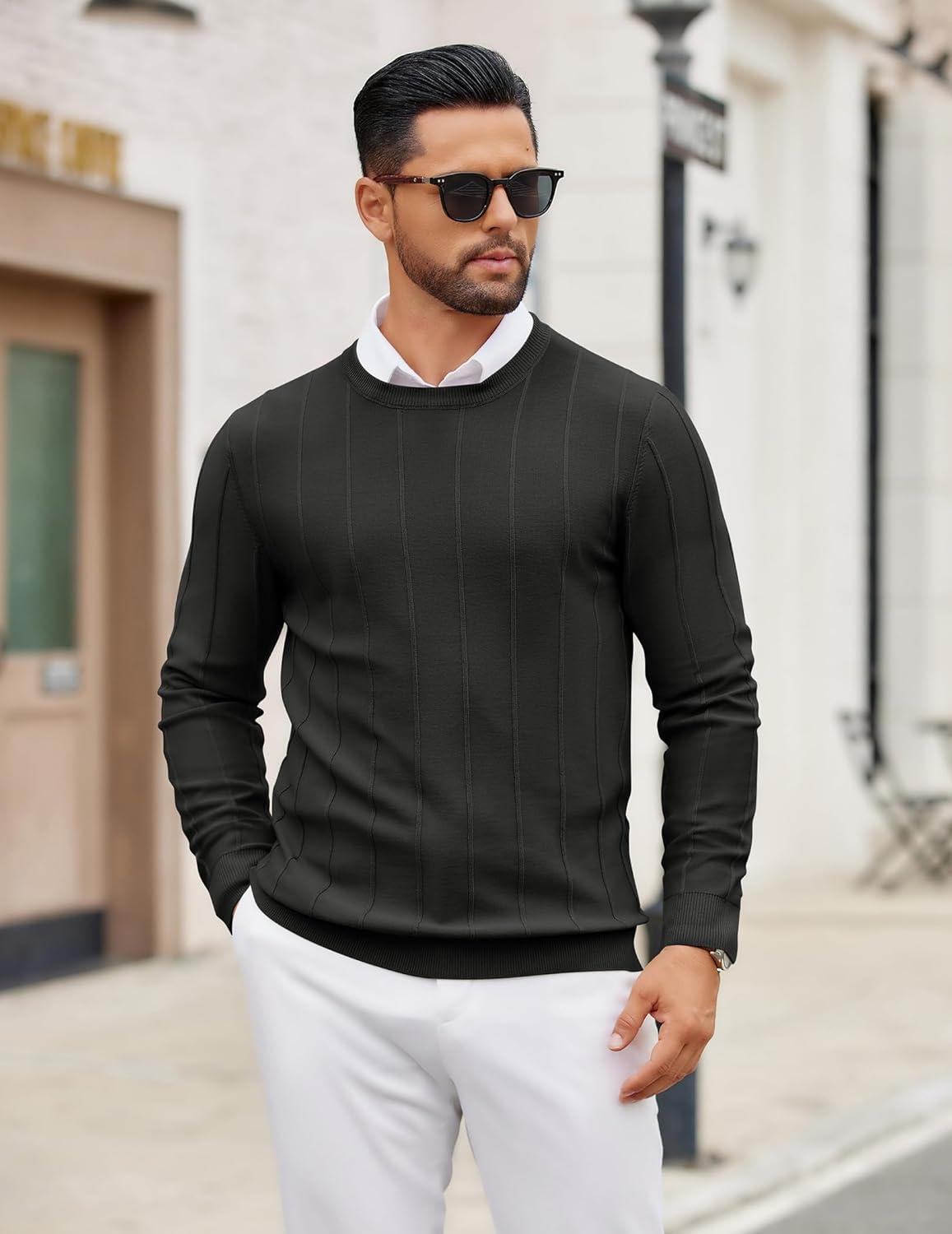 COOFANDY Men's Crew Neck Sweater Long Sleeve Ribbed Knit Dress Sweaters Casual Slim Fit Pullover(Black)
