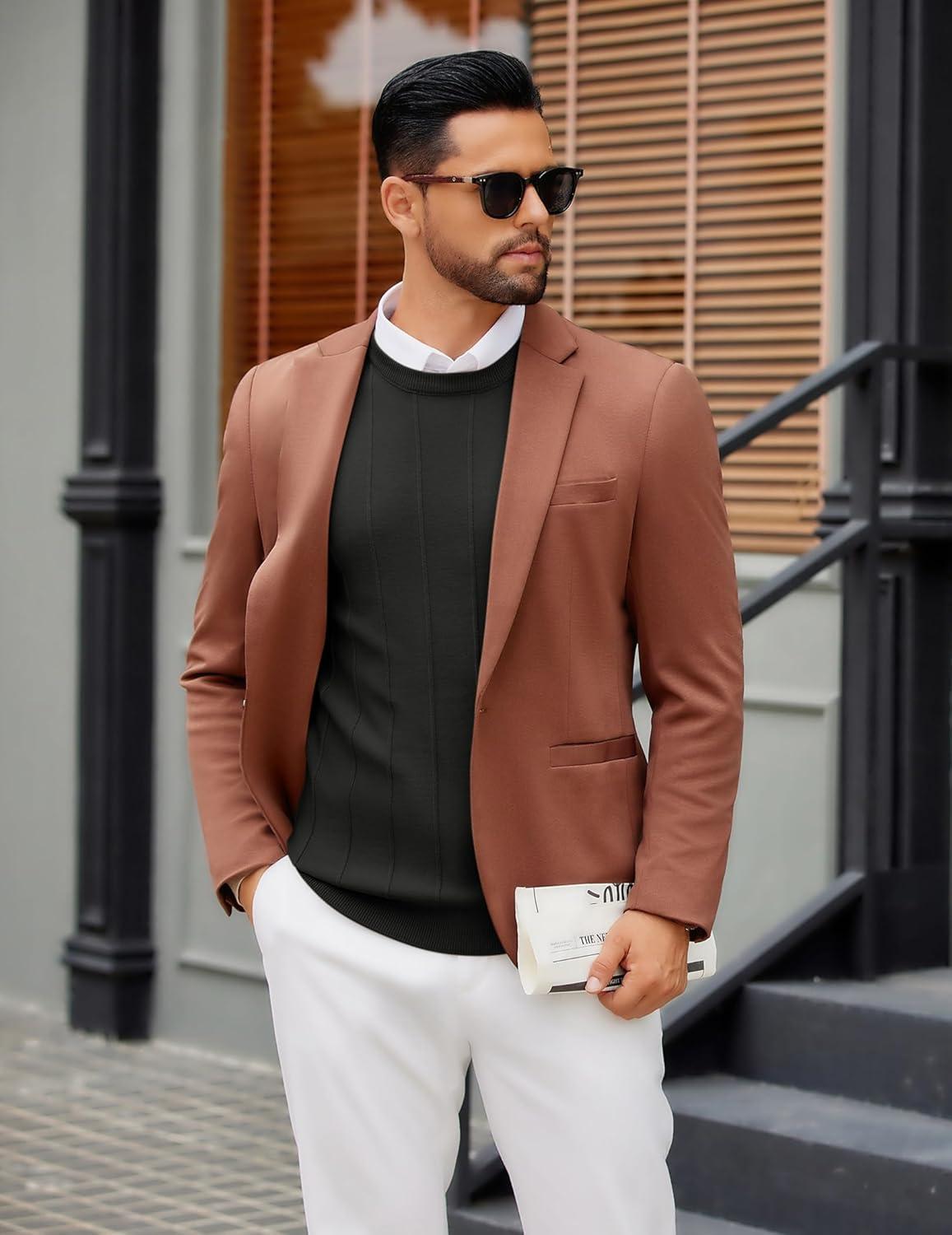 COOFANDY Men’s Crew Neck Sweater Long Sleeve Ribbed Knit Dress Sweaters Casual Slim Fit Pullover(Caramel)