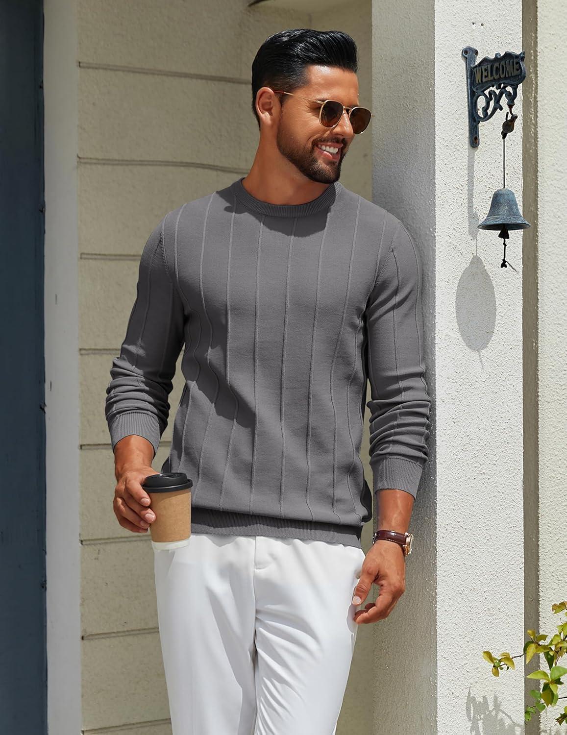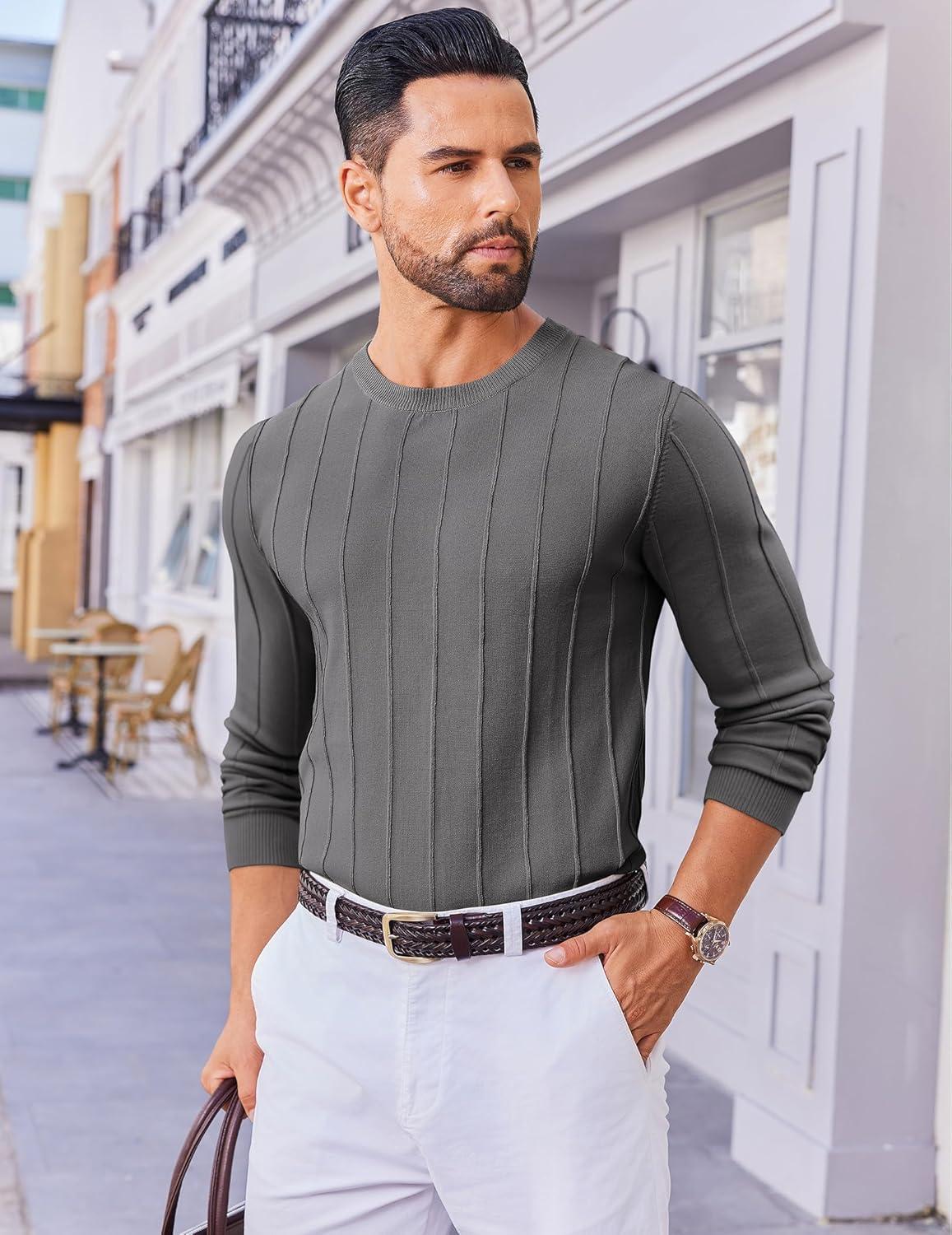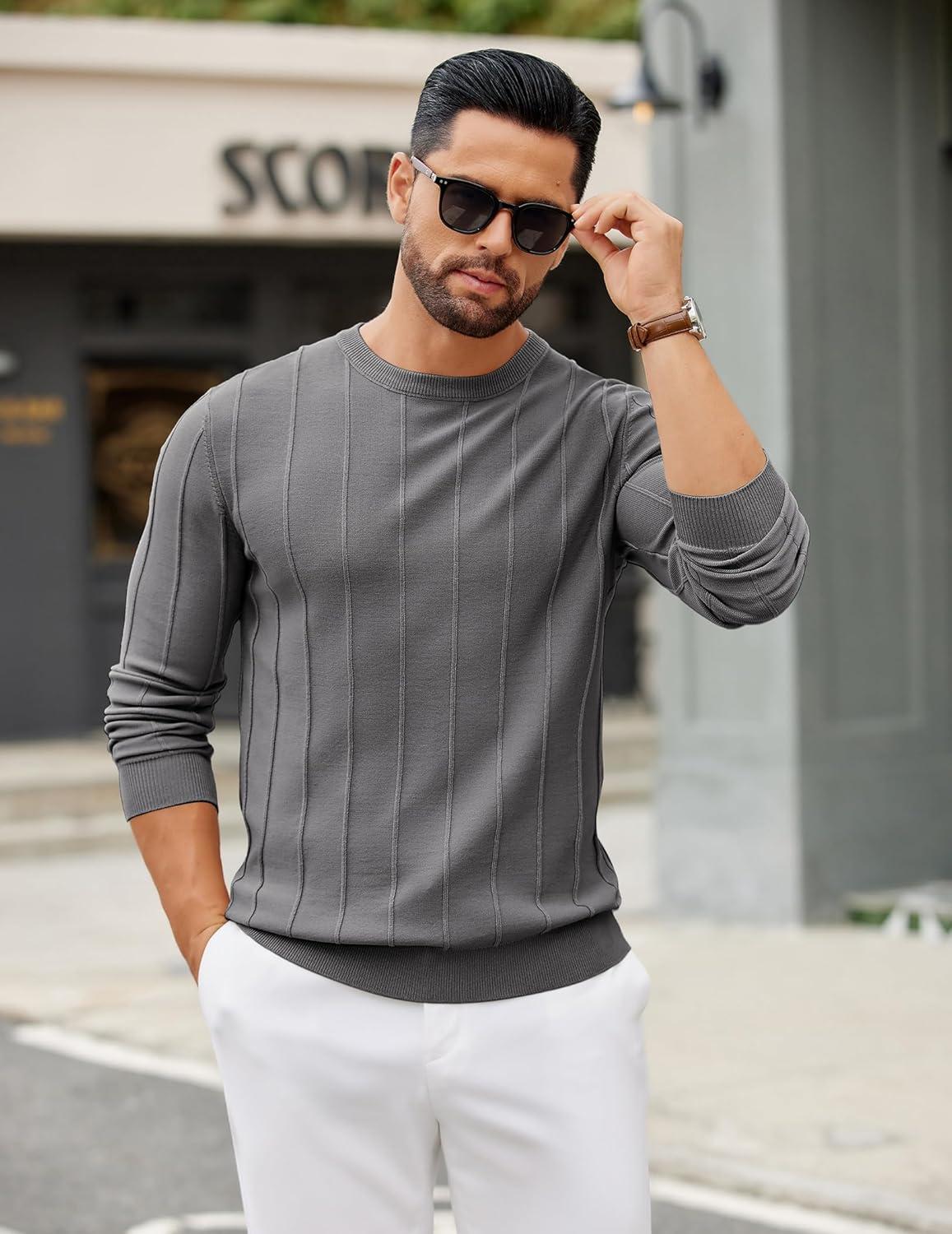 Get up to 70% off on COOFANDY Men’s Crew Neck Sweater Long Sleeve Ribbed Knit Dress Sweaters Casual Slim Fit Pullover(Dark Grey) styles during our end-of-season clearance event.