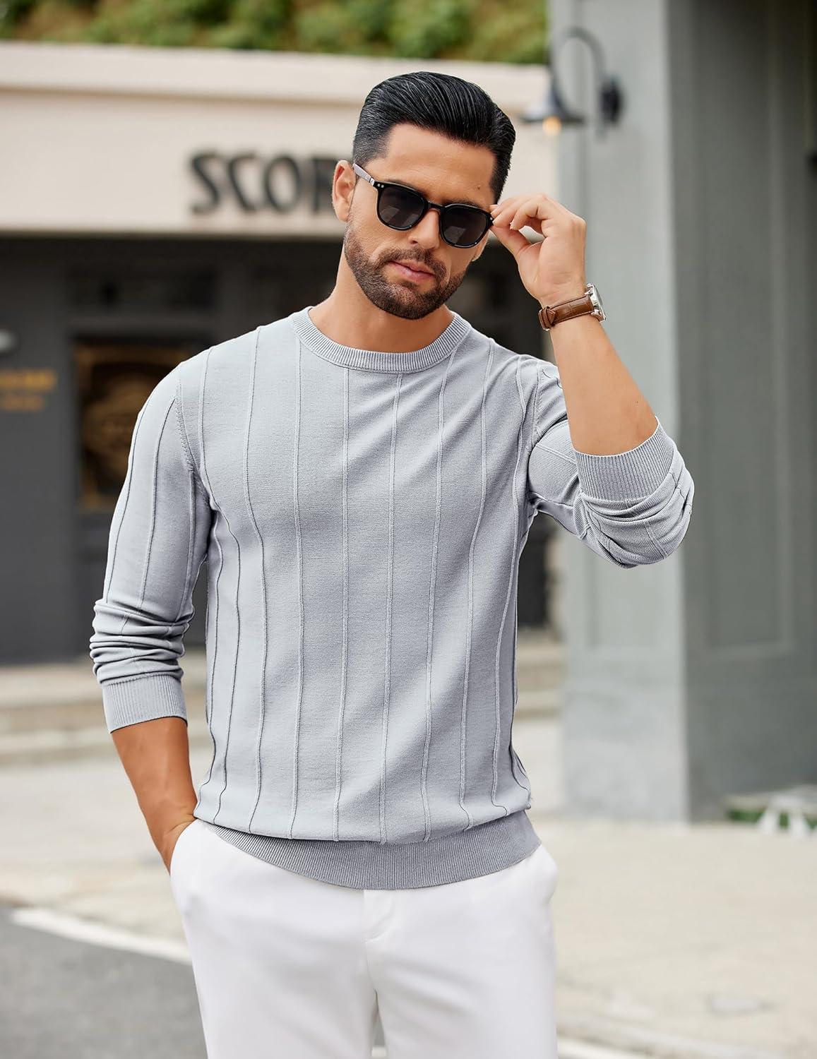 Don’t miss out on our limited-time offer: buy COOFANDY Men’s Crew Neck Sweater Long Sleeve Ribbed Knit Dress Sweaters Casual Slim Fit Pullover(Light Grey), get {accessory} 50% off!