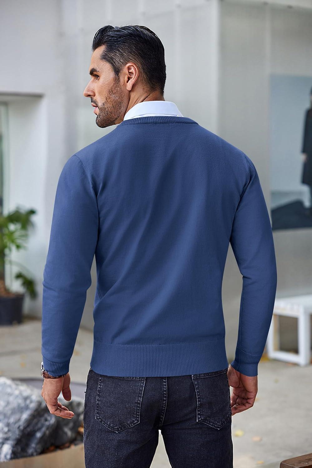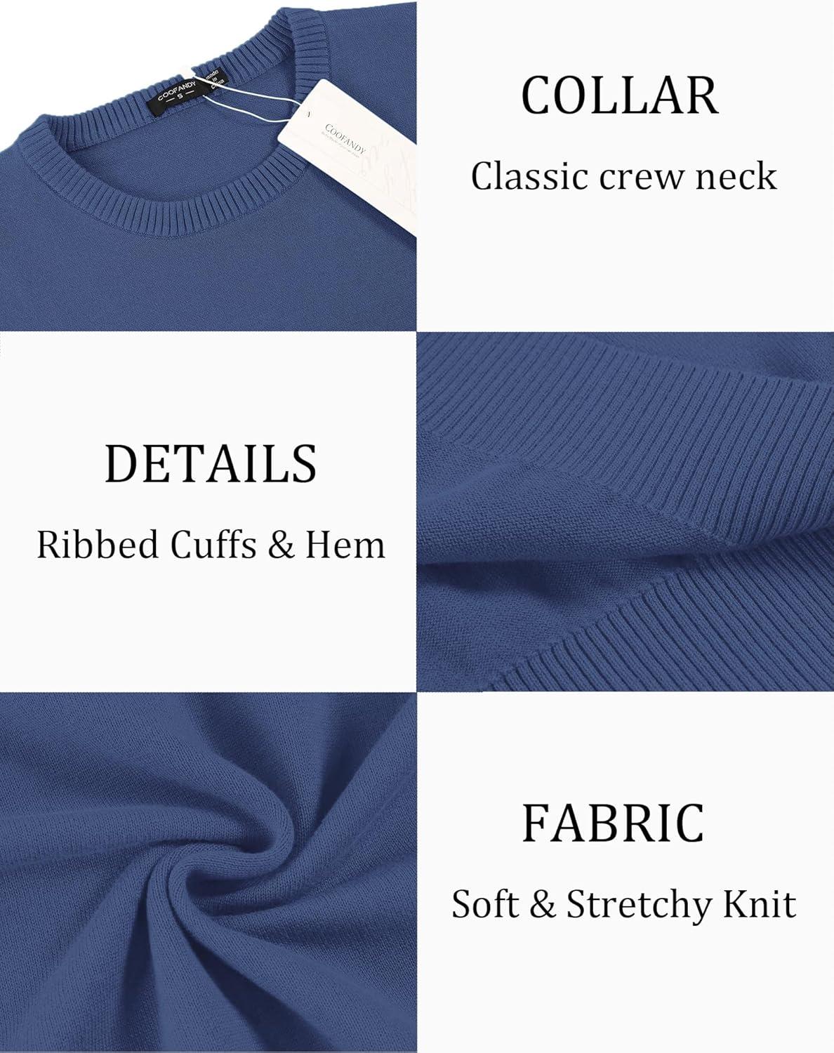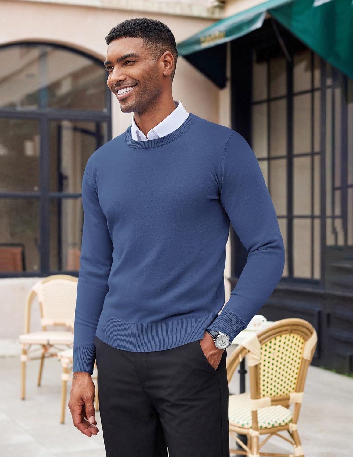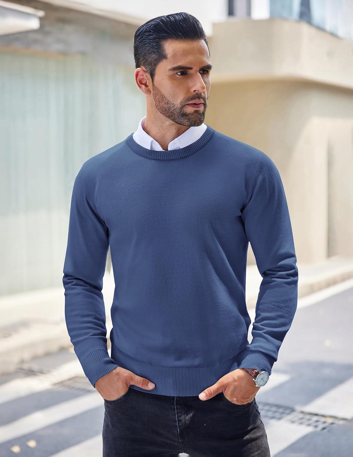 COOFANDY Men's Crew Neck Sweater Slim Fit Lightweight Sweatshirts Knitted Pullover for Casual Or Dressy Wear(Blue)