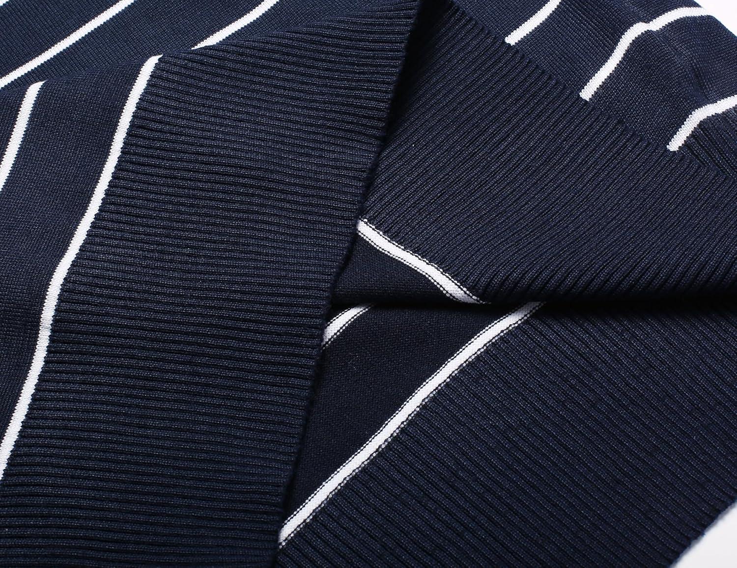 COOFANDY Men's Crew Neck Sweater Slim Fit Lightweight Sweatshirts Knitted Pullover for Casual Or Dressy Wear(Horizontal Stripes White & Navy Blue)