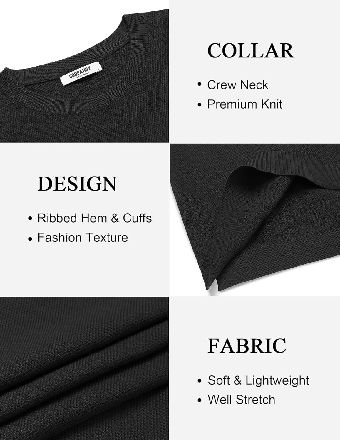 COOFANDY Mens Crew Neck Sweaters Long Sleeve Lightweight Knit Dress Pullover Sweaters(Black)