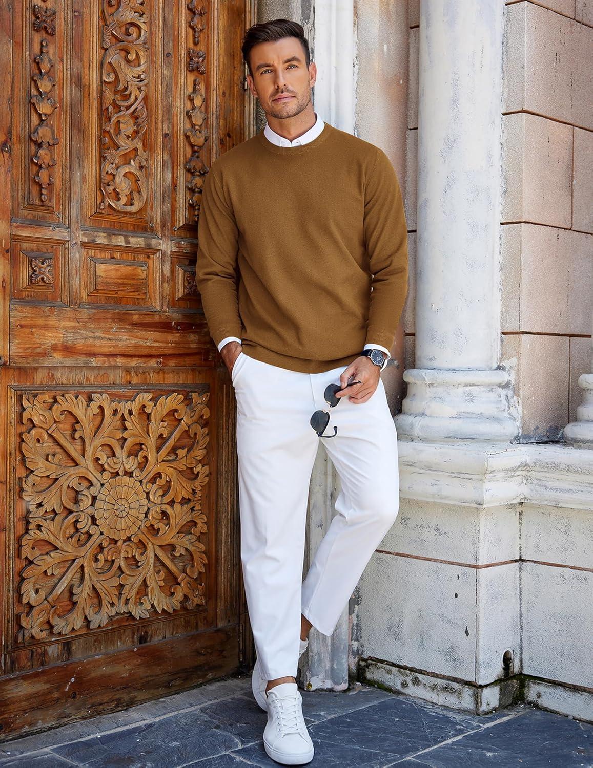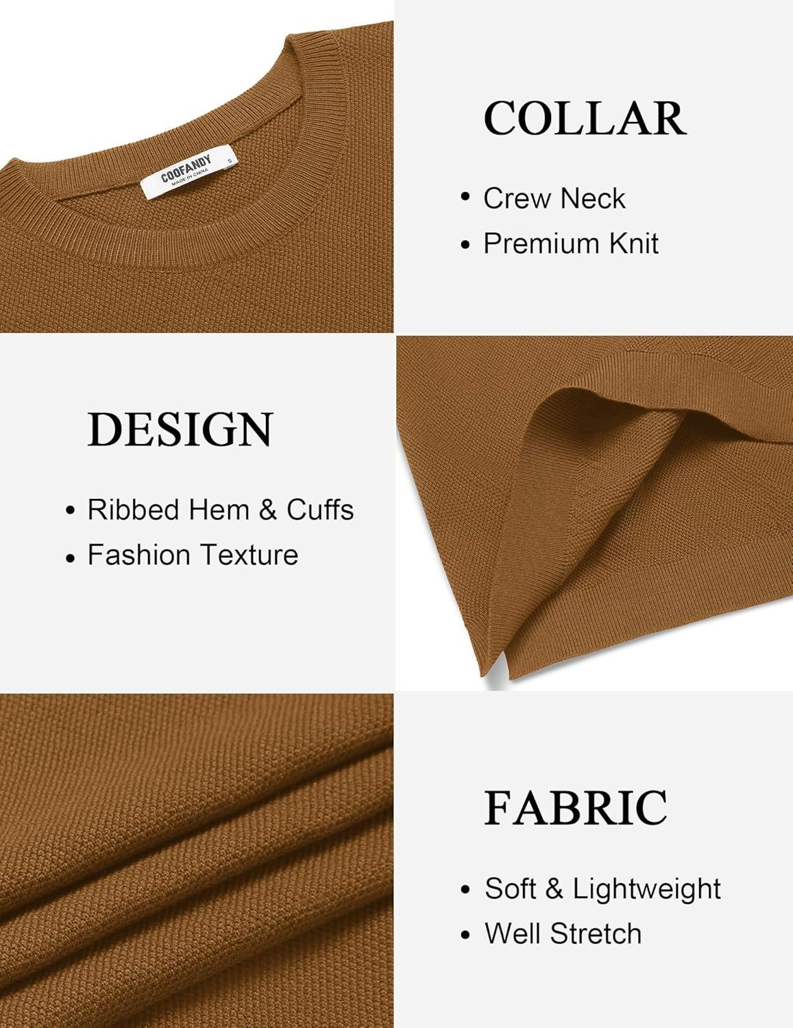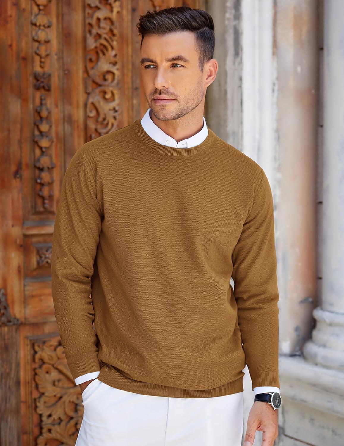 COOFANDY Mens Crew Neck Sweaters Long Sleeve Lightweight Knit Dress Pullover Sweaters(Brown)