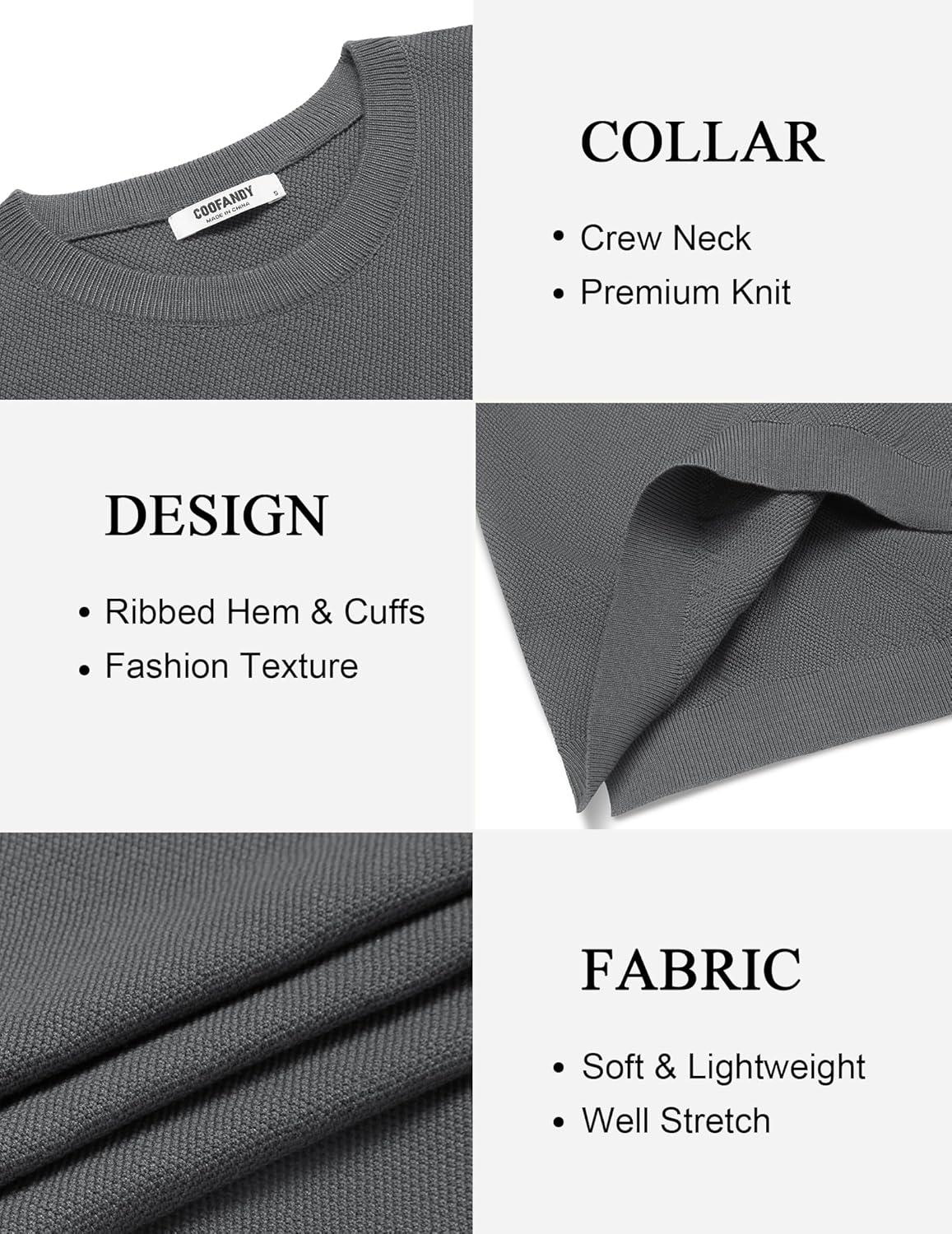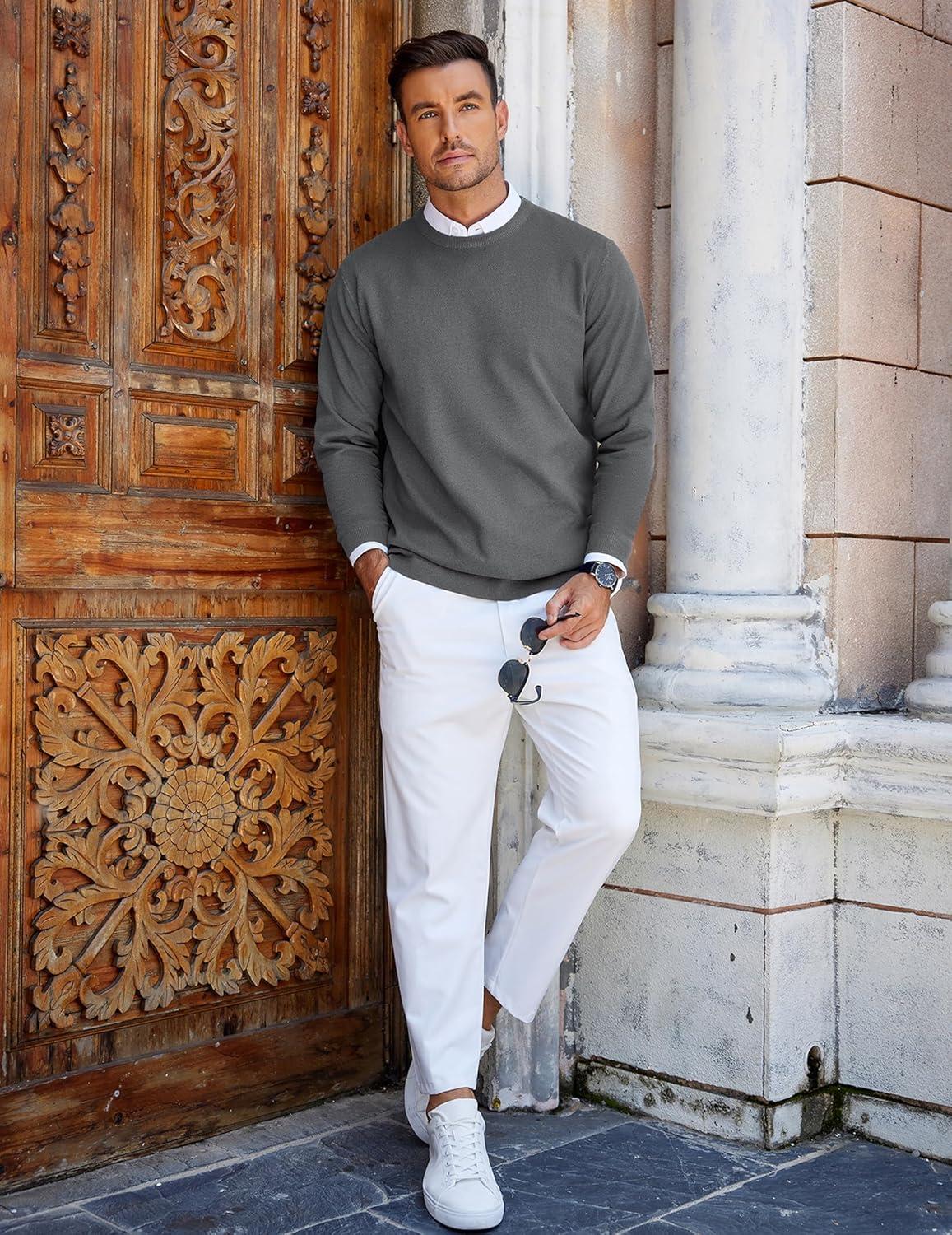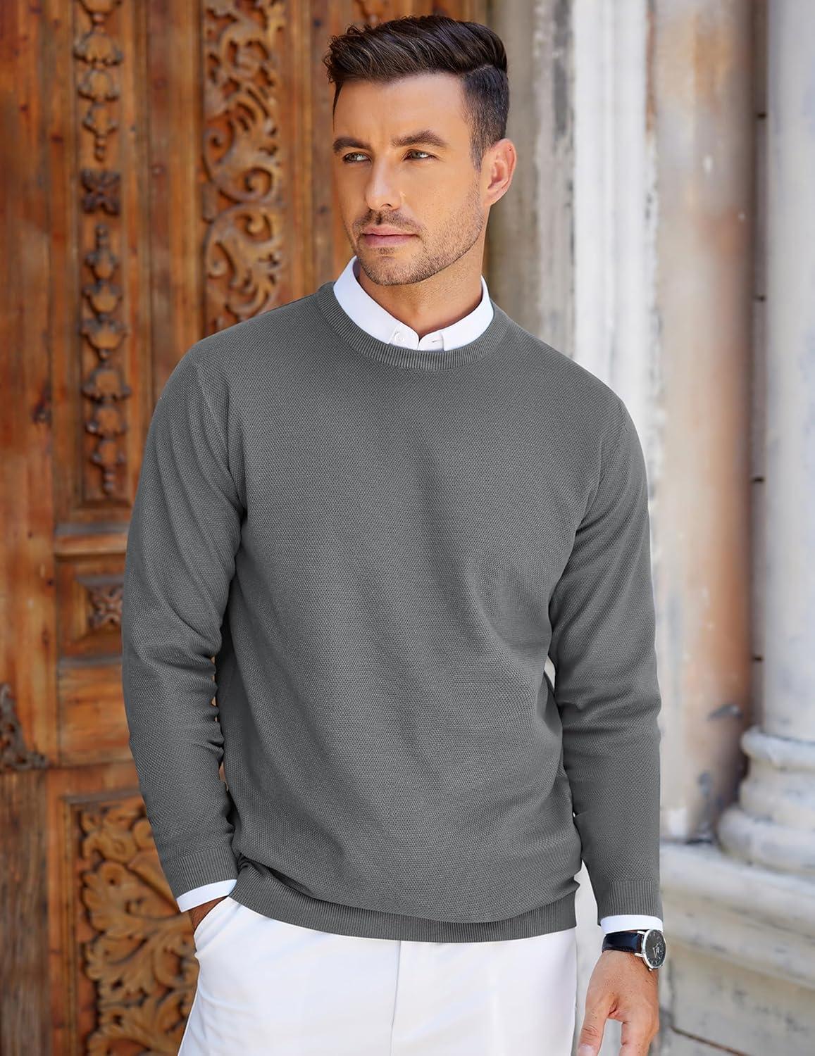COOFANDY Mens Crew Neck Sweaters Long Sleeve Lightweight Knit Dress Pullover Sweaters(Dark Gray)