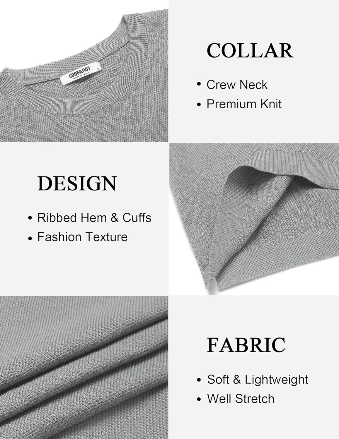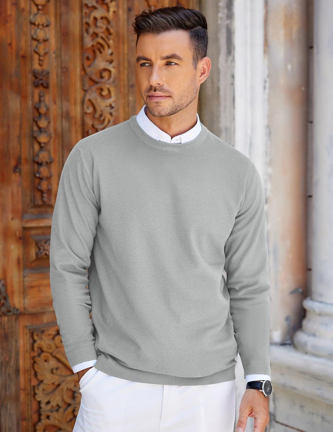 COOFANDY Mens Crew Neck Sweaters Long Sleeve Lightweight Knit Dress Pullover Sweaters(Light Gray)