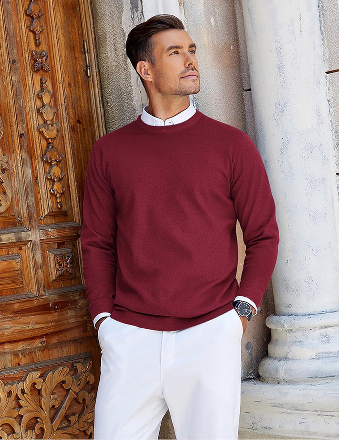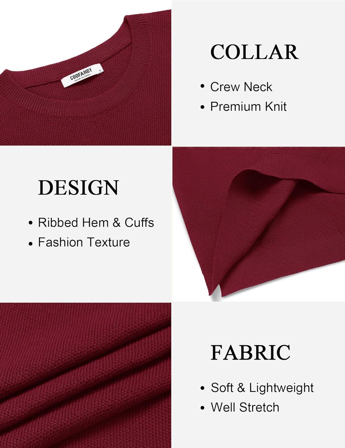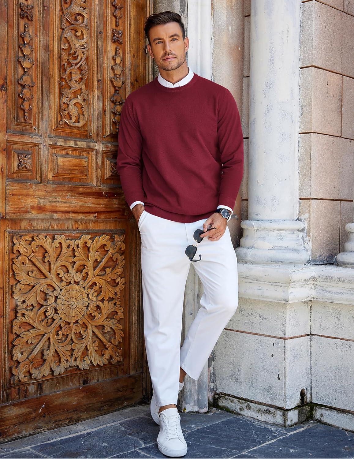 COOFANDY Mens Crew Neck Sweaters Long Sleeve Lightweight Knit Dress Pullover Sweaters(Wine Red)