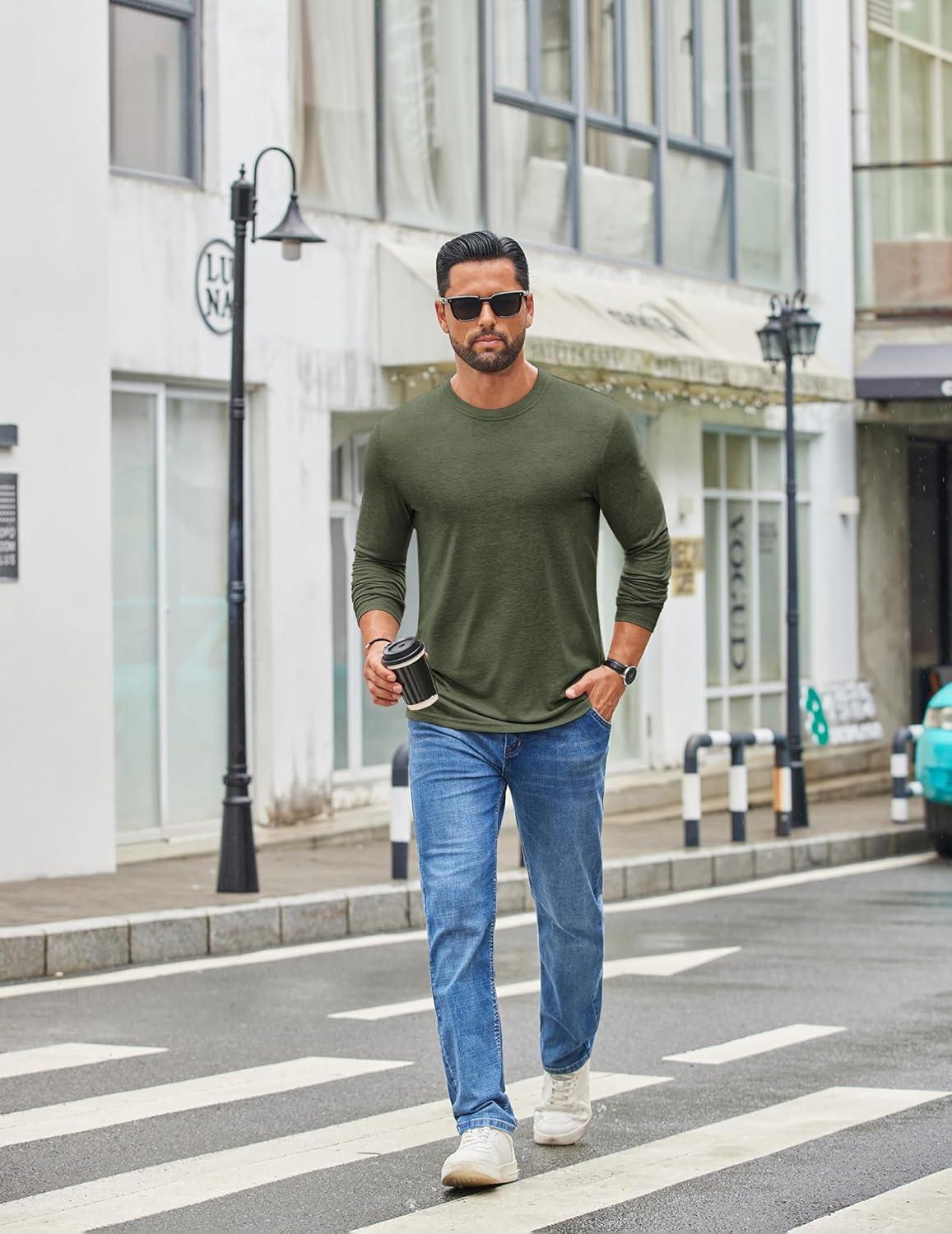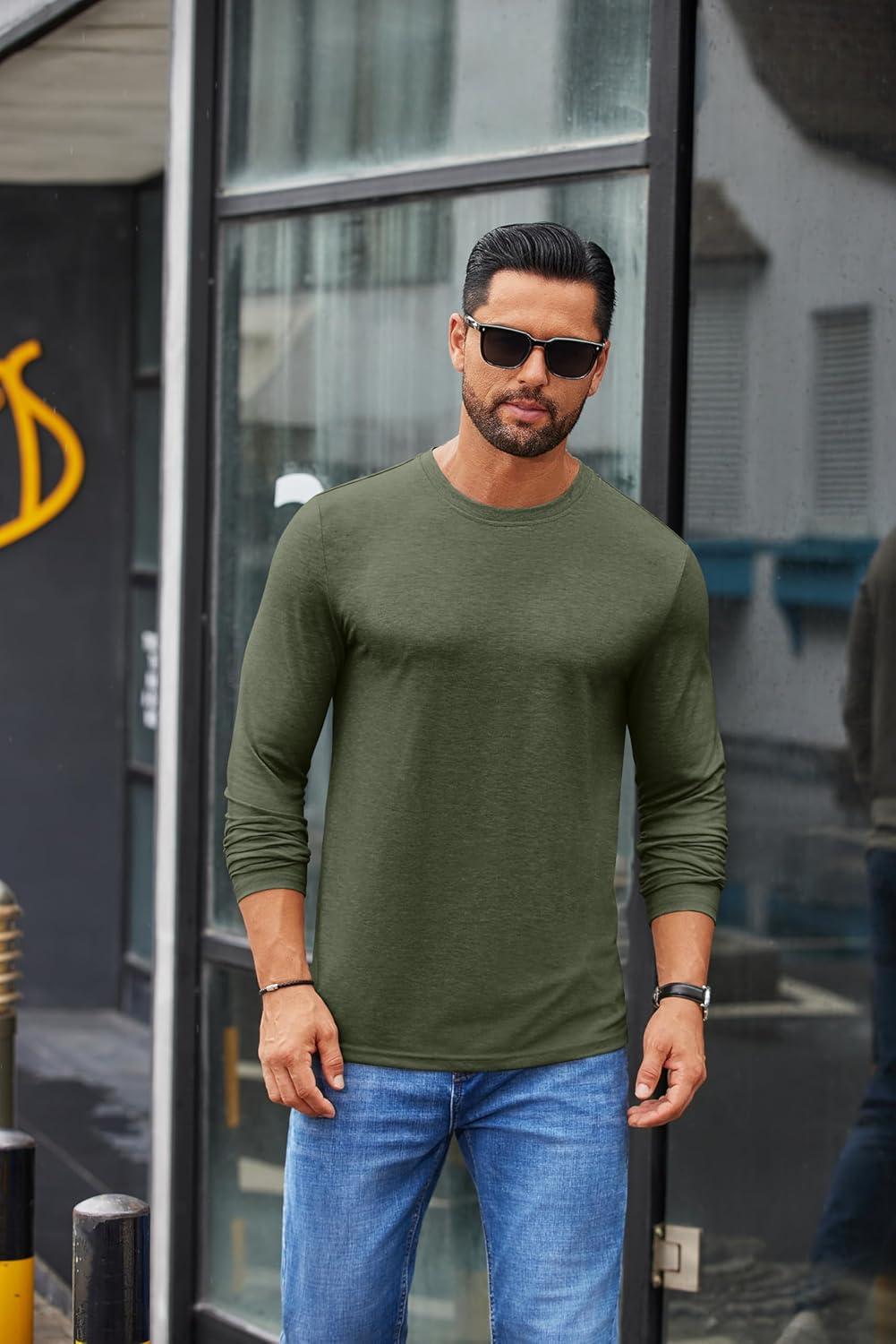 COOFANDY Men's Crew Neck T-Shirt Long Sleeve Casual Pullover Tees Soft Stretch Basic Tee Shirts(Army Green)