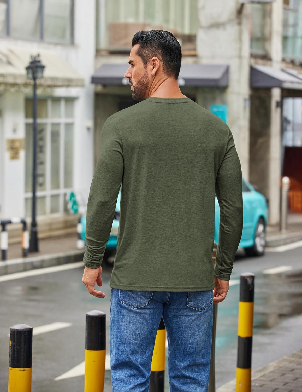 COOFANDY Men’s Crew Neck T-Shirt Long Sleeve Casual Pullover Tees Soft Stretch Basic Tee Shirts(Army Green)