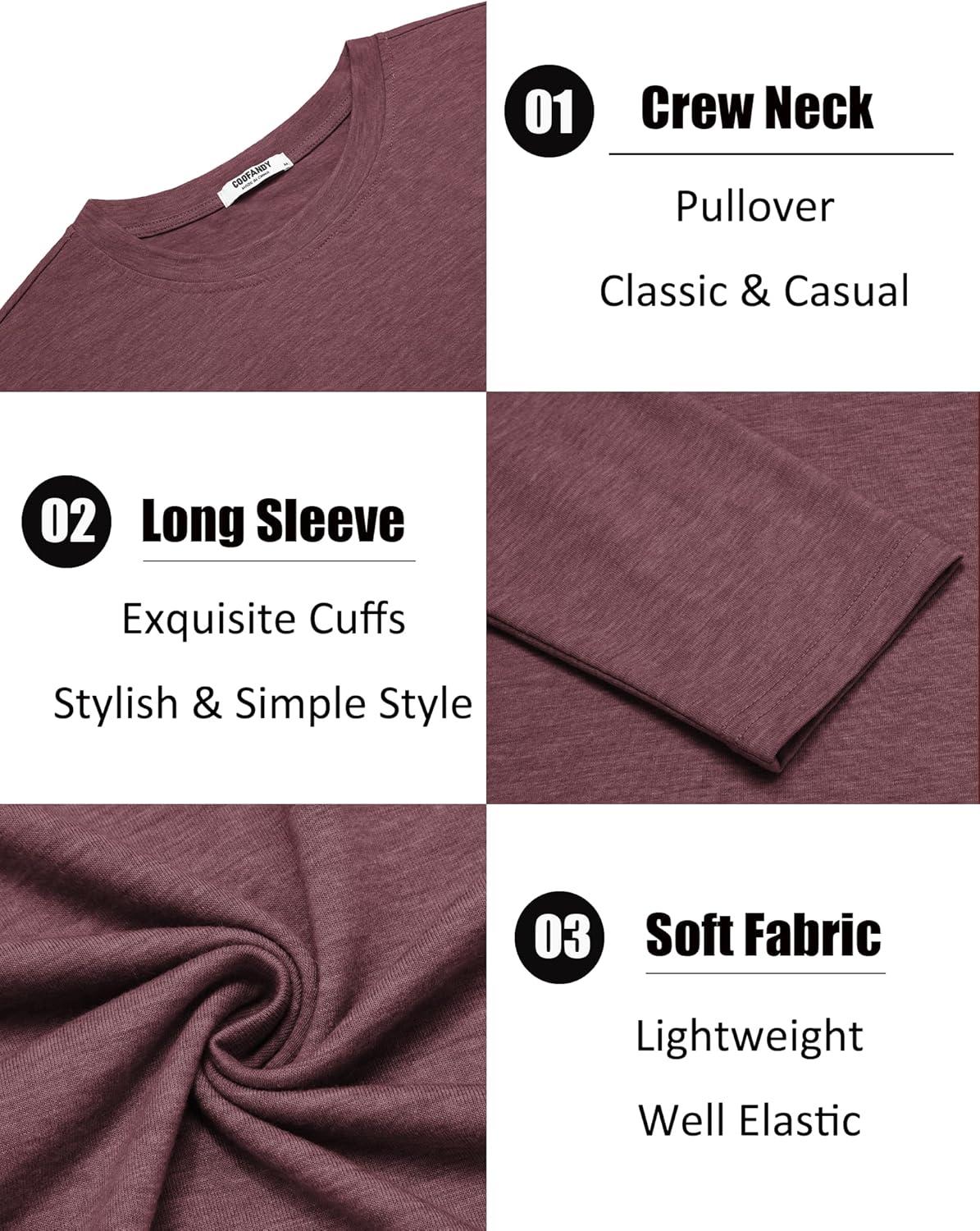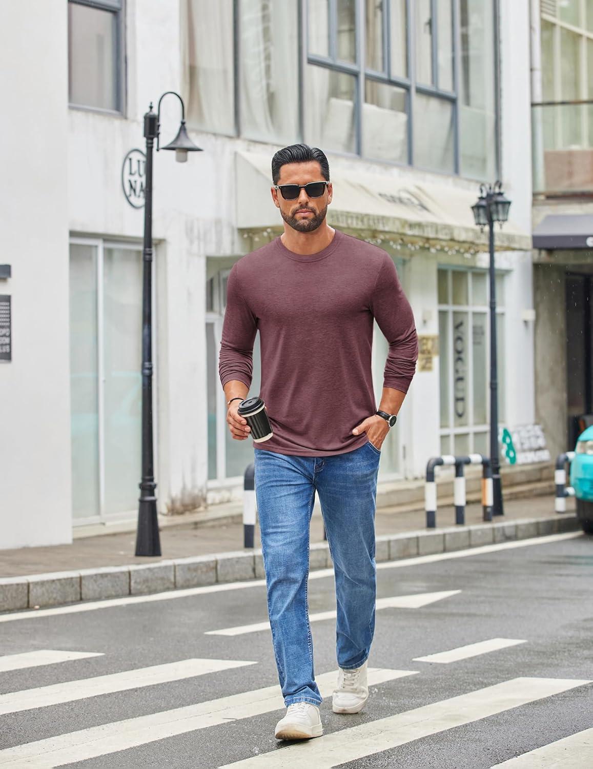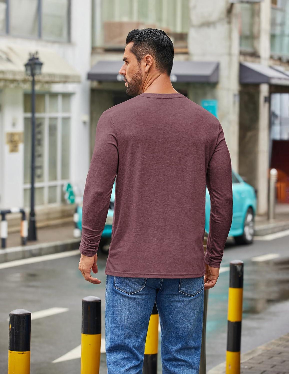 COOFANDY Men's Crew Neck T-Shirt Long Sleeve Casual Pullover Tees Soft Stretch Basic Tee Shirts(Dark Red)