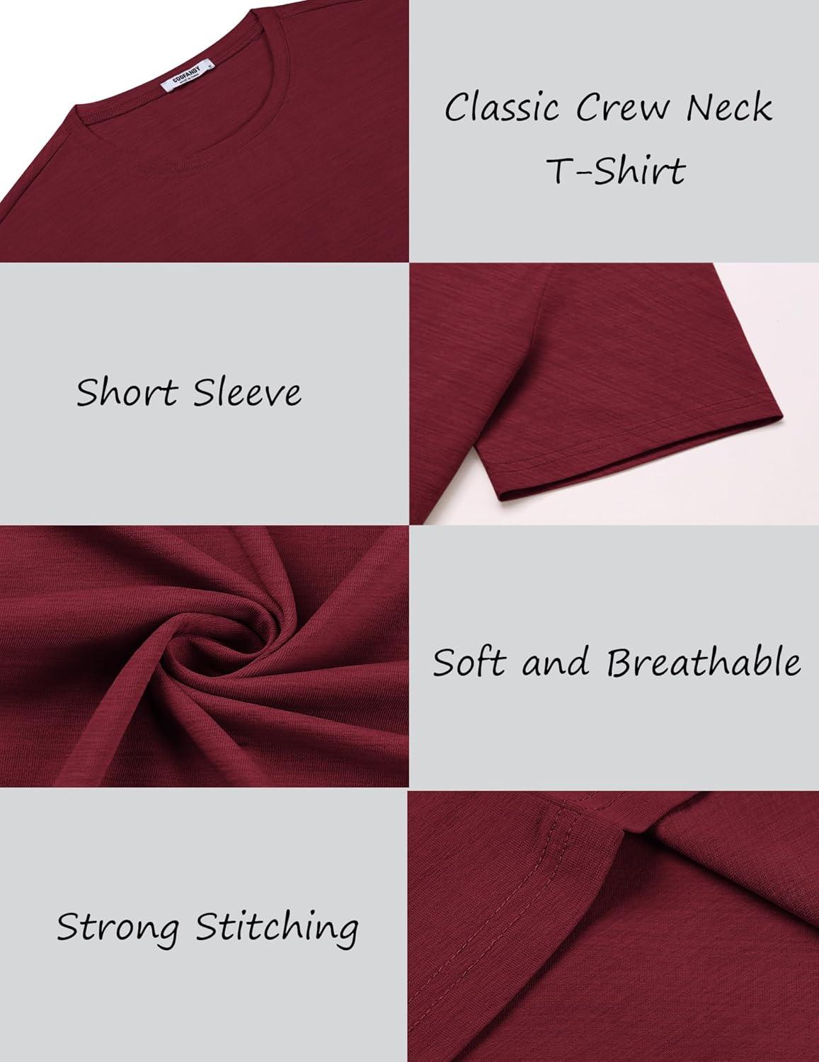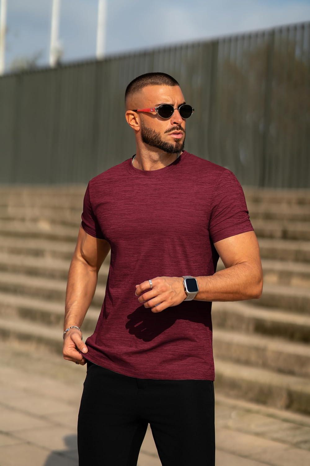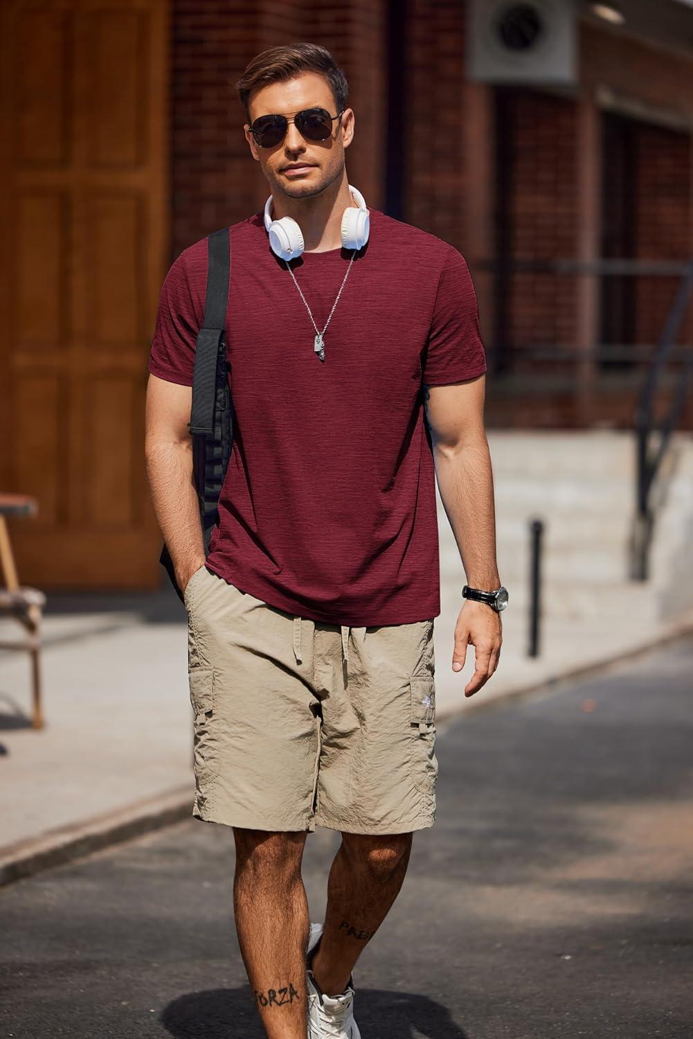 COOFANDY Mens Crew Neck T Shirt Short Sleeve Casual Summer Basic Tee Slim Fit Workout T-Shirt(Wine Red)