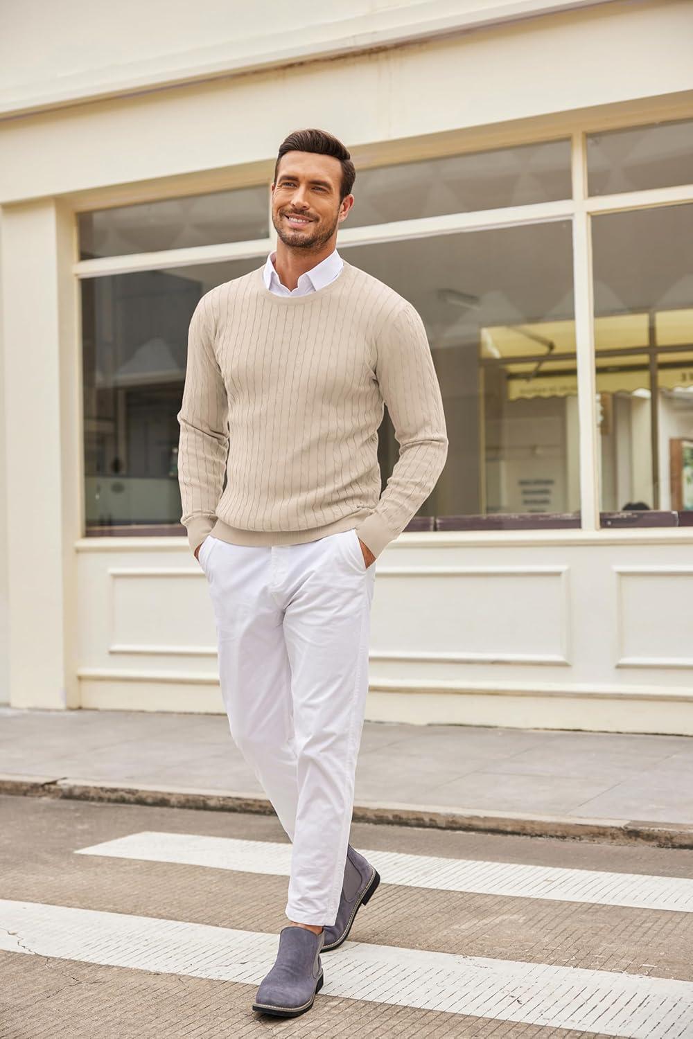 Save big on COOFANDY Men’s Crewneck Knit Sweater Slim Fit Lightweight Casual Twist Patterned Cable Knitted Pullover(A-beige) during our summer blowout sale. Limited quantities available.