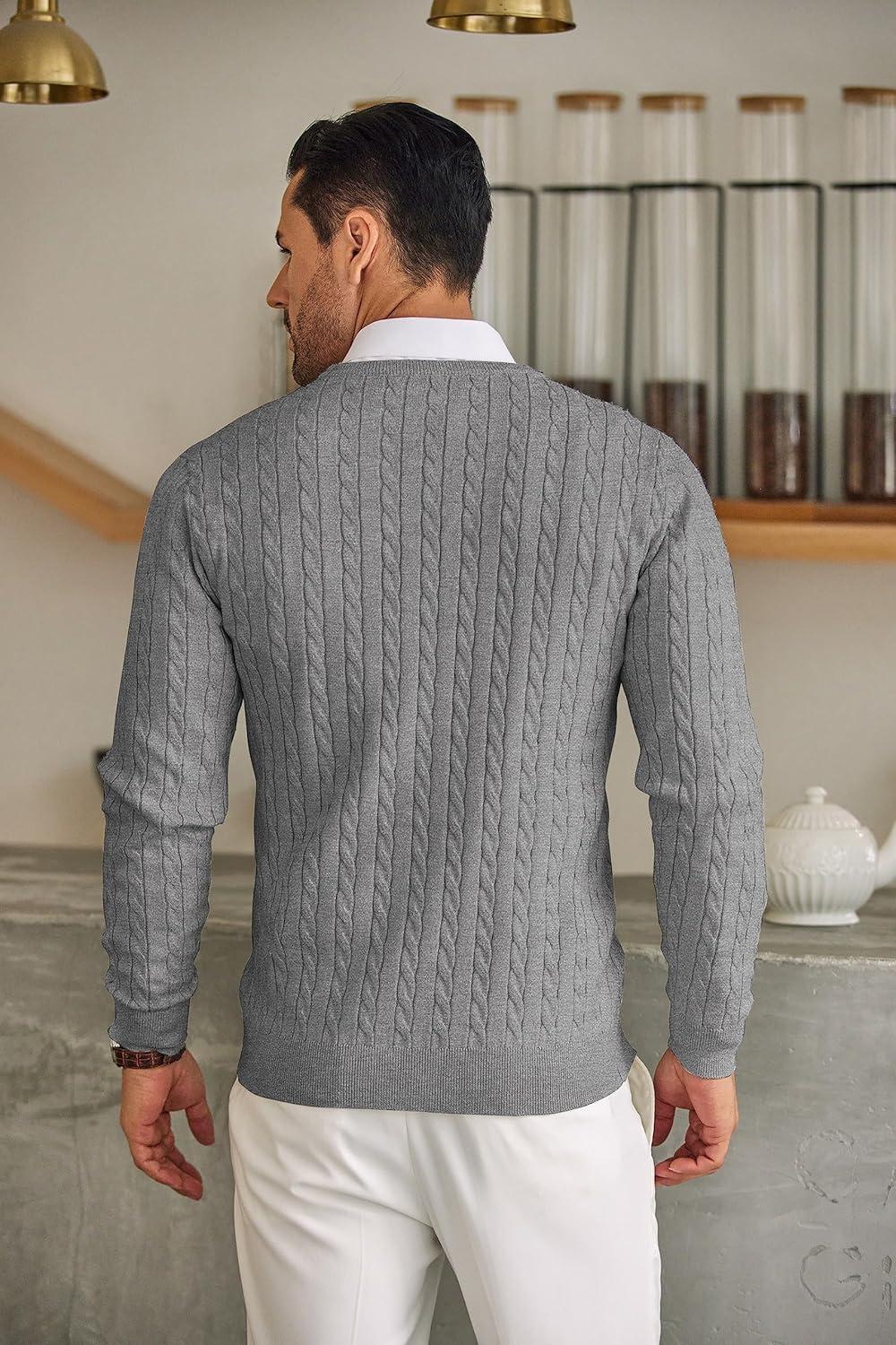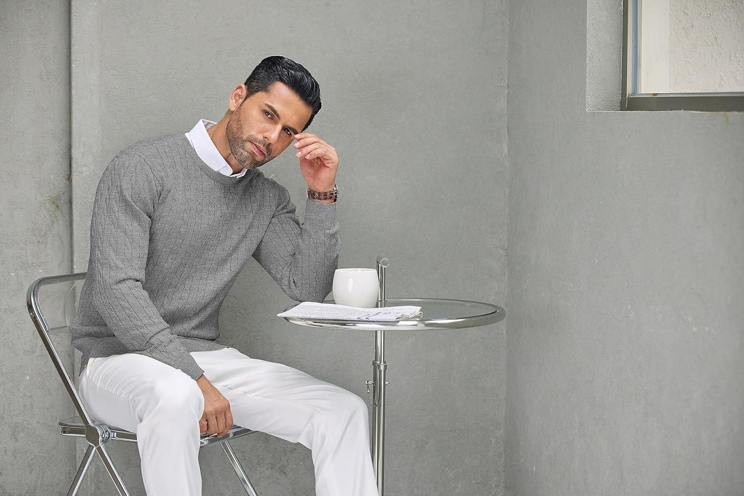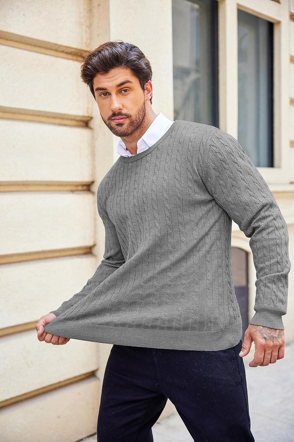 COOFANDY Men’s Crewneck Knit Sweater Slim Fit Lightweight Casual Twist Patterned Cable Knitted Pullover(A-grey)