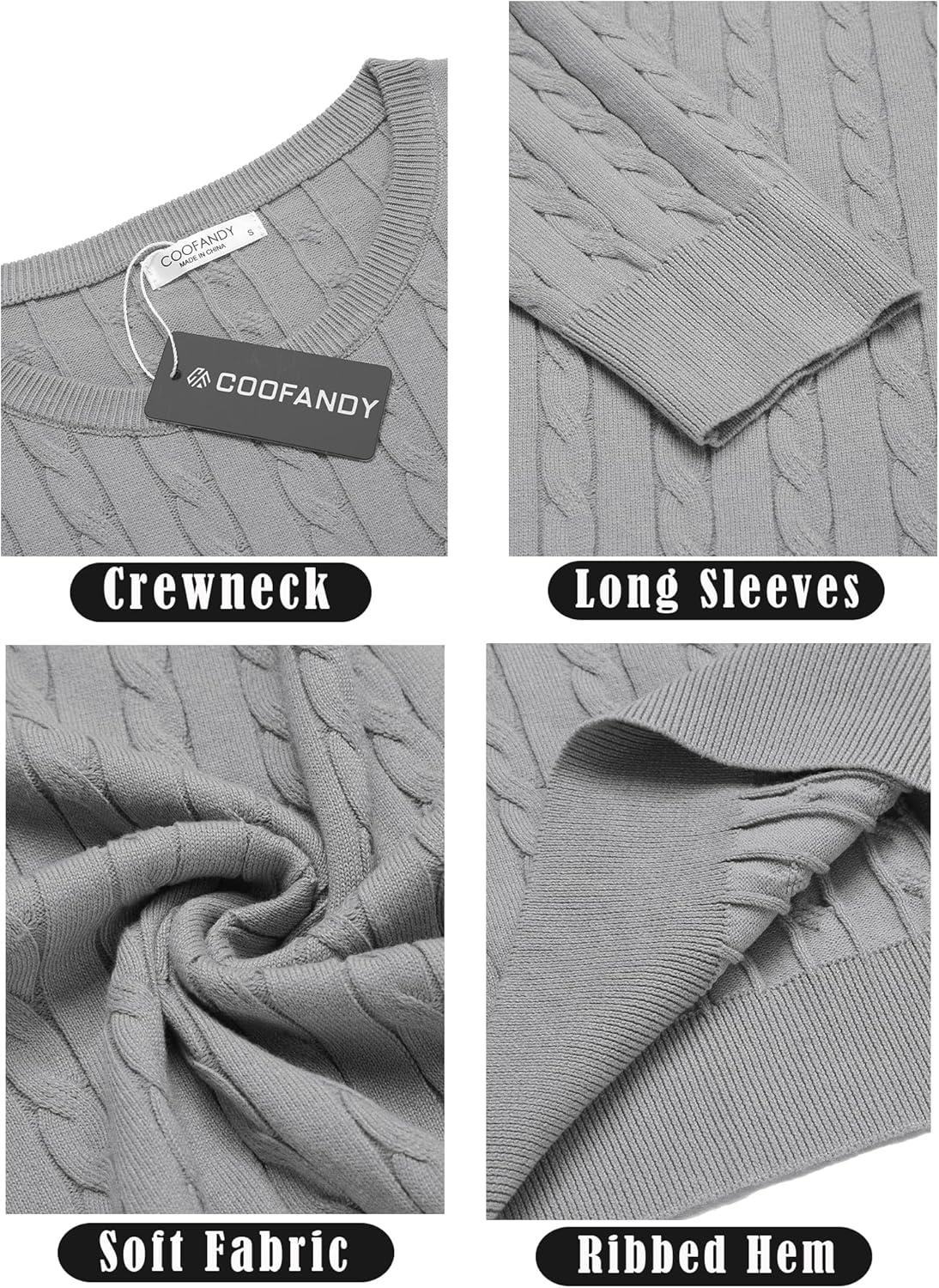 COOFANDY Men's Crewneck Knit Sweater Slim Fit Lightweight Casual Twist Patterned Cable Knitted Pullover(A-grey)