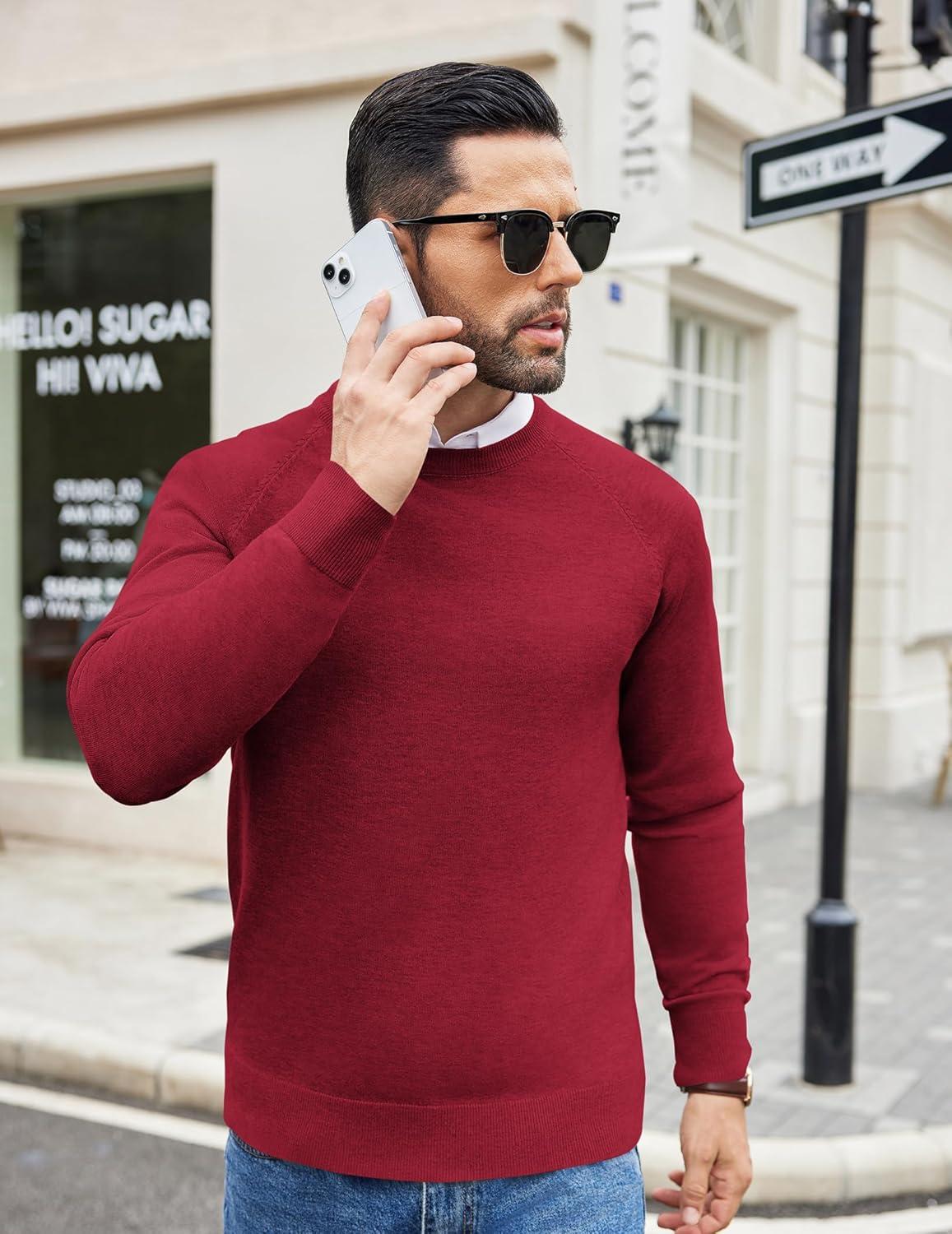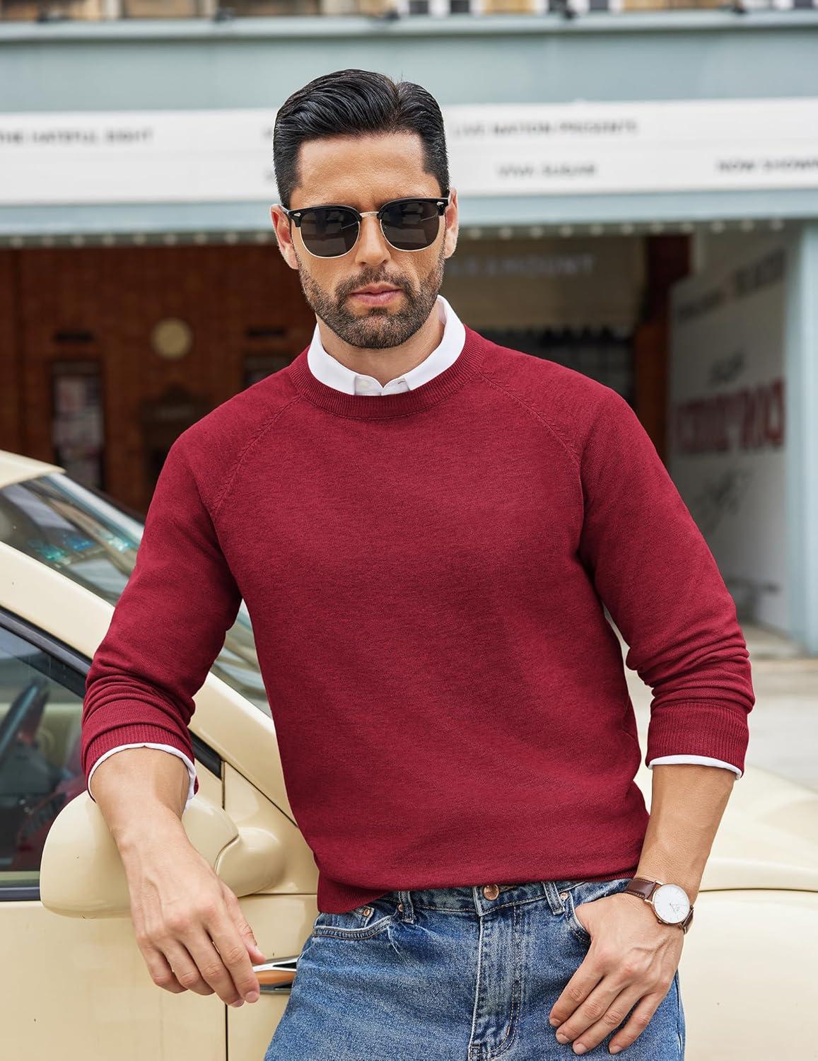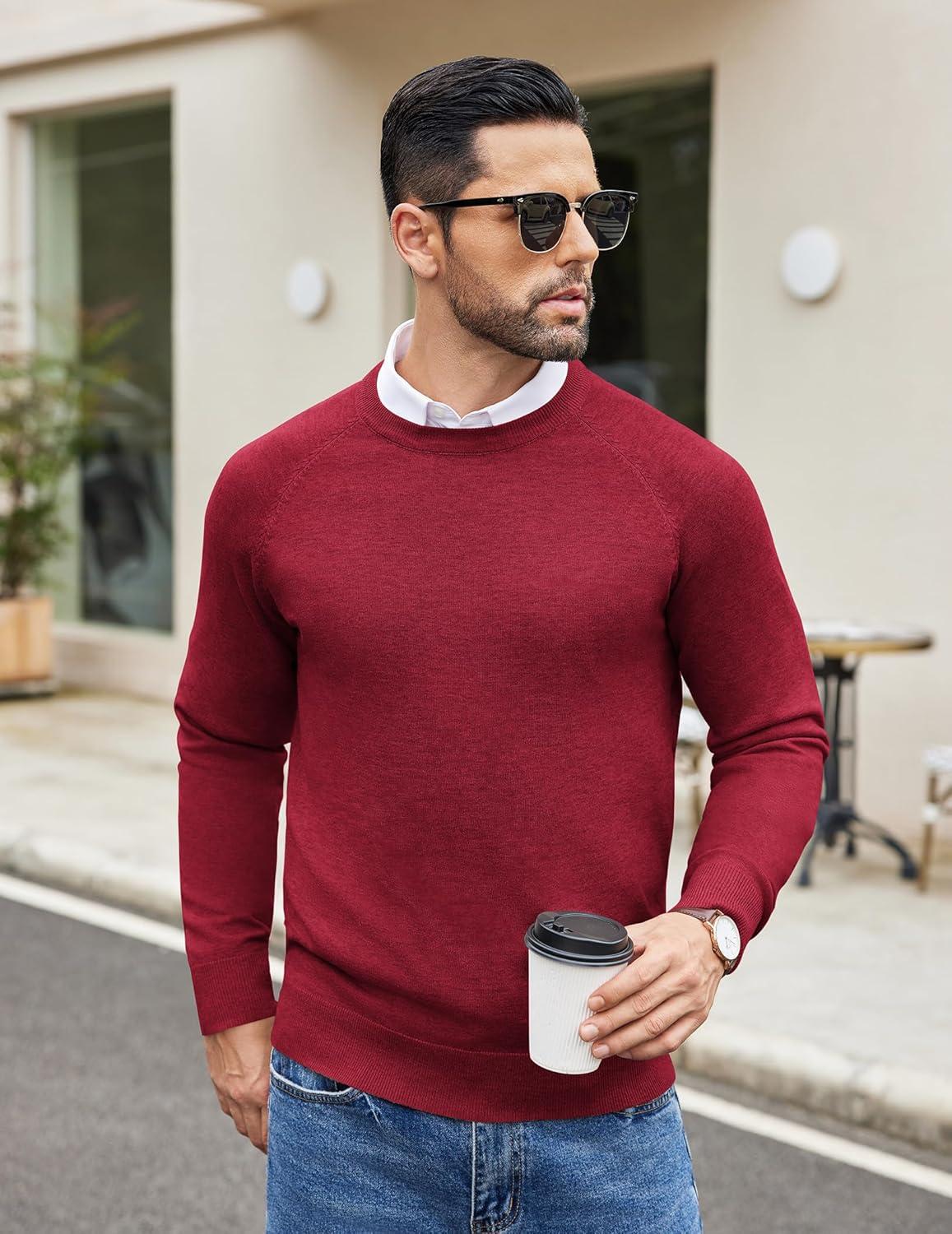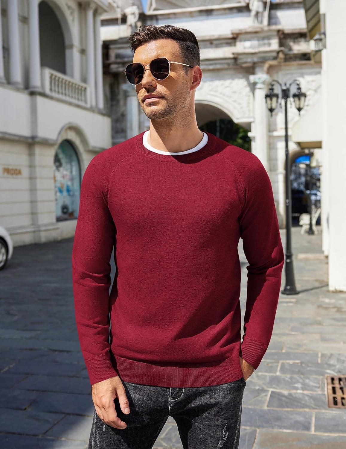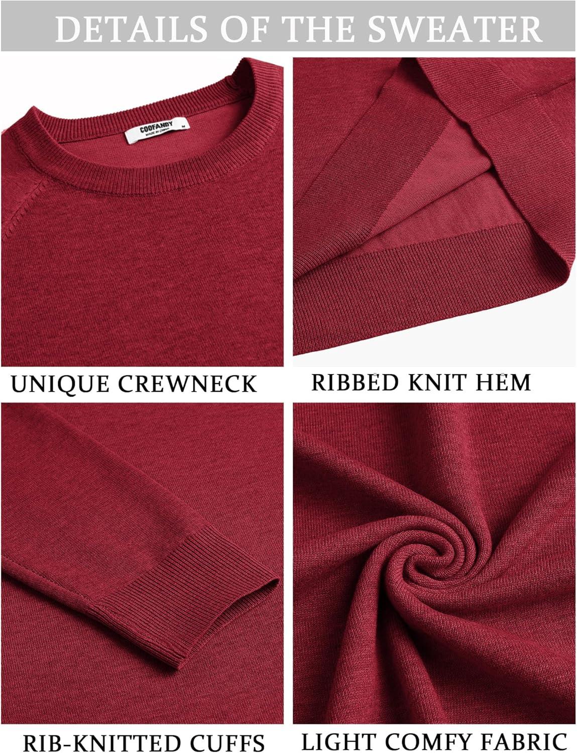 COOFANDY Men’s Crewneck Sweater Casual Dress Pullover Sweater Slim Fit Lightweight Long Sleeve Raglan Sweaters(Red)
