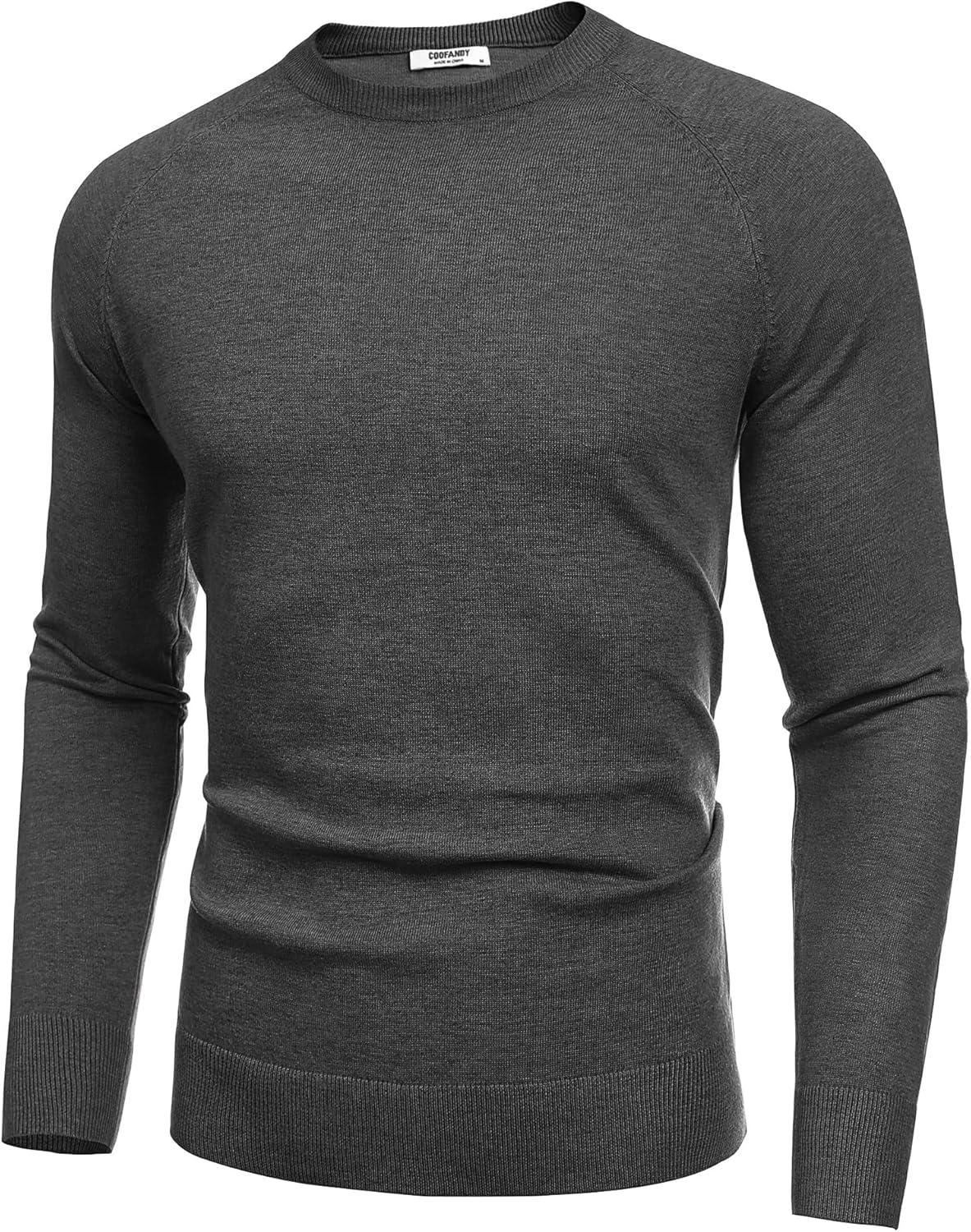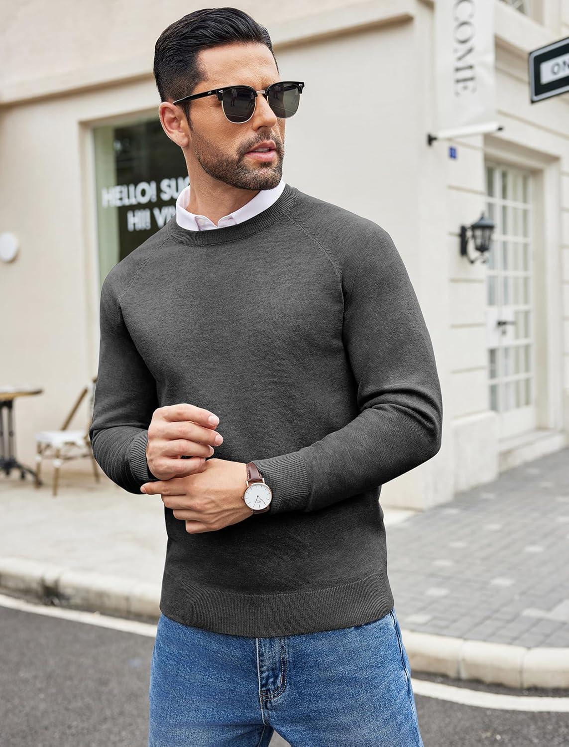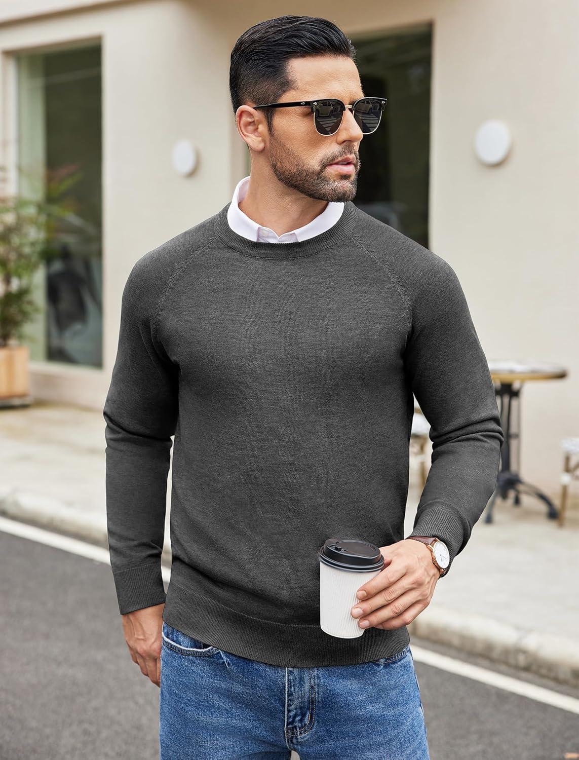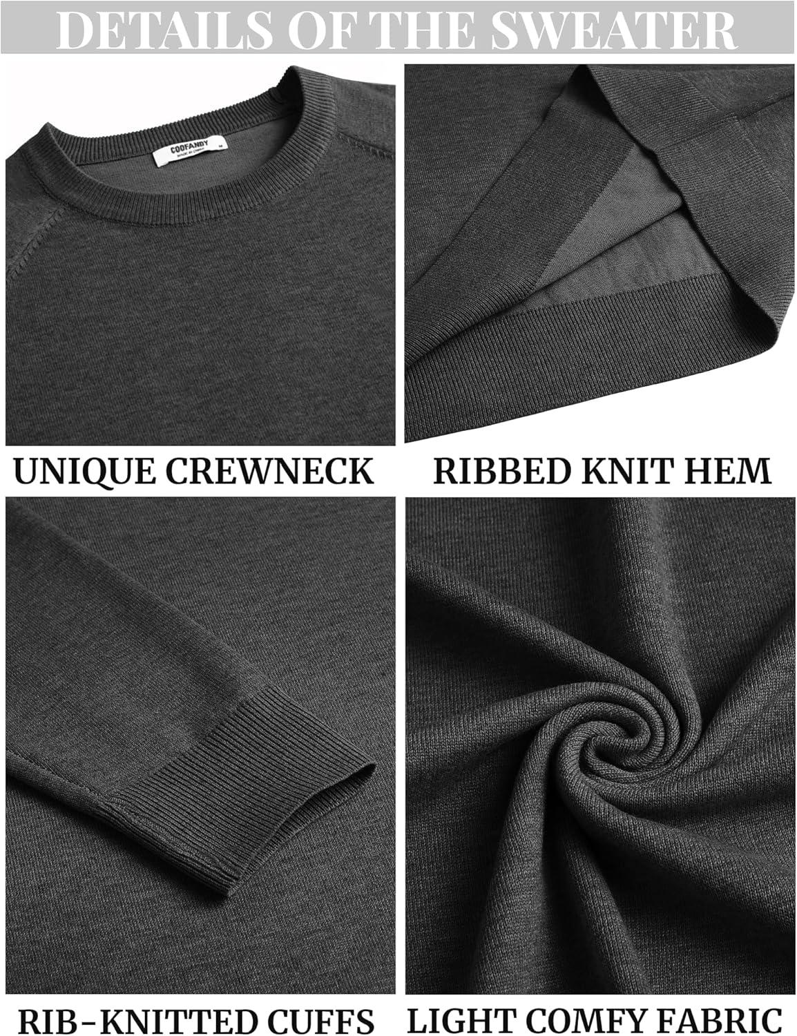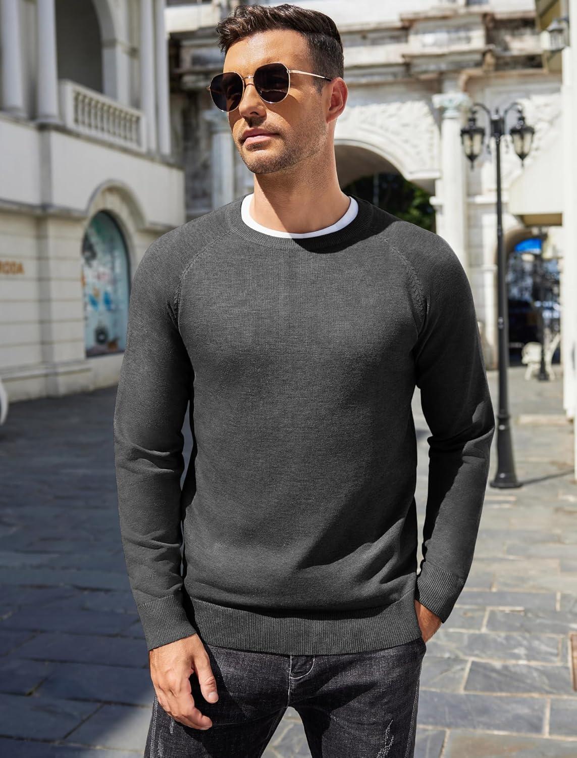 COOFANDY Men's Crewneck Sweater Casual Dress Pullover Sweaters Slim Fit Lightweight Long Sleeve Raglan Sweaters(Dark Grey)
