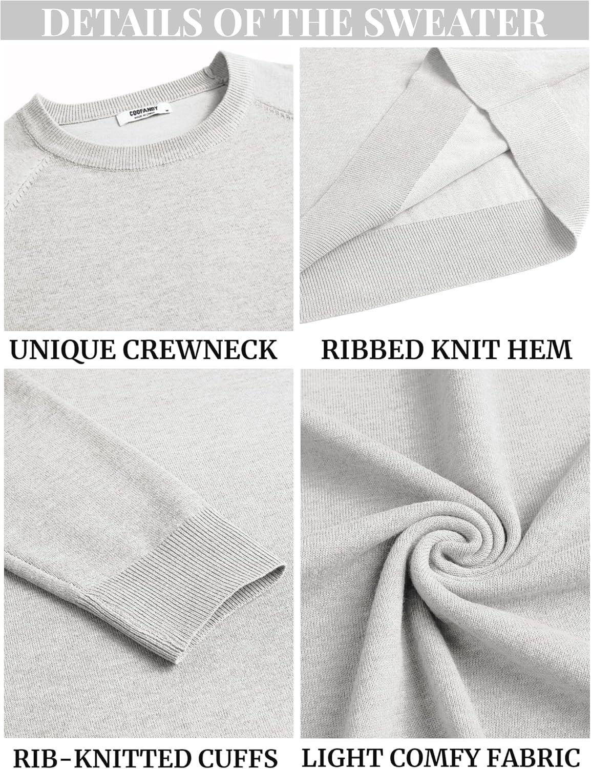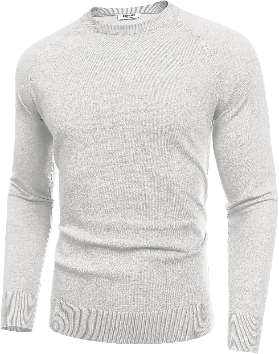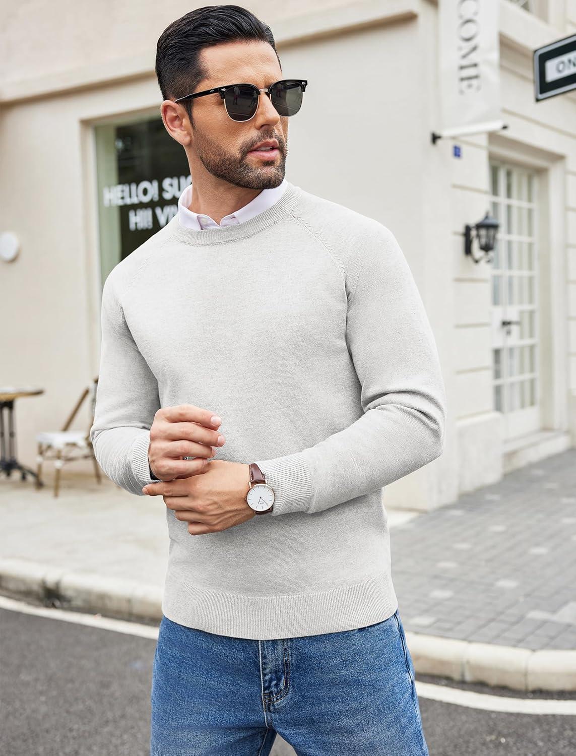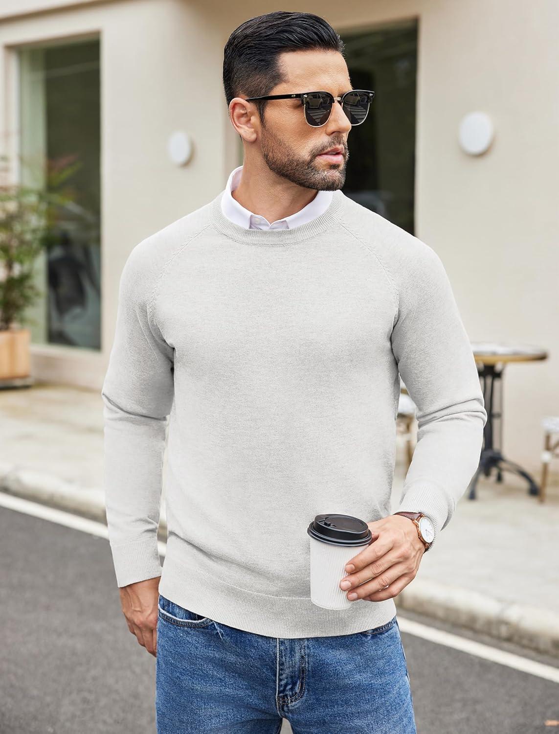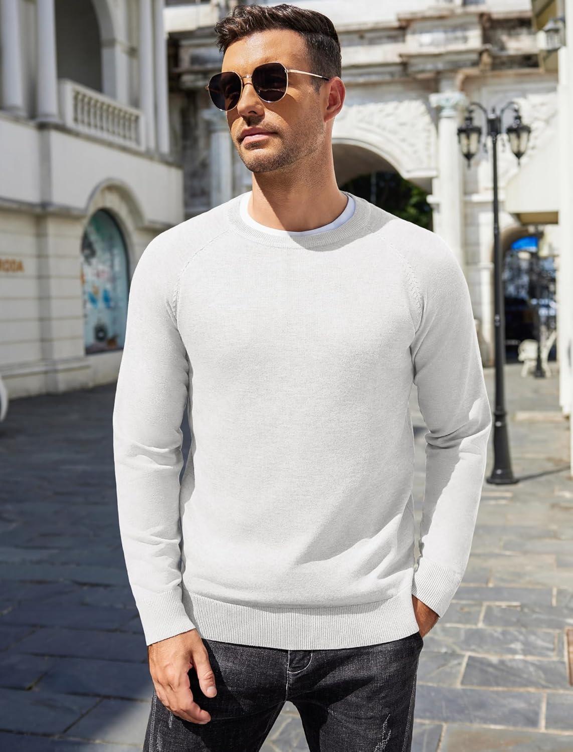COOFANDY Men's Crewneck Sweater Casual Dress Pullover Sweaters Slim Fit Lightweight Long Sleeve Raglan Sweaters(White)