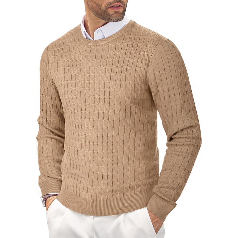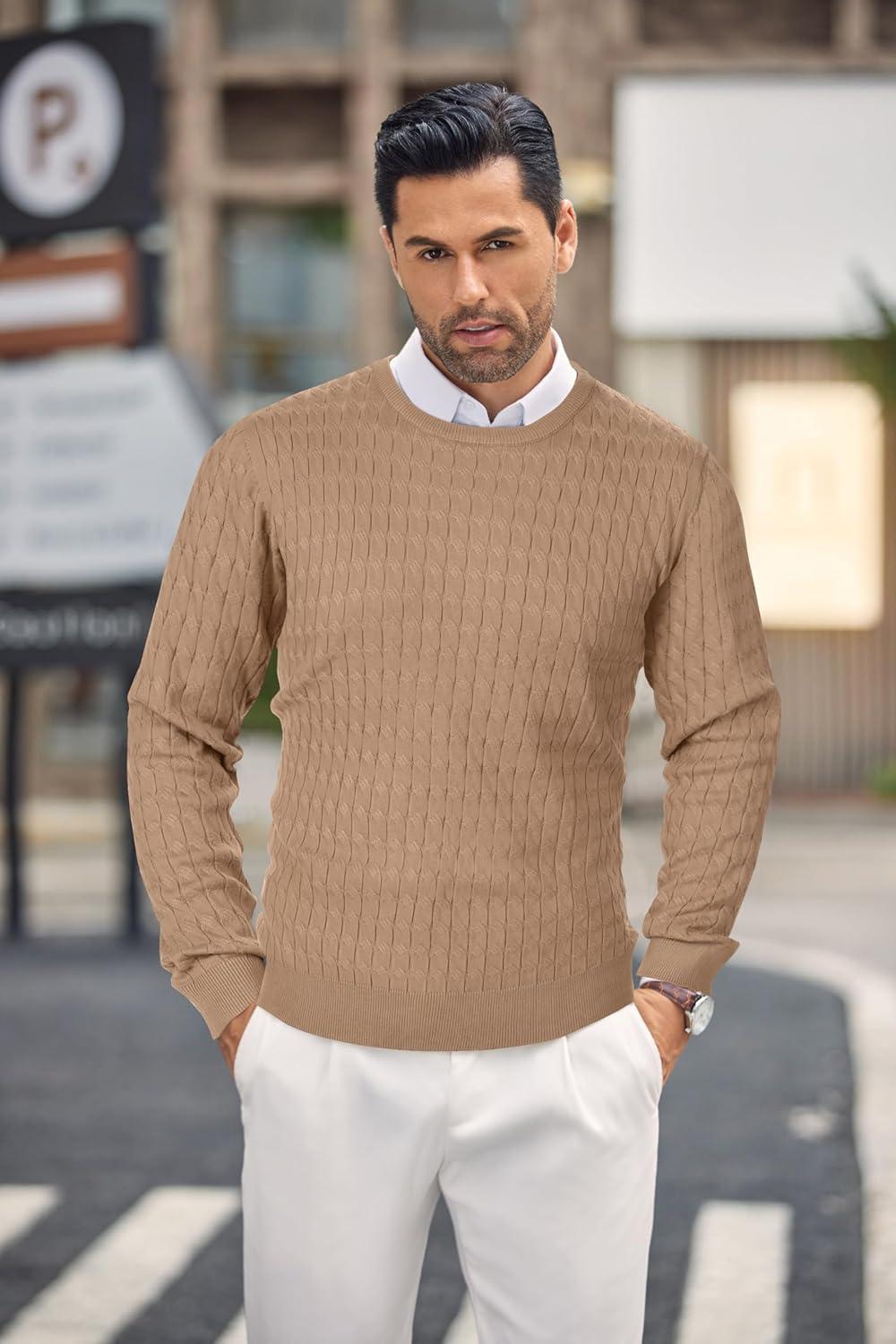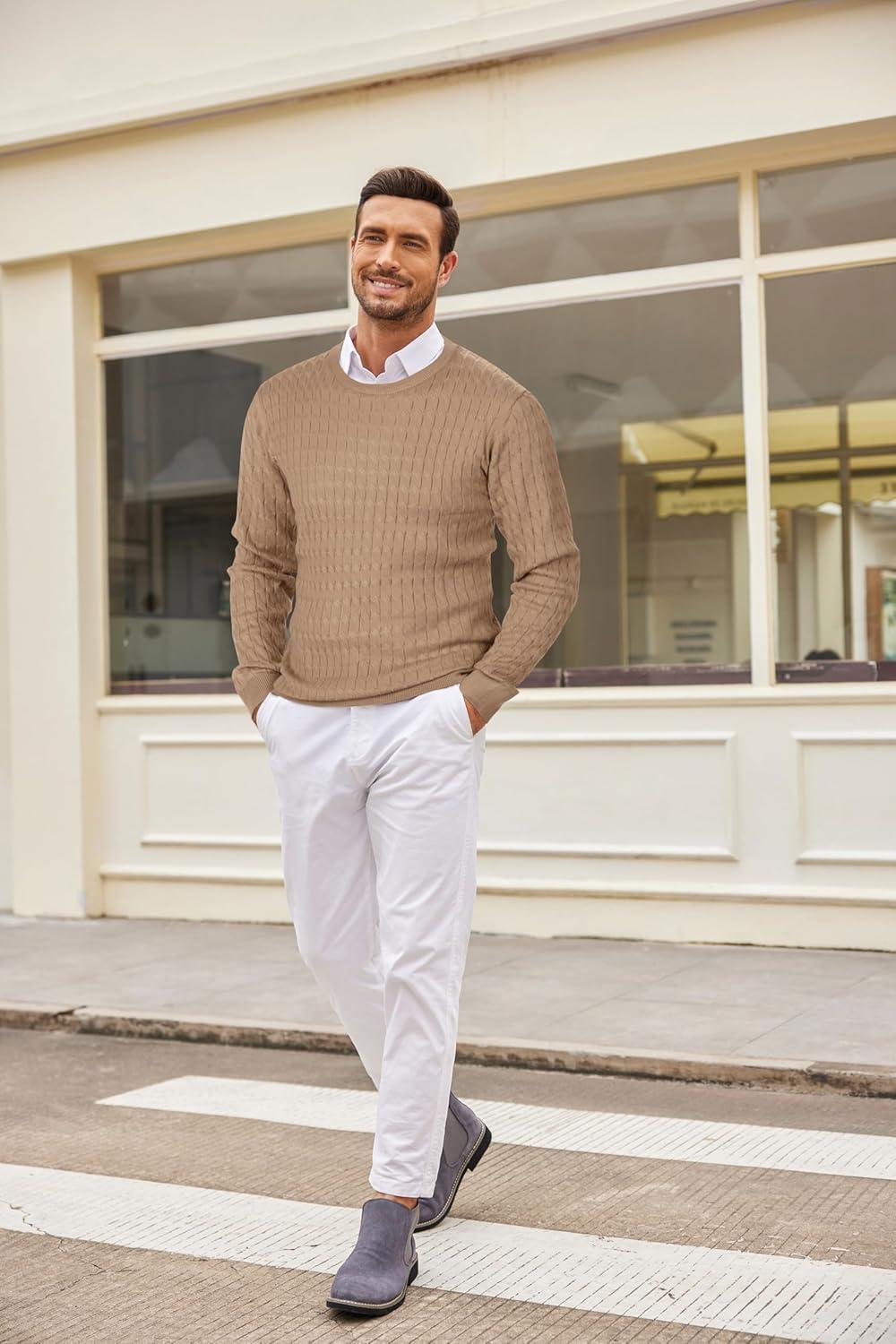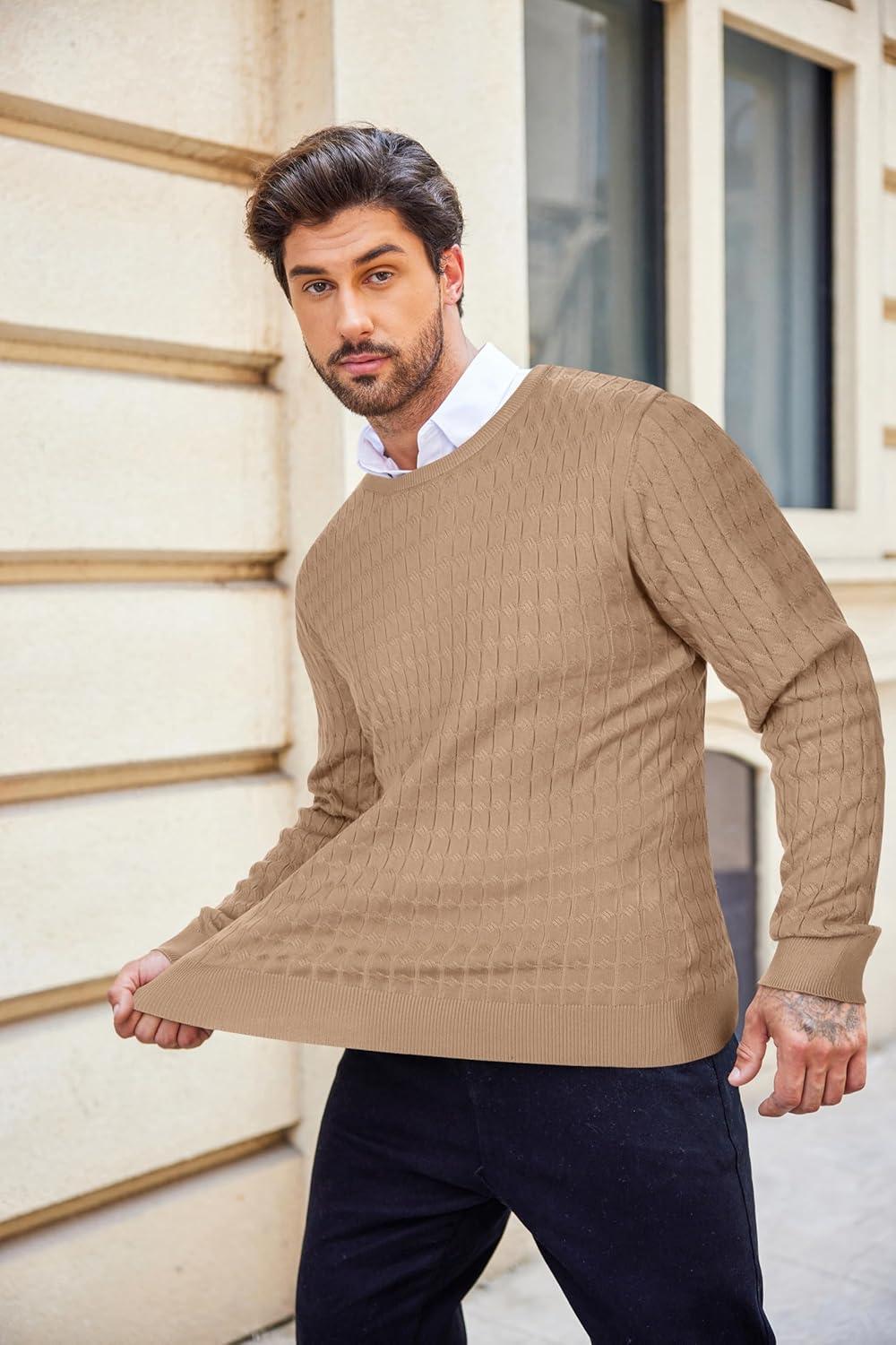 COOFANDY Mens Crewneck Sweater Pullover Knit Sweater Lightweight Sweaters with Ribbing Edge(B-khaki)
