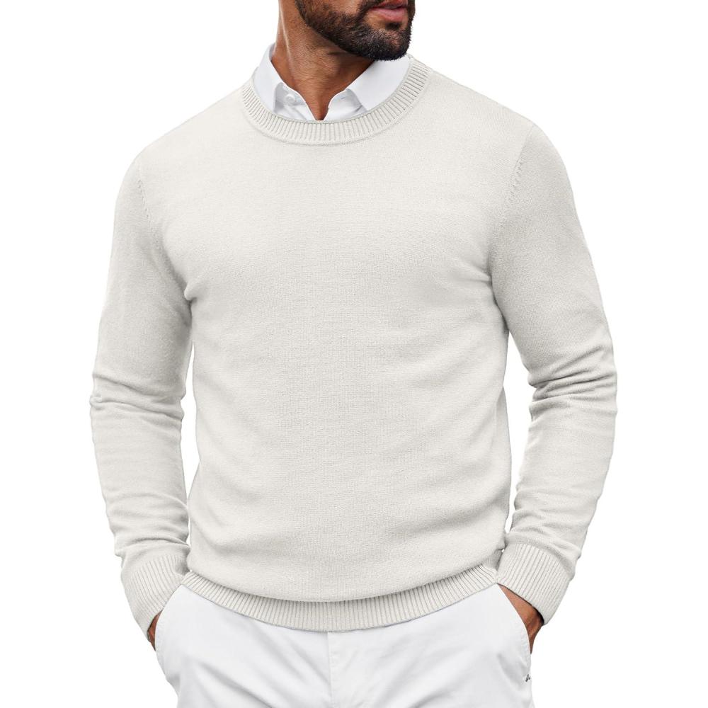 COOFANDY Mens Crewneck Sweater Pullover Knit Sweater Lightweight Sweaters with Ribbing Edge(White)