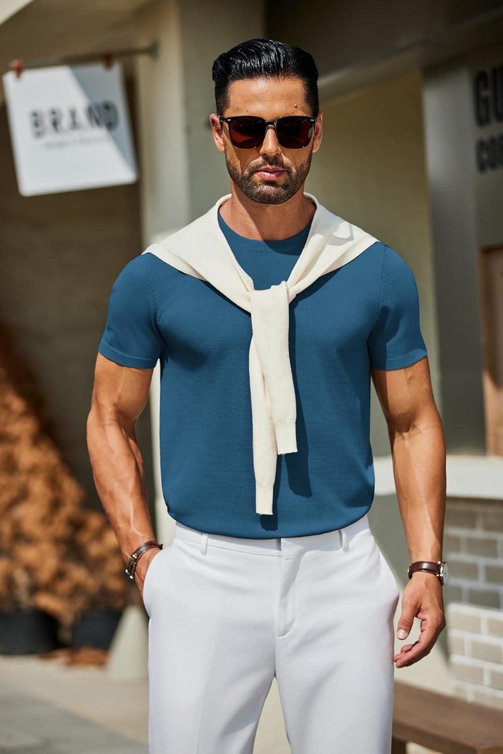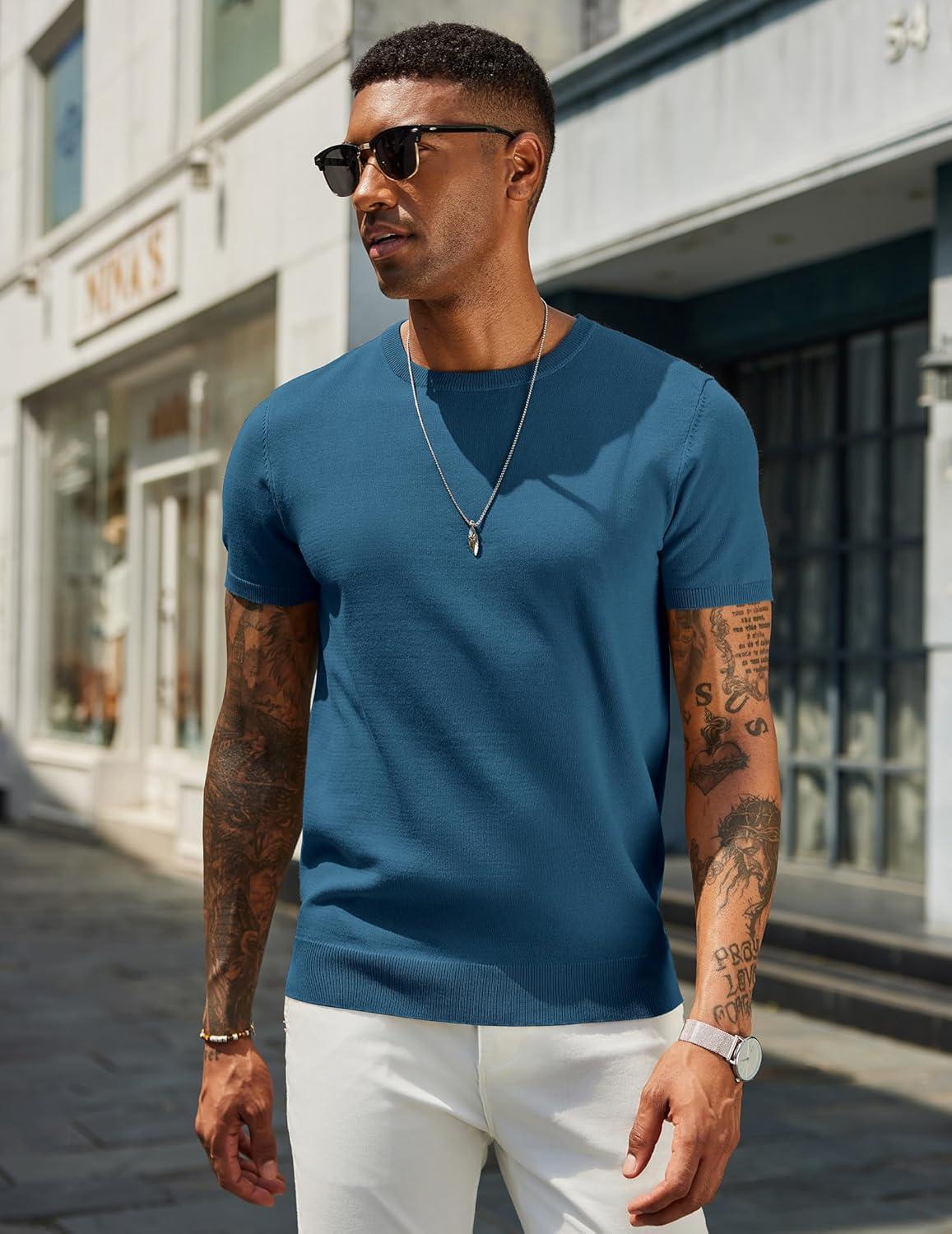 Discover the latest COOFANDY Men’s Crewneck Sweater Short Sleeve Casual Basic Tops Classic Fashion Knit Pullover Tees(Demin Blue) from and take advantage of our limited-time introductory offer.