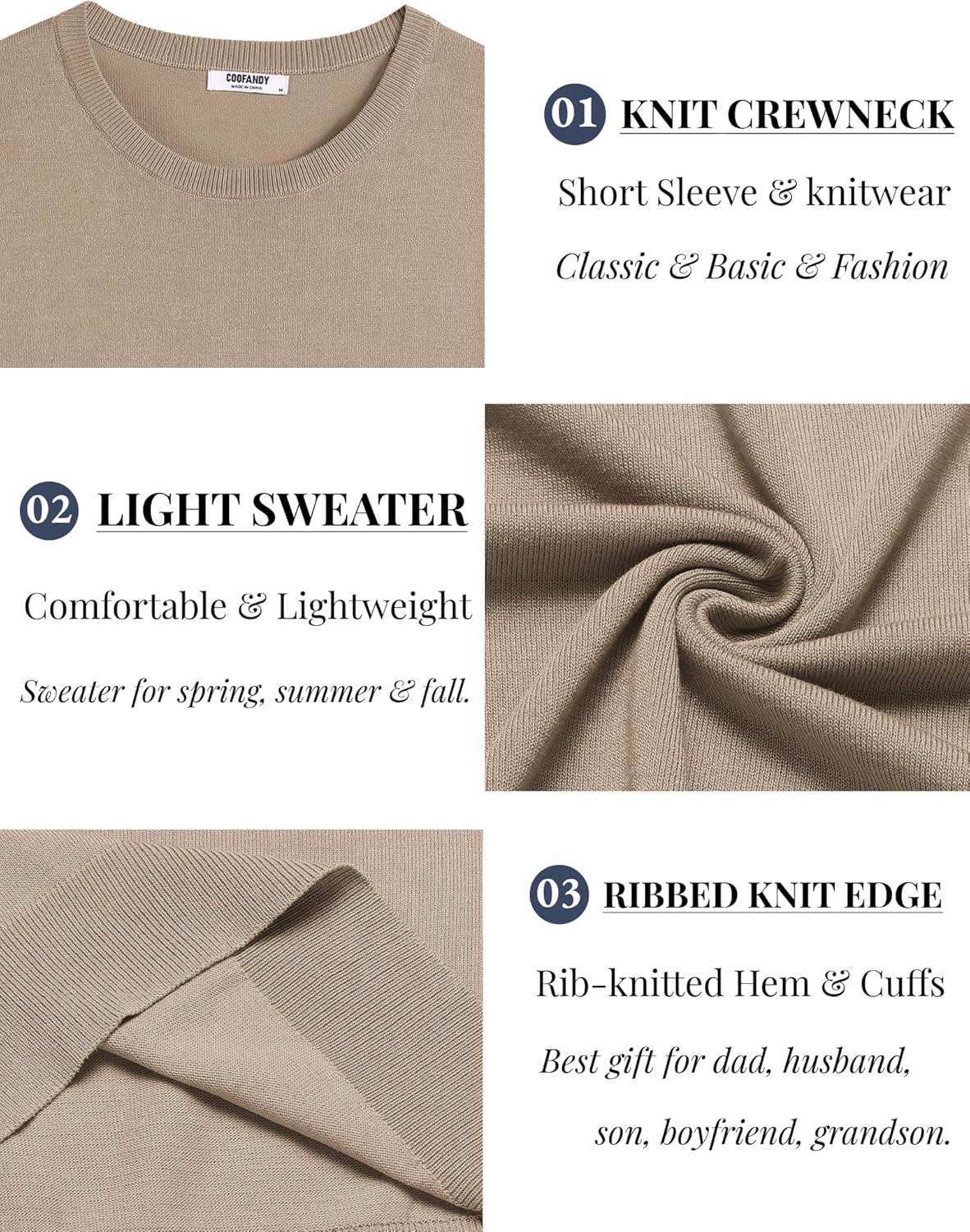COOFANDY Men's Crewneck Sweater Short Sleeve Casual Basic Tops Classic Fashion Knit Pullover Tees(Khaki)