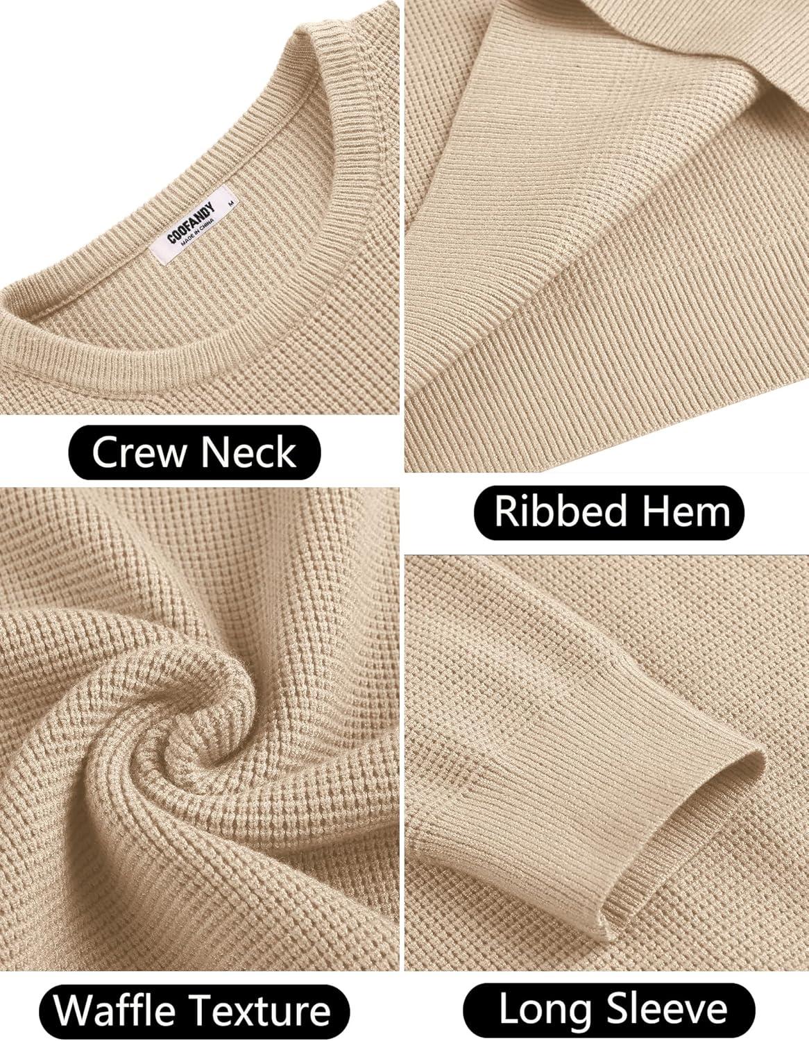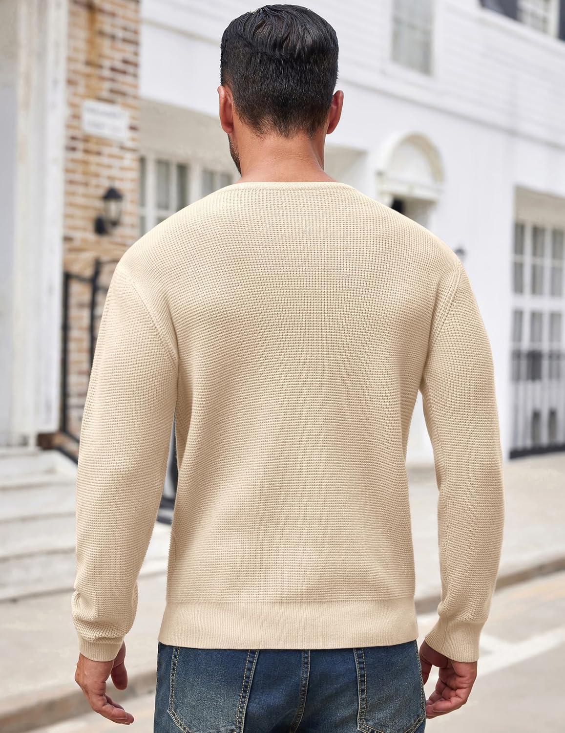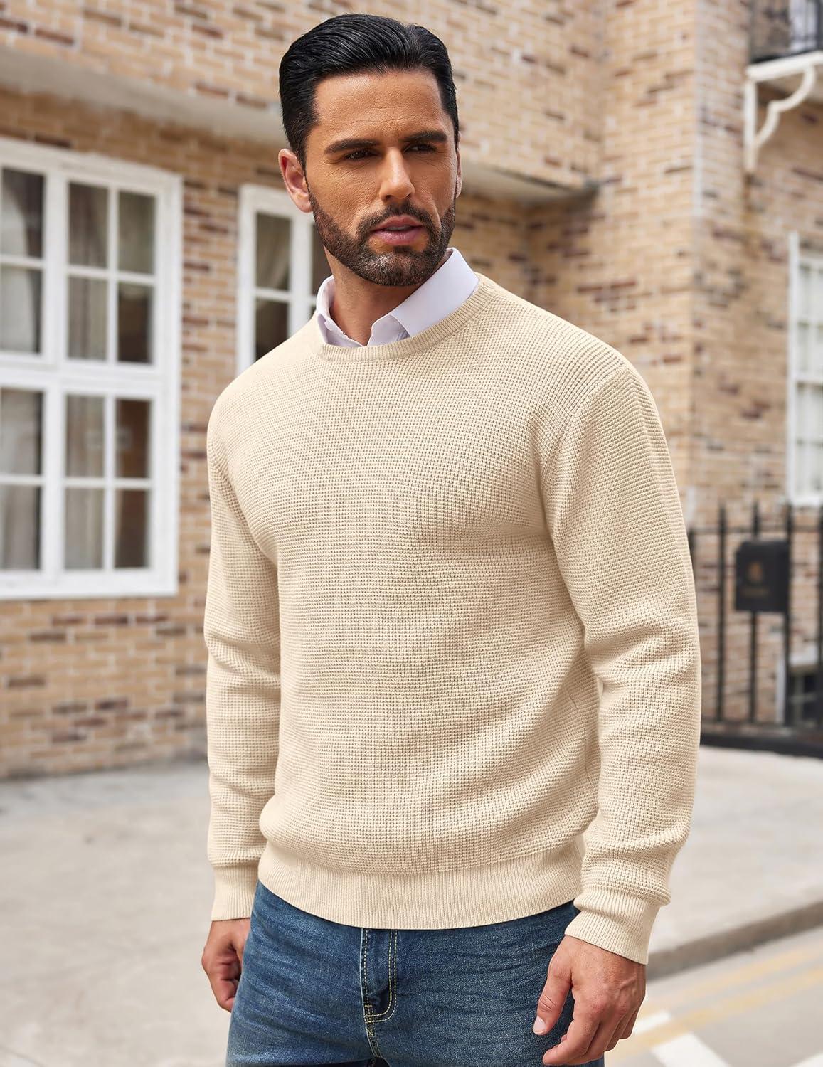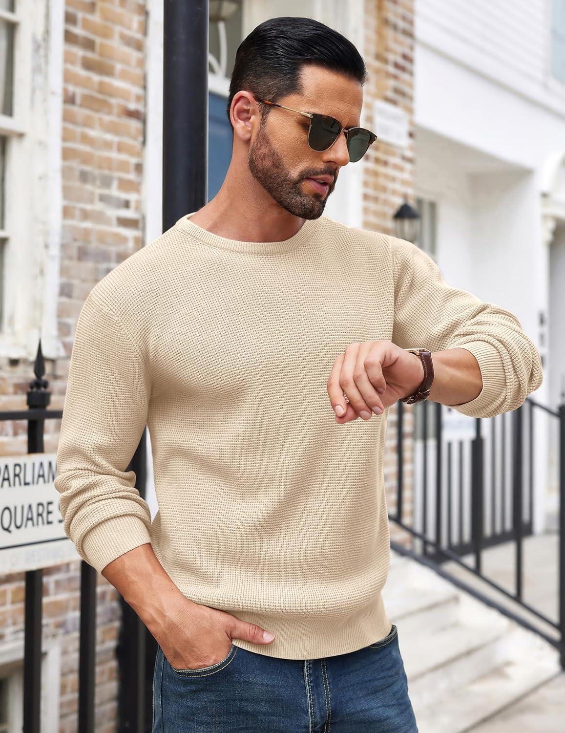 COOFANDY Men's Crewneck Sweater Waffle Textured Pullover Sweaters Soft Midweight Knitted Sweaters(Beige)