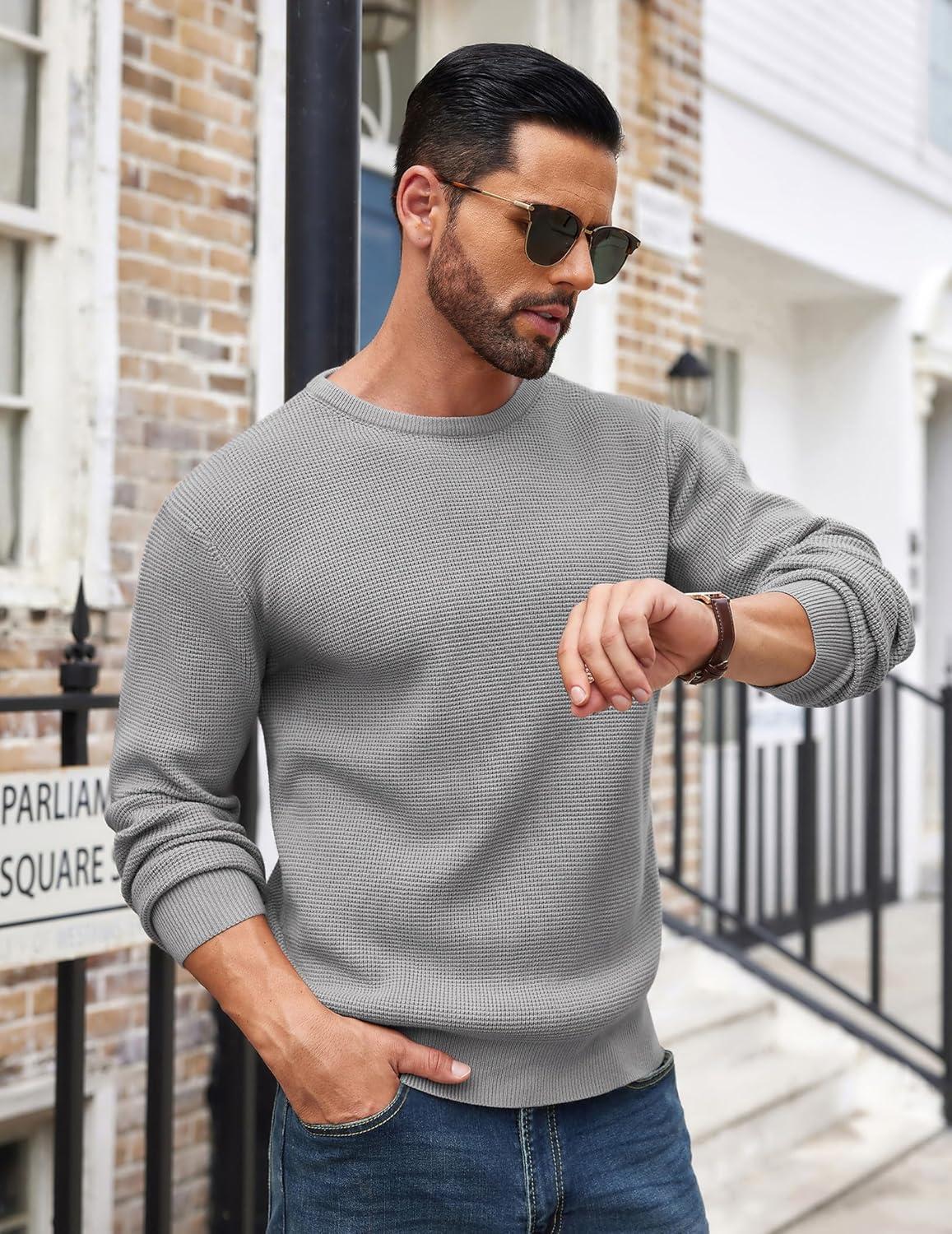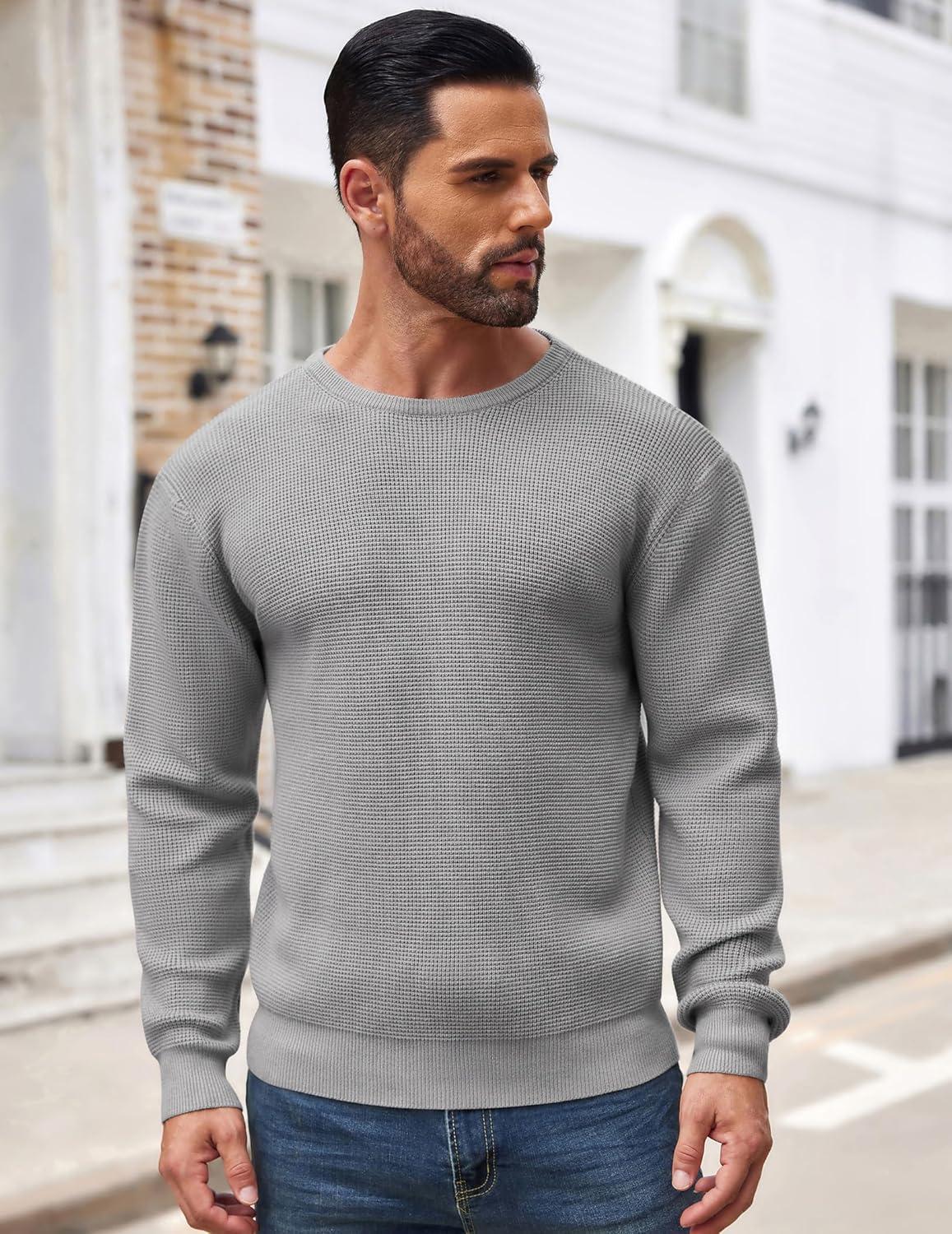 Don’t miss out on our limited-time offer: buy COOFANDY Men’s Crewneck Sweater Waffle Textured Pullover Sweaters Soft Midweight Knitted Sweaters(Light Grey), get {accessory} free!