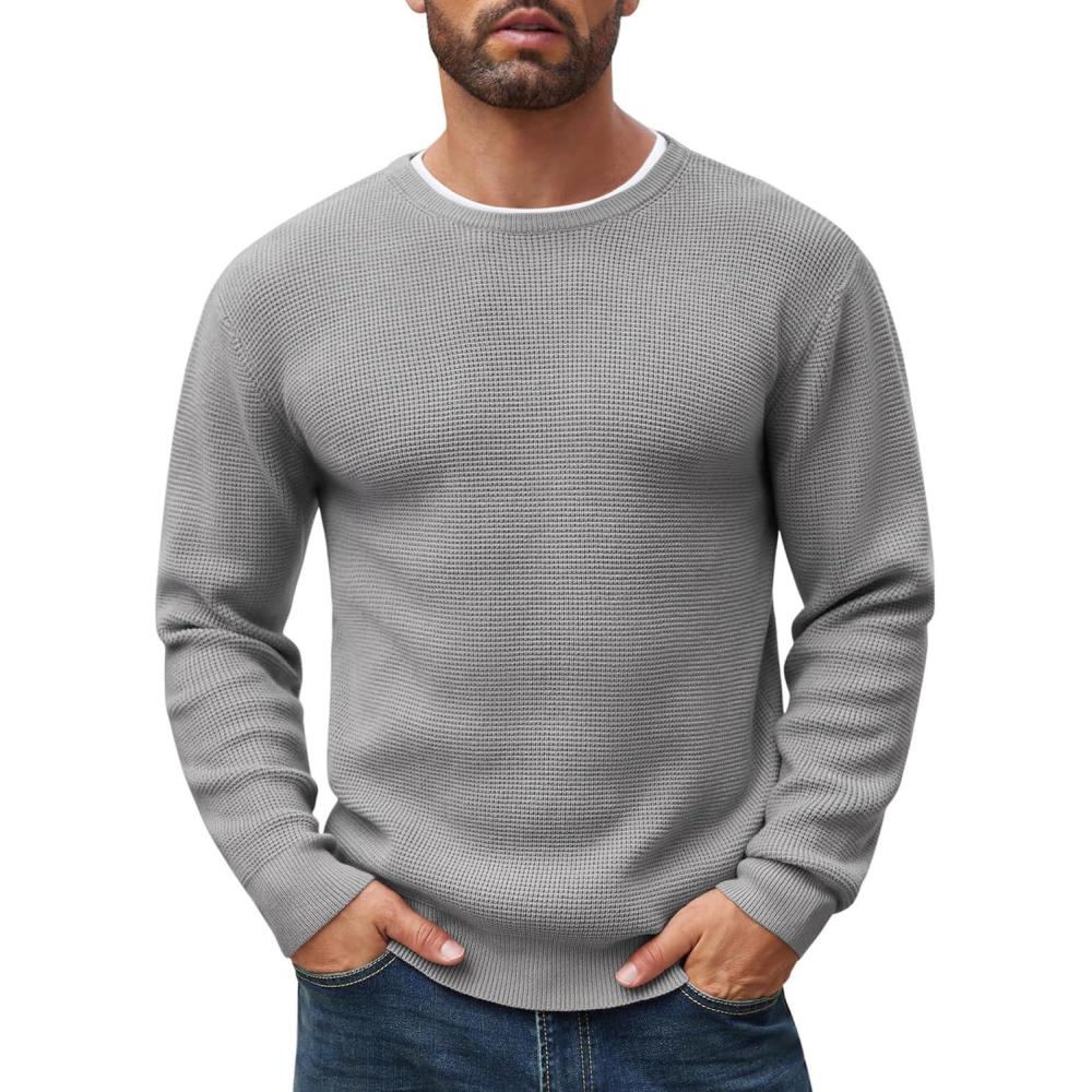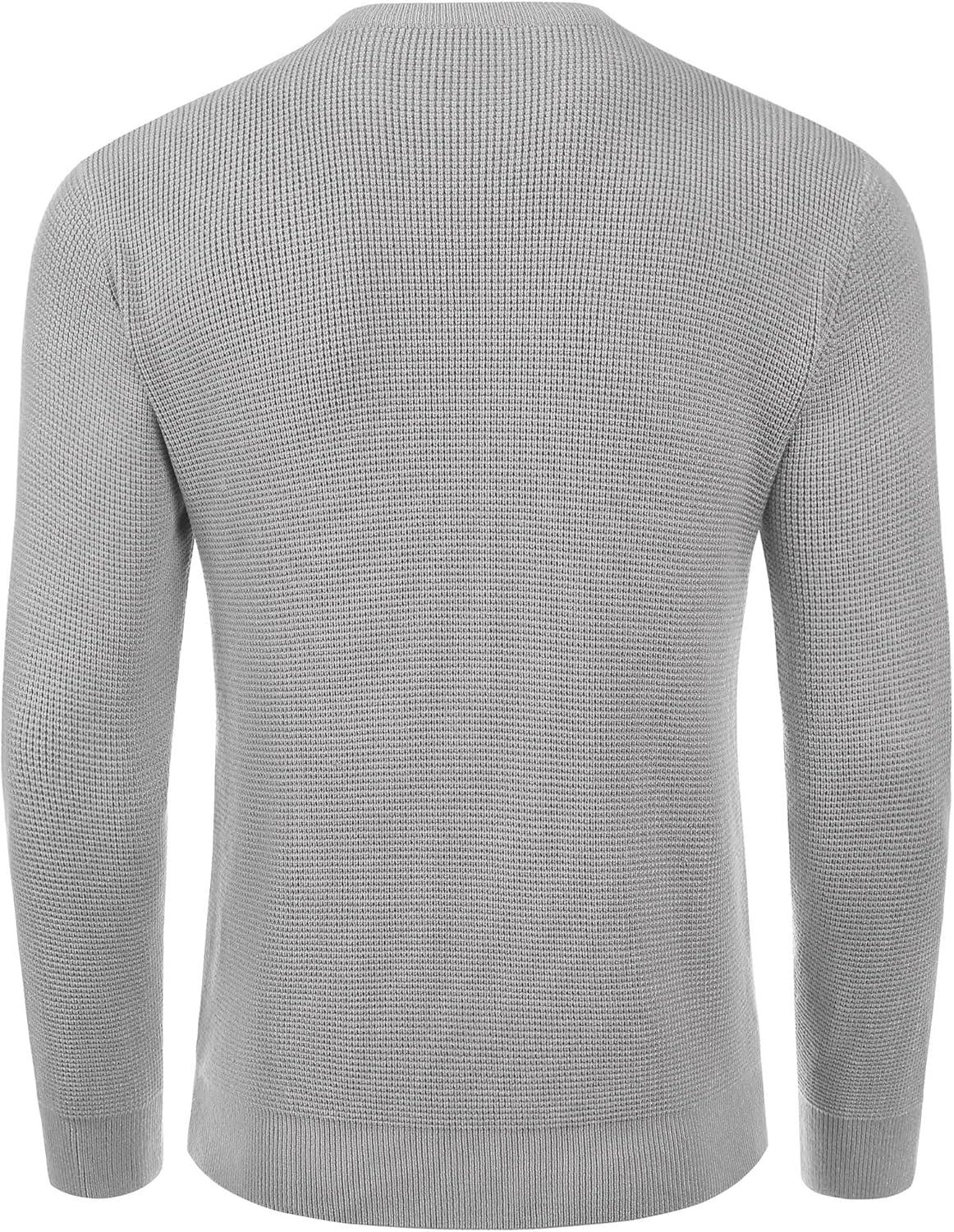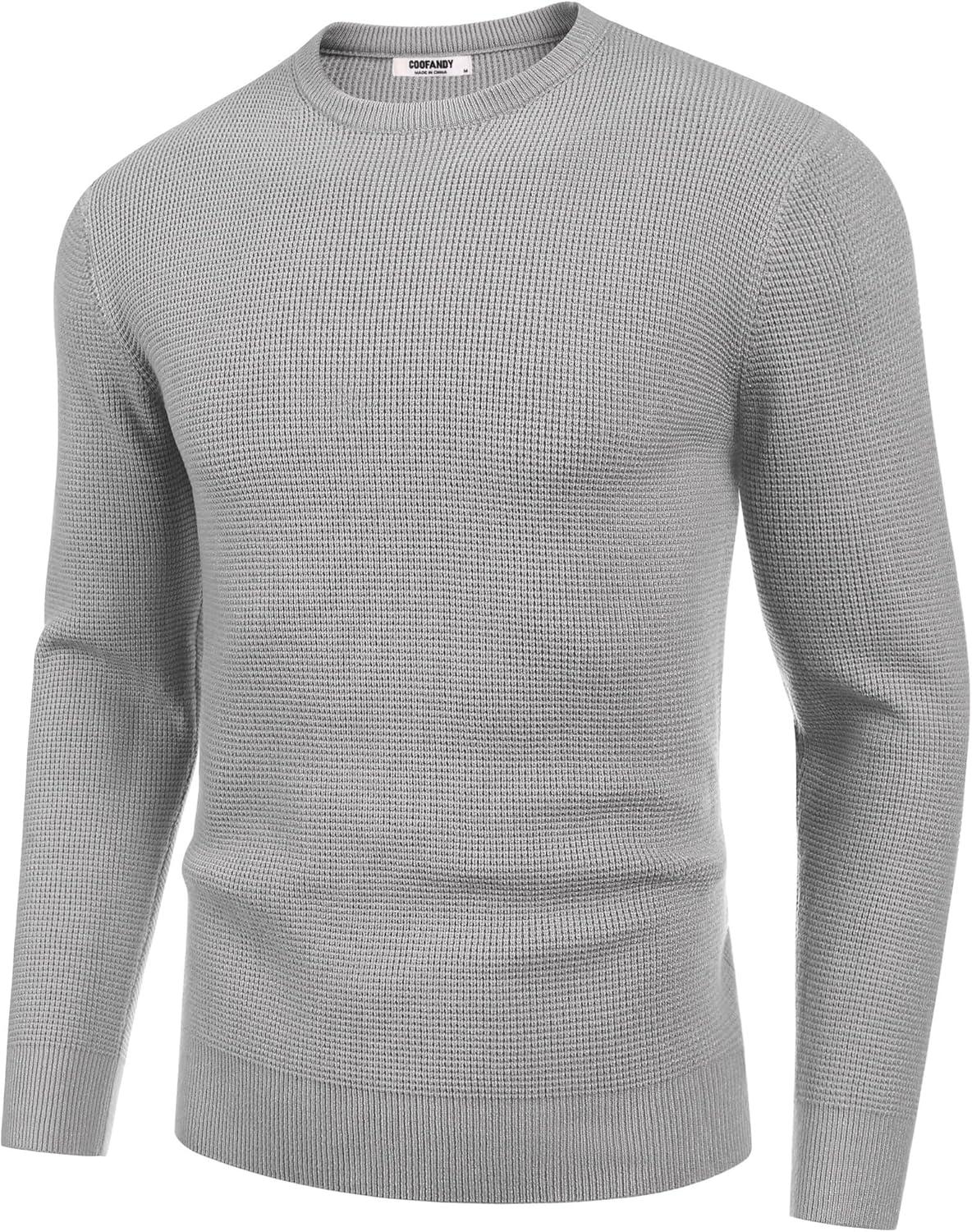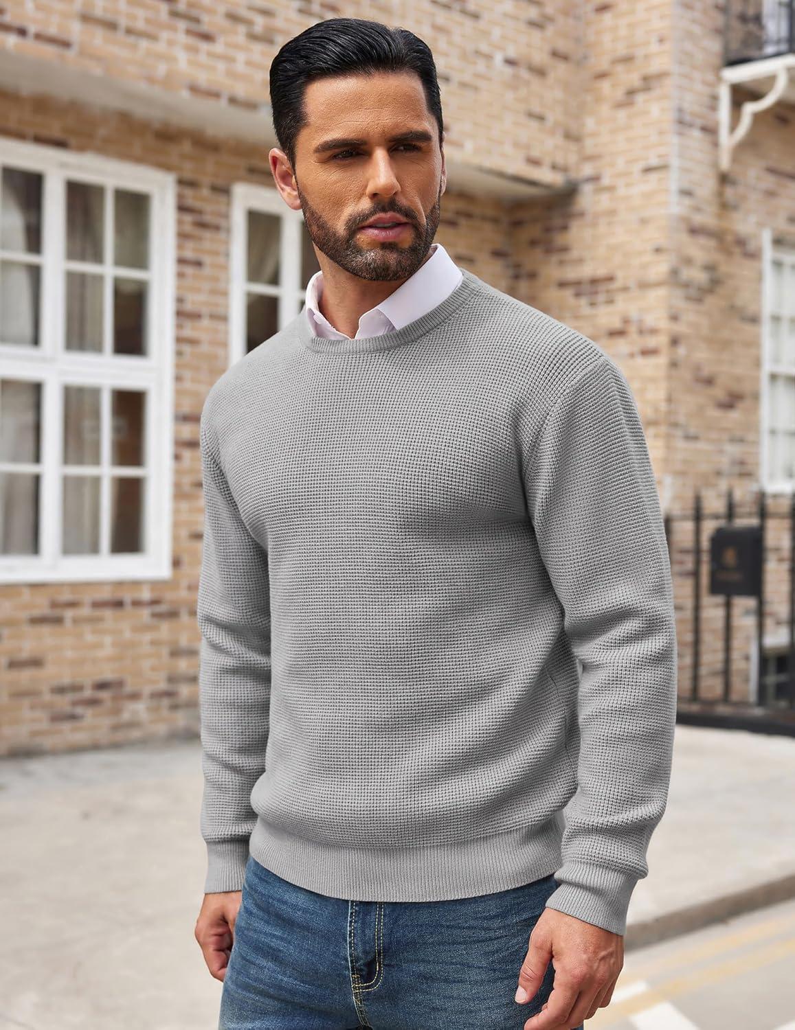 COOFANDY Men's Crewneck Sweater Waffle Textured Pullover Sweaters Soft Midweight Knitted Sweaters(Light Grey)