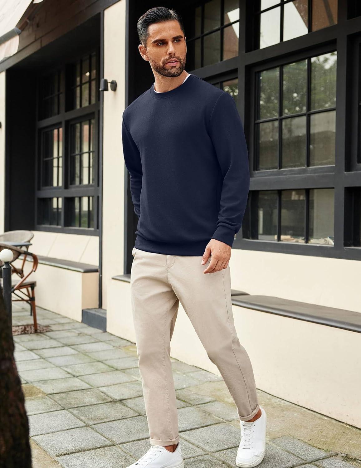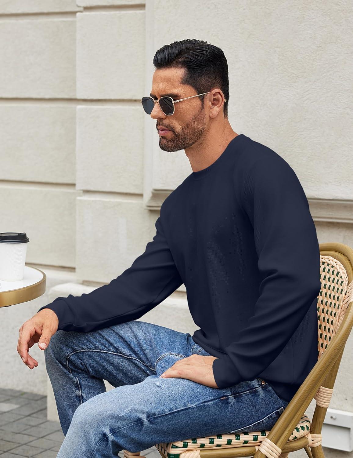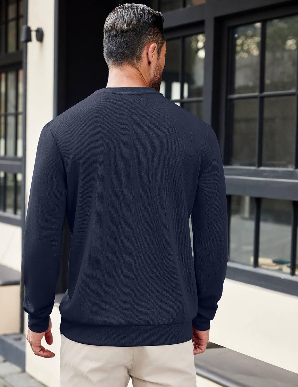 COOFANDY Mens Crewneck Sweatshirts Long Sleeve Basic Pullover Shirts Twill Textured Soild Casual Tops(Dark Navy)