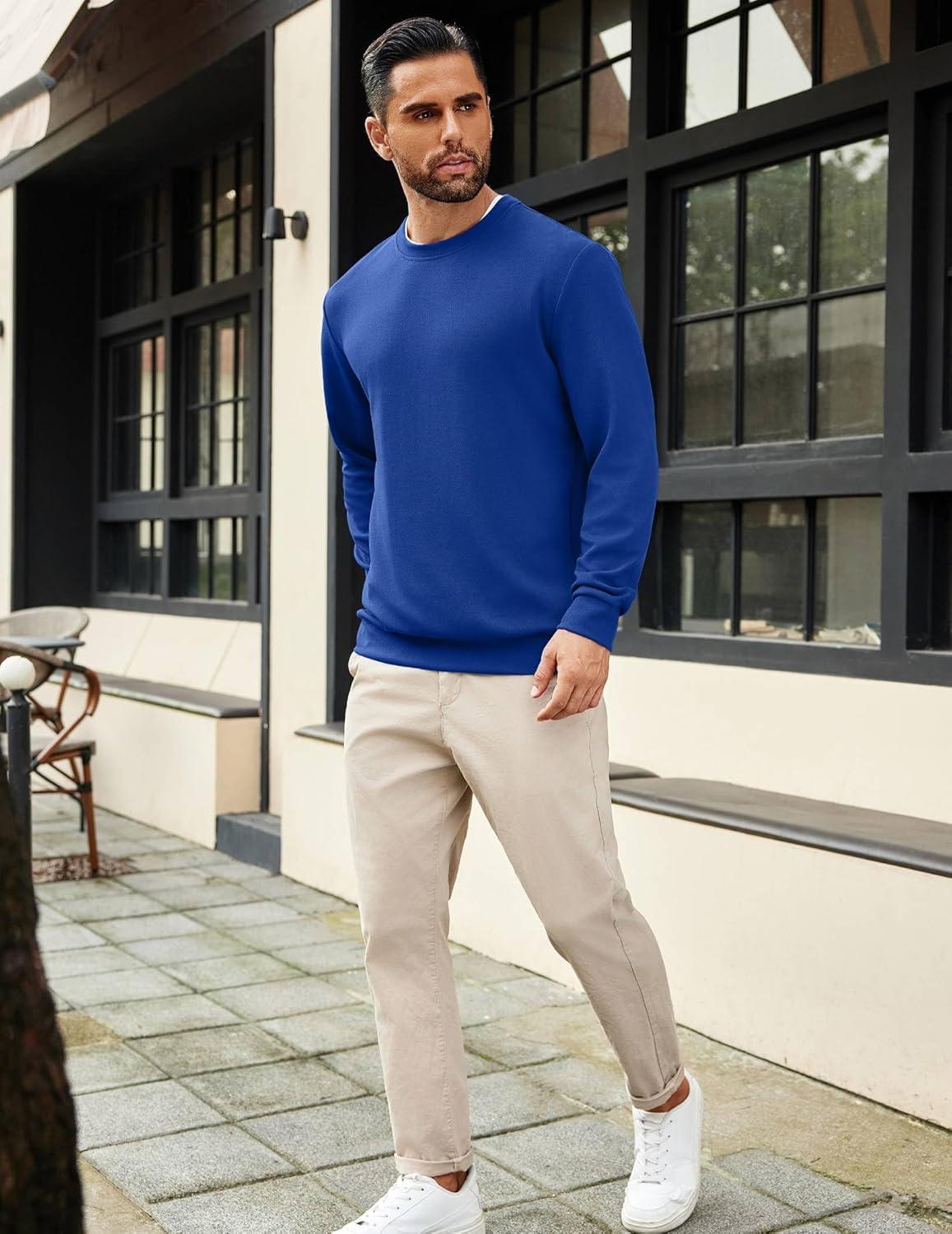 COOFANDY Mens Crewneck Sweatshirts Long Sleeve Basic Pullover Shirts Twill Textured Soild Casual Tops(Royal Blue)