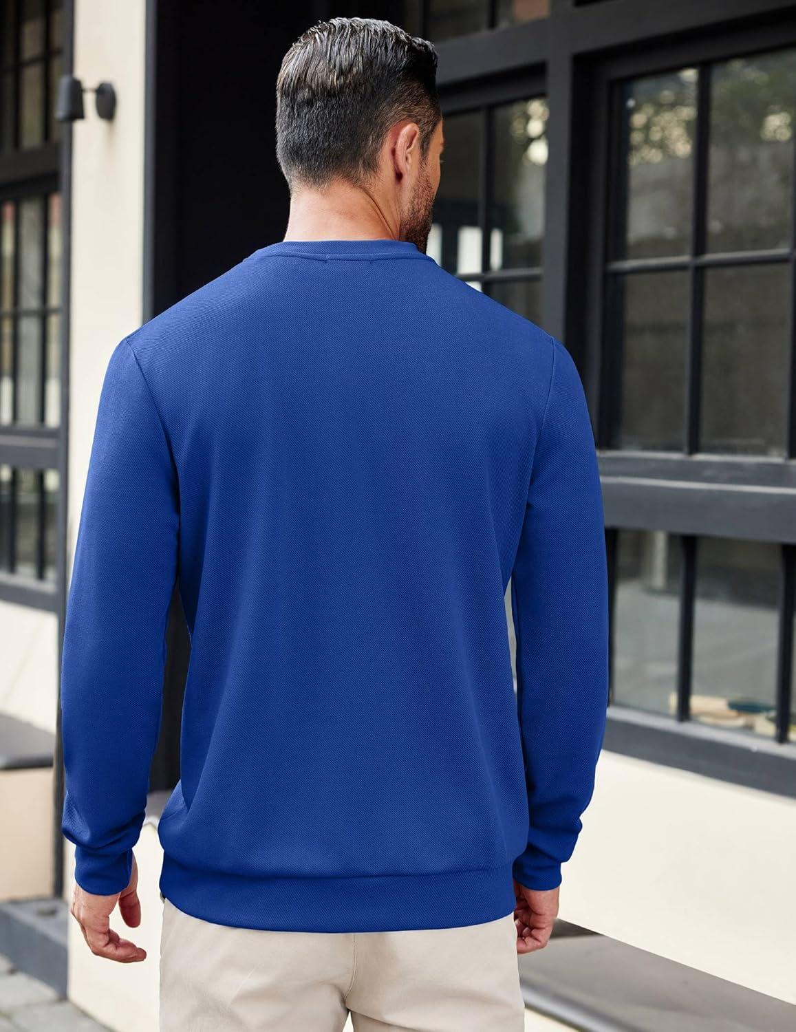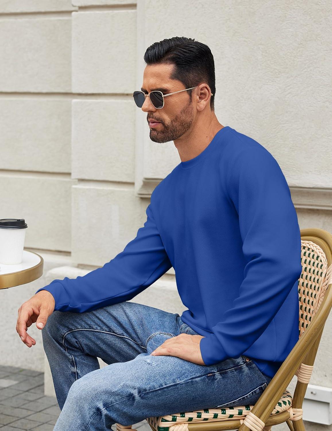 COOFANDY Mens Crewneck Sweatshirts Long Sleeve Basic Pullover Shirts Twill Textured Soild Casual Tops(Blue)