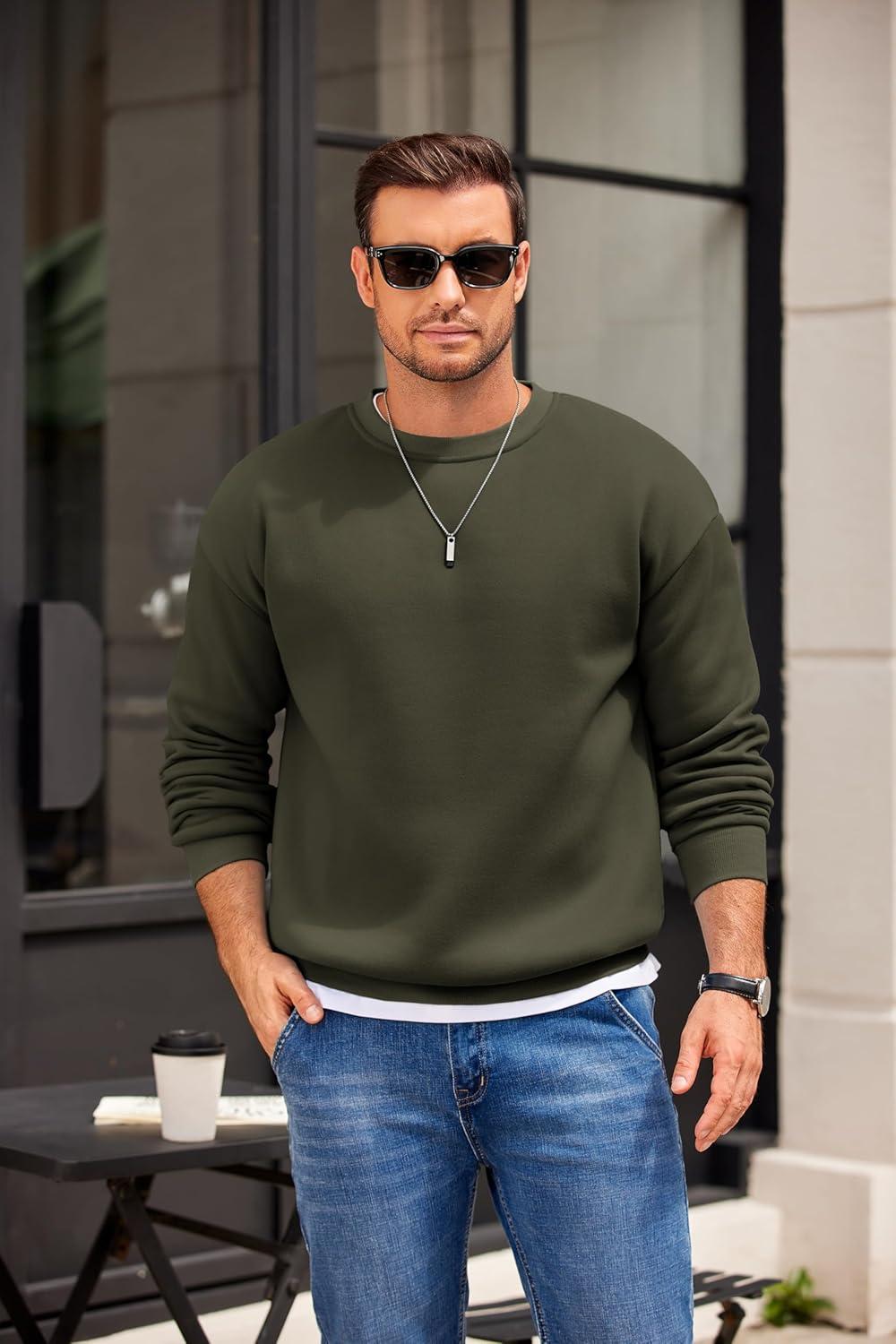 COOFANDY Men's Crewneck Sweatshirts Long Sleeves Fleece Sweatshirts Thermal Casual Pullover Shirt(Dark Army Green)