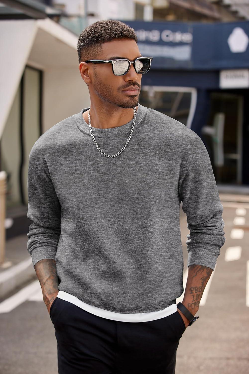 COOFANDY Men's Crewneck Sweatshirts Long Sleeves Fleece Sweatshirts Thermal Casual Pullover Shirt(Dark Gray)