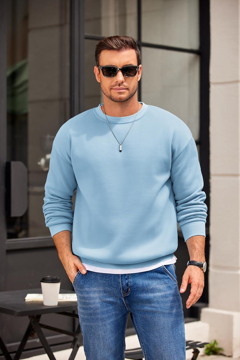 COOFANDY Men's Crewneck Sweatshirts Long Sleeves Fleece Sweatshirts Thermal Casual Pullover Shirt(Light Blue)
