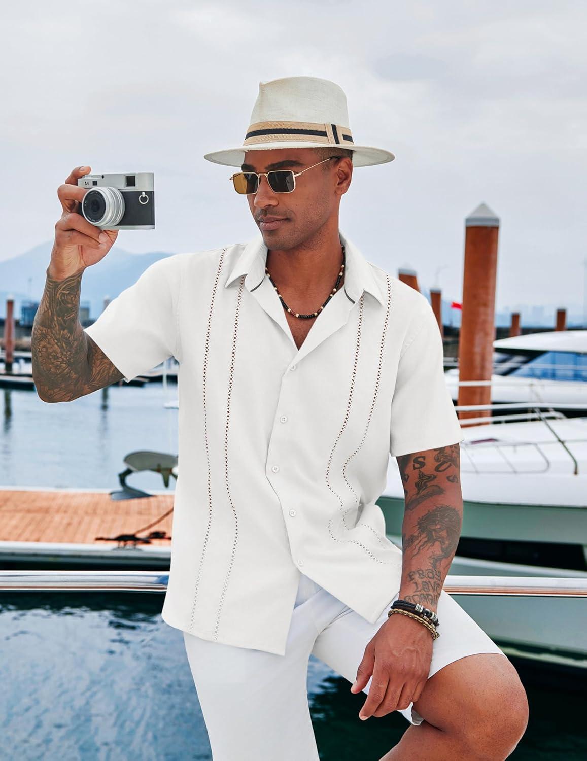 Get your hands on our newest COOFANDY Men’s Cuban Guayabera Shirt Casual Short Sleeve Button Down Shirts Summer Beach Shirts(A-white) and enjoy a limited-time discount offer.