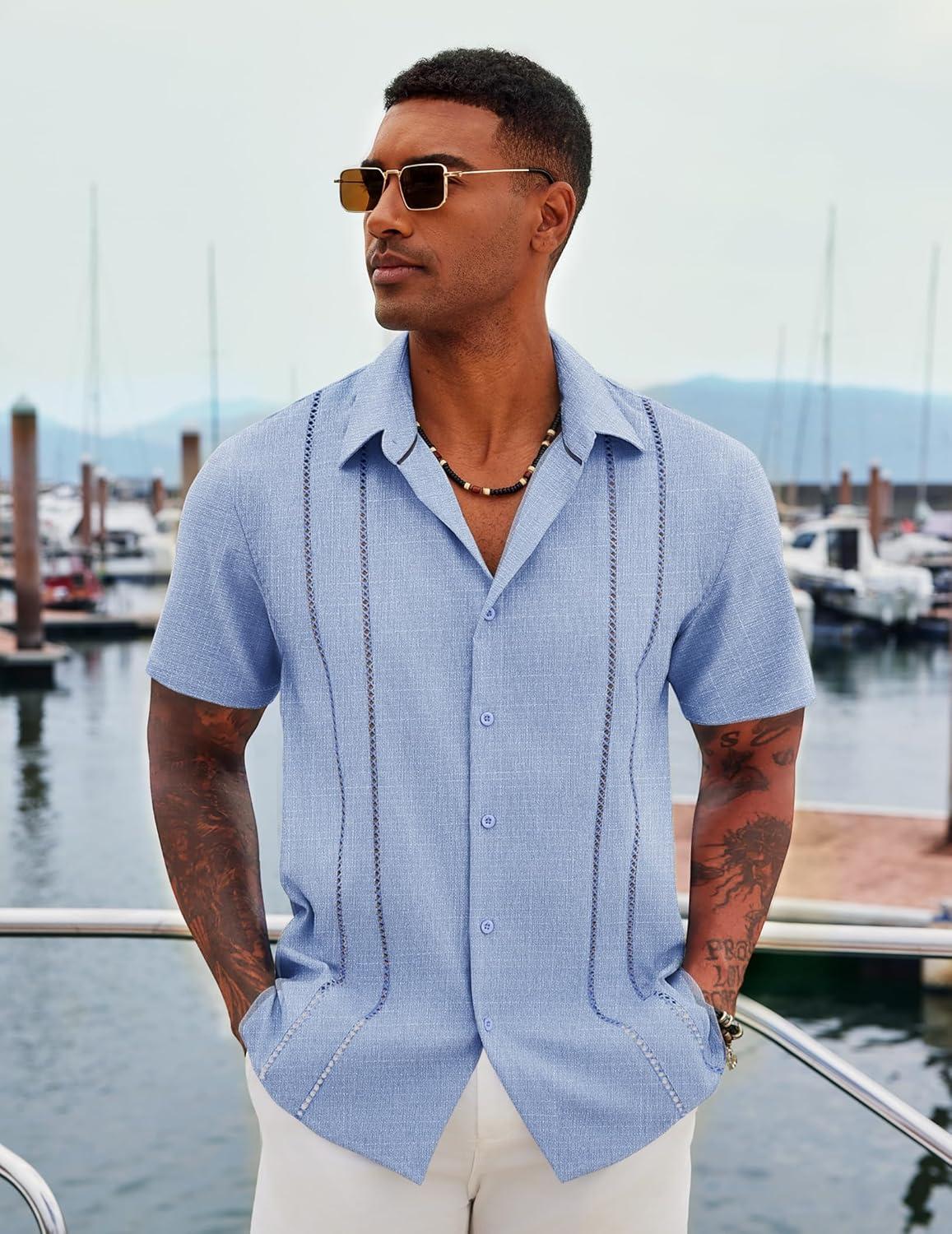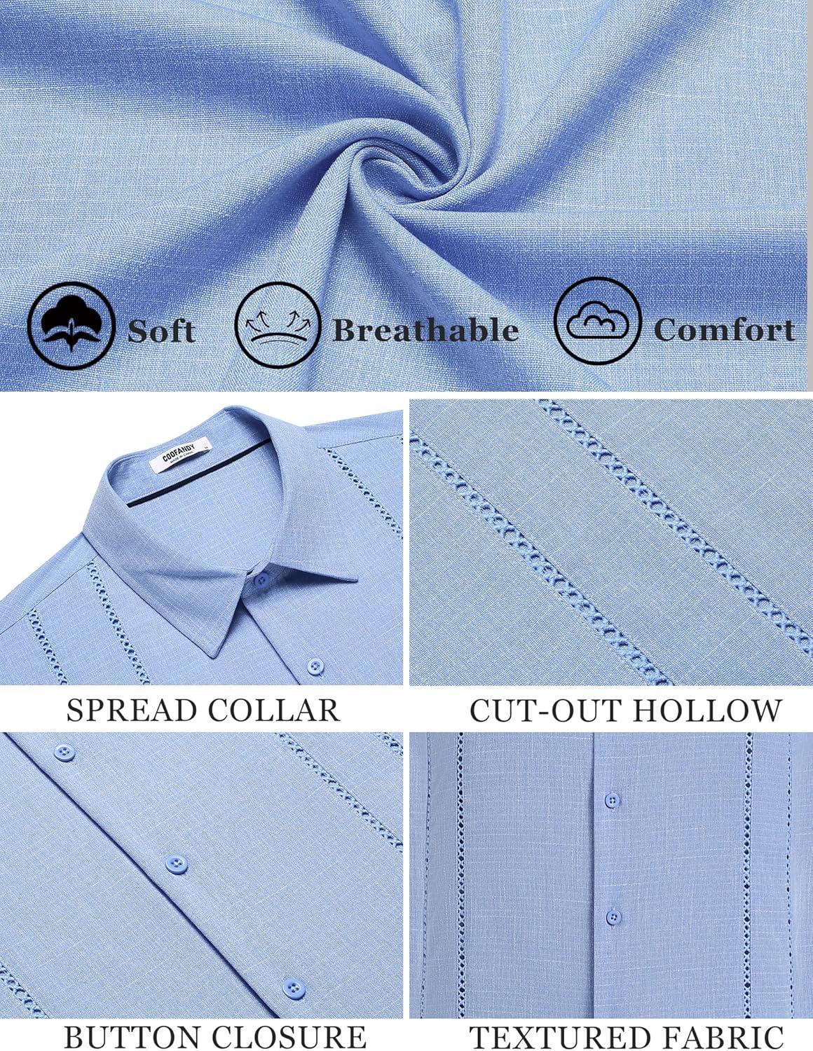 COOFANDY Men's Cuban Guayabera Shirt Casual Short Sleeve Button Down Shirts Summer Beach Shirts(Cornflower Blue)