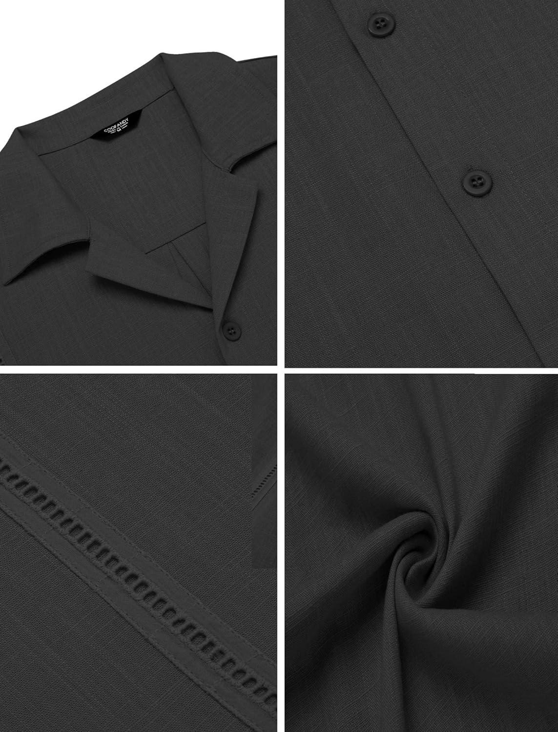imageCOOFANDY Mens Cuban Guayabera Shirt Short Sleeve Button Down Shirts Casual Summer Beach Linen ShirtsA  Black