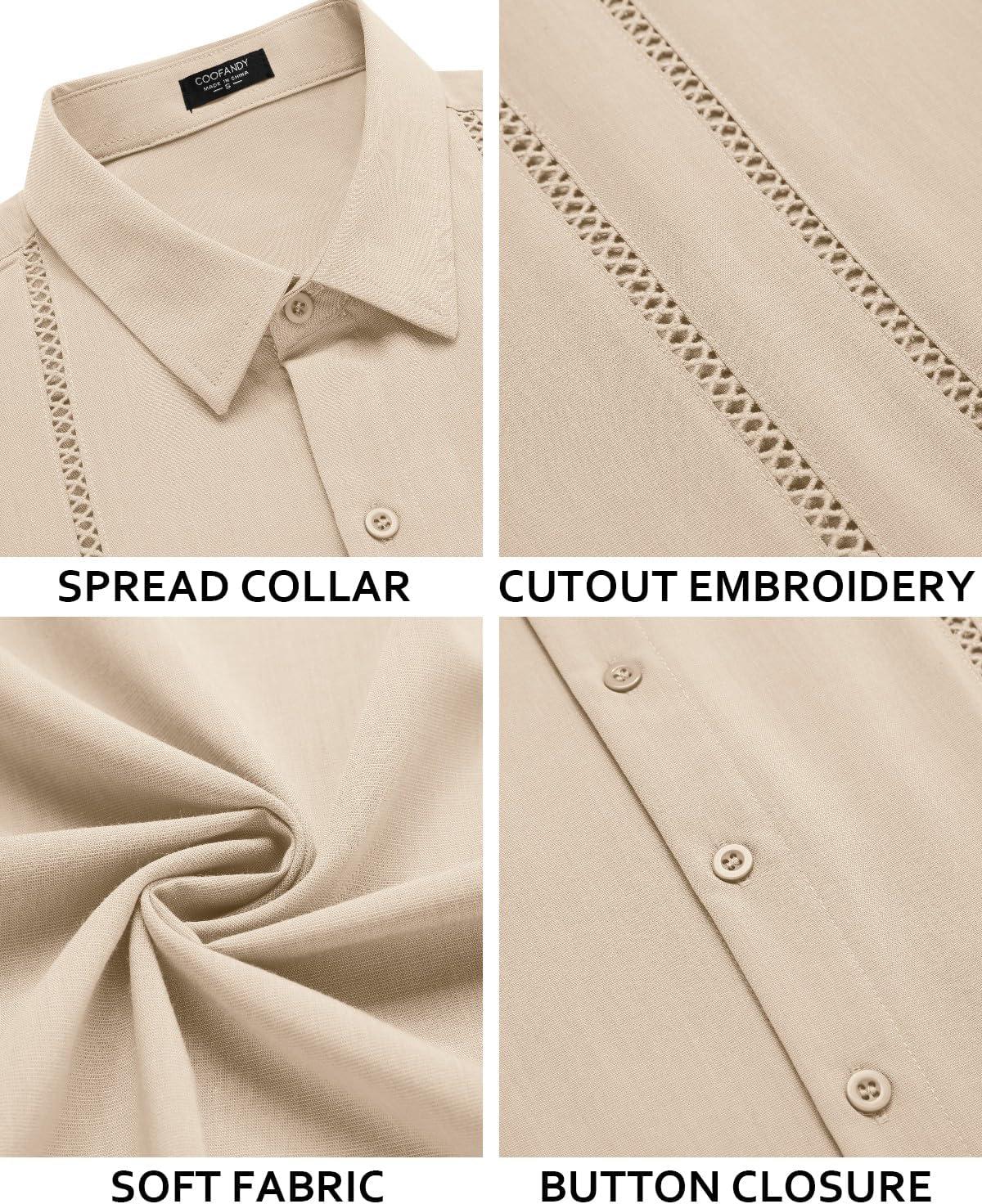 COOFANDY Men's Cuban Guayabera Shirt Short Sleeve Button Down Shirts Casual Summer Beach Linen Shirts(Beige)