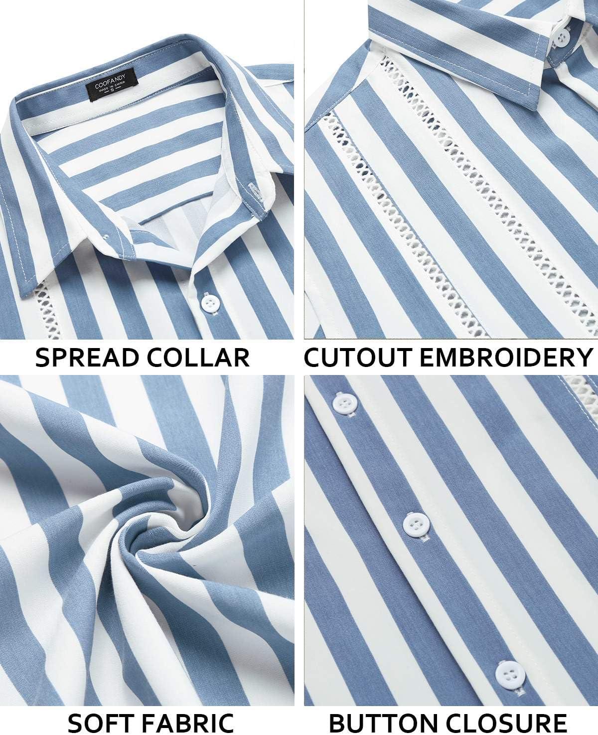COOFANDY Men's Cuban Guayabera Shirt Short Sleeve Button Down Shirts Casual Summer Beach Linen Shirts(Blue Stripe)