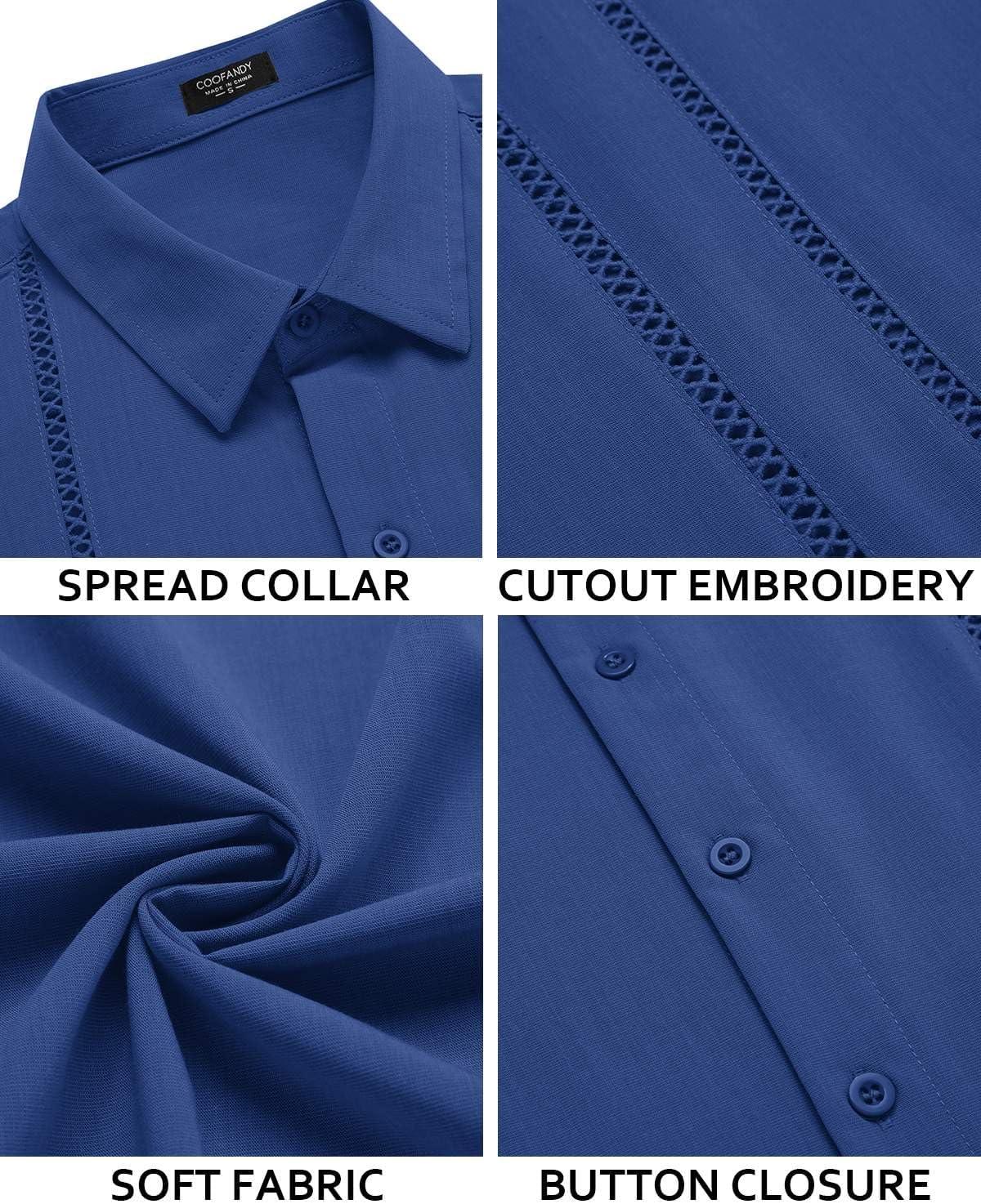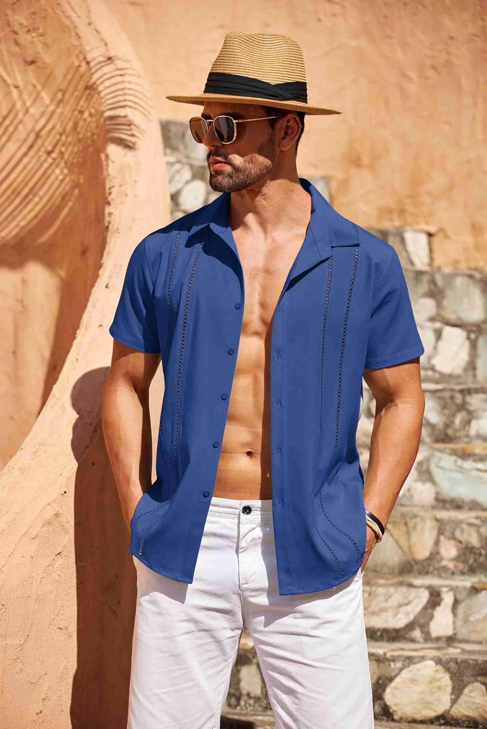 COOFANDY Men's Cuban Guayabera Shirt Short Sleeve Button Down Shirts Casual Summer Beach Linen Shirts(Brilliant Blue)