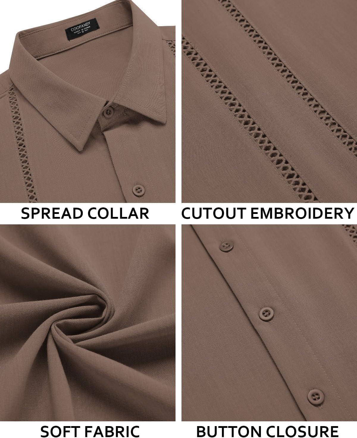 COOFANDY Men's Cuban Guayabera Shirt Short Sleeve Button Down Shirts Casual Summer Beach Linen Shirts(Brown)