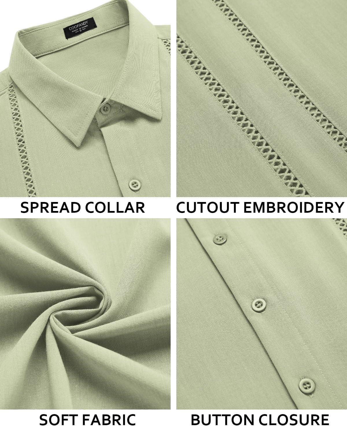 Get the COOFANDY Men’s Cuban Guayabera Shirt Short Sleeve Button Down Shirts Casual Summer Beach Linen Shirts(Light Green) you want at a discounted price during our markdown sale event.