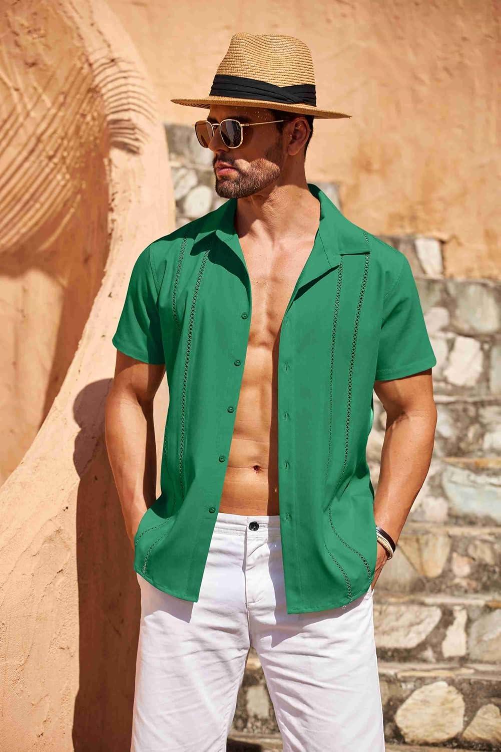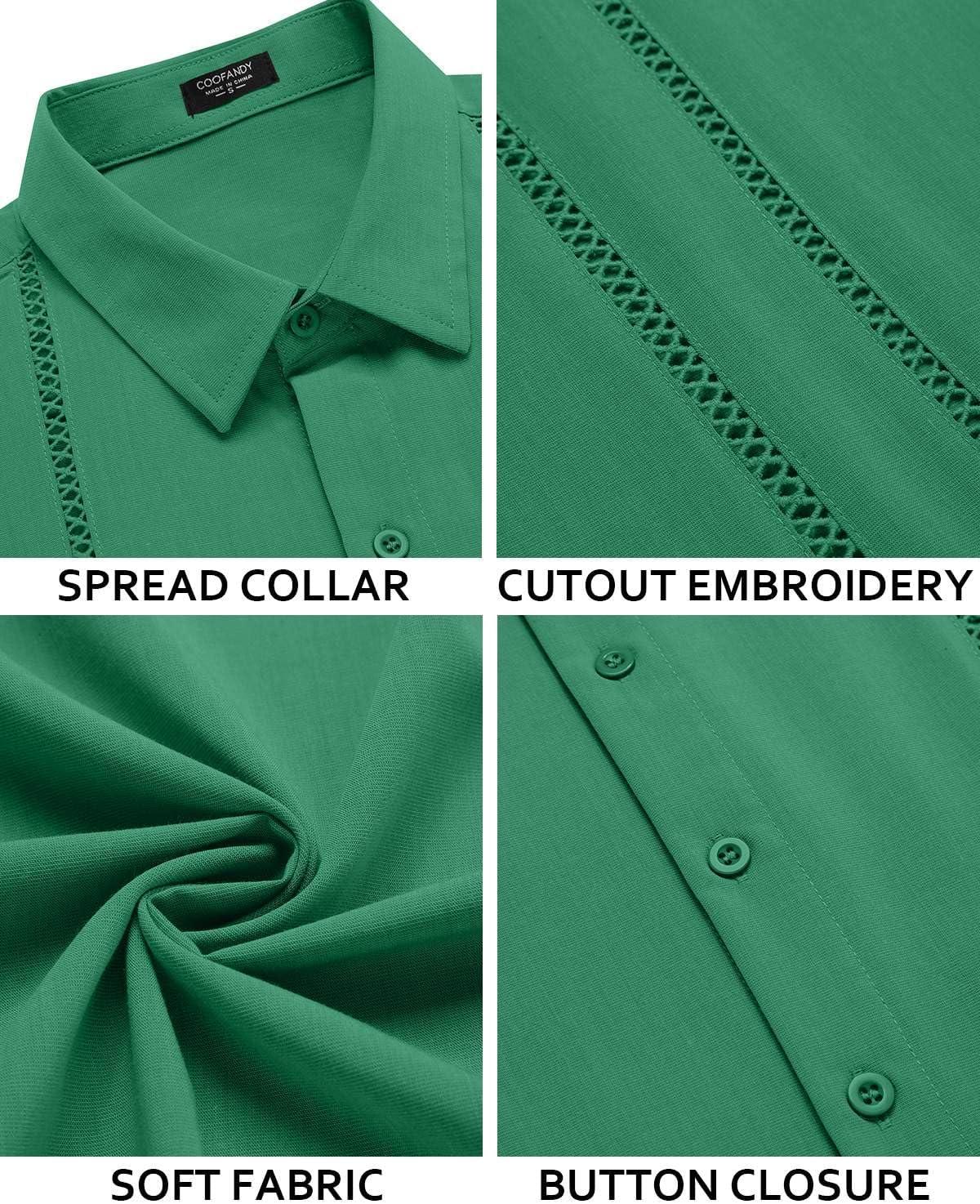 Get your hands on our exclusive COOFANDY Men’s Cuban Guayabera Shirt Short Sleeve Button Down Shirts Casual Summer Beach Linen Shirts(Oasis Green) collection, now at a discounted price.