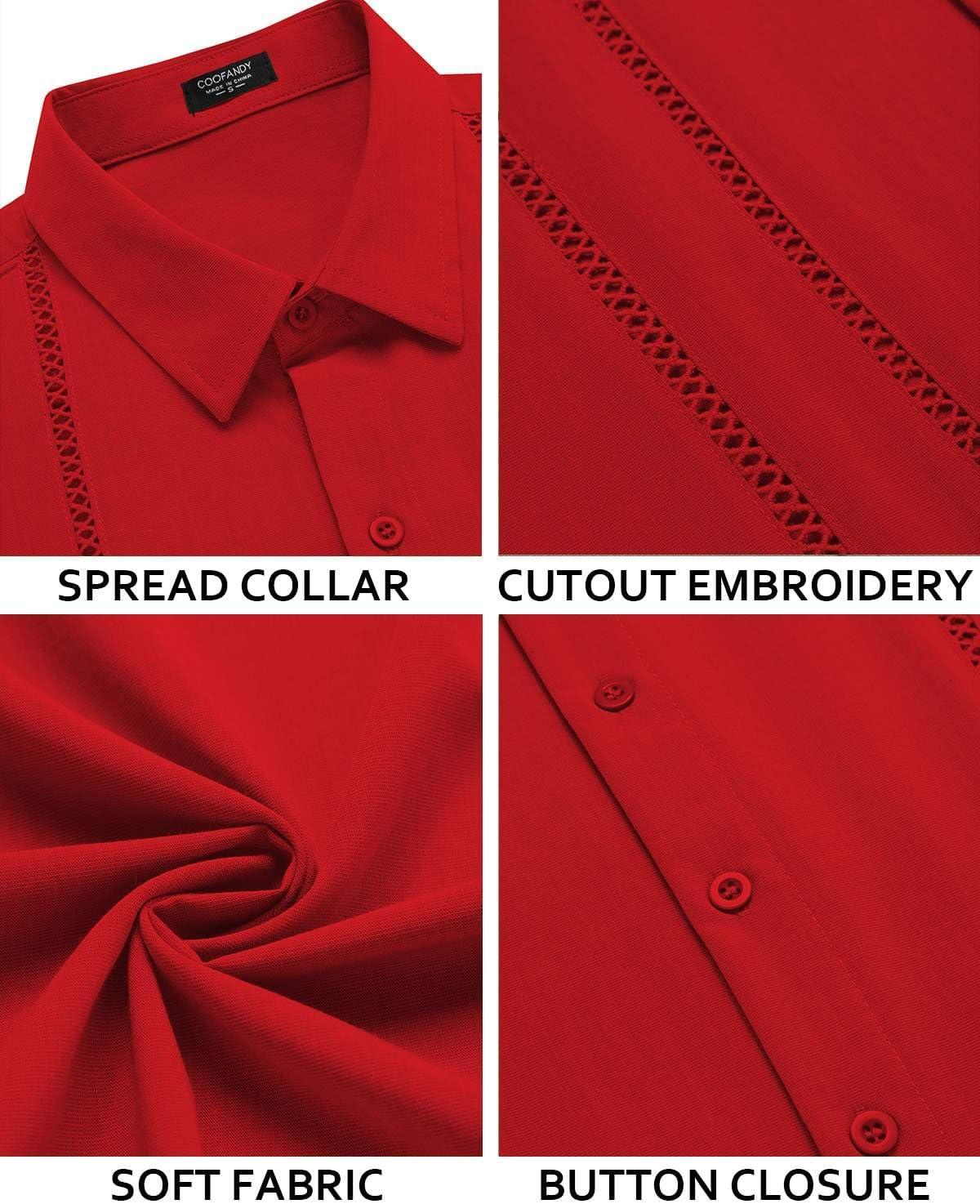 COOFANDY Men's Cuban Guayabera Shirt Short Sleeve Button Down Shirts Casual Summer Beach Linen Shirts(Red)