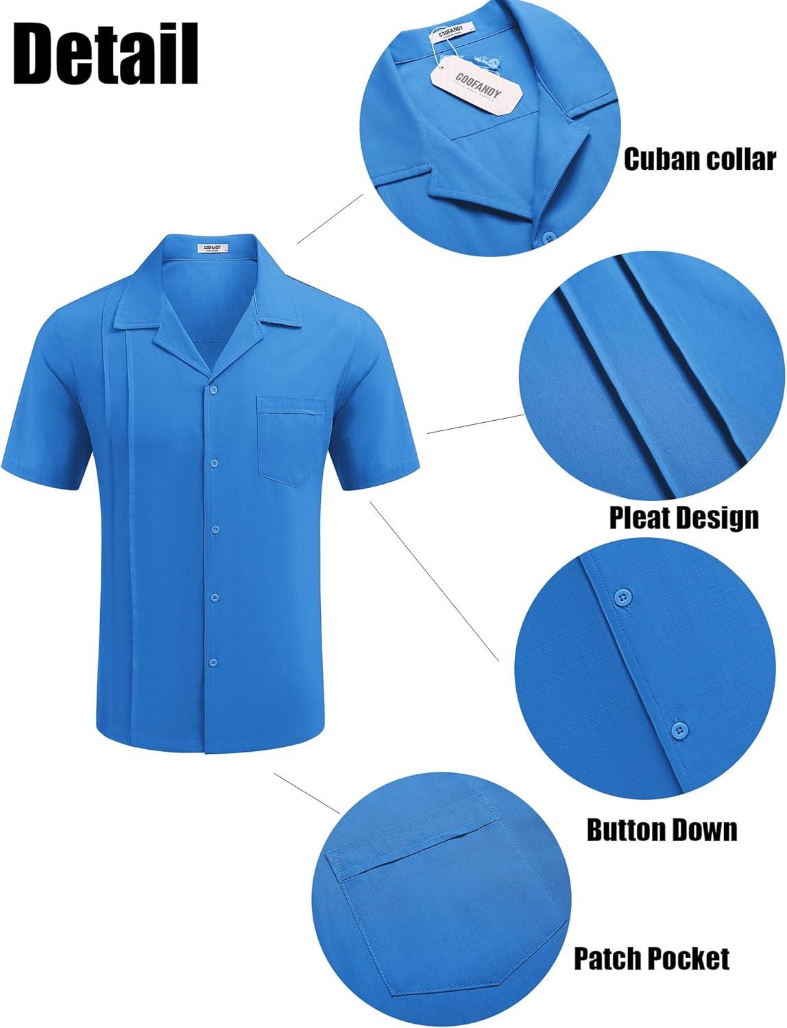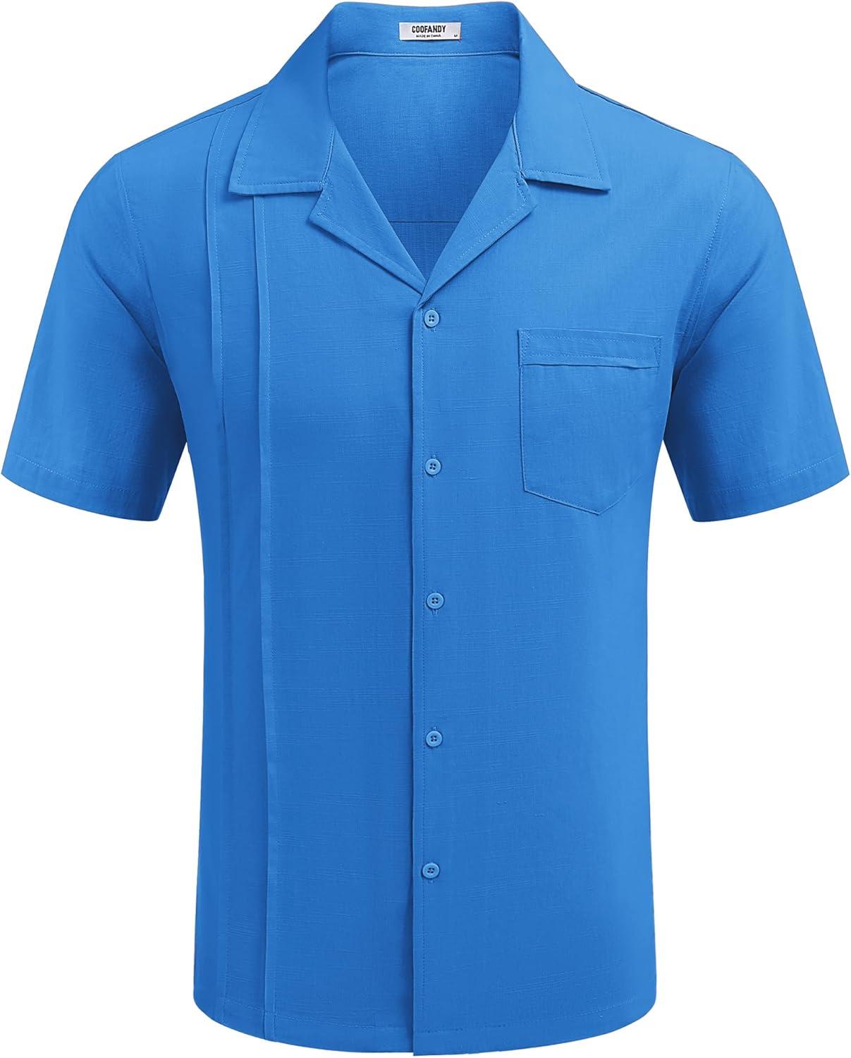 COOFANDY Mens Cuban Guayabera Shirt Short Sleeve Button Down Shirts Casual Summer Linen Shirts(Blue)