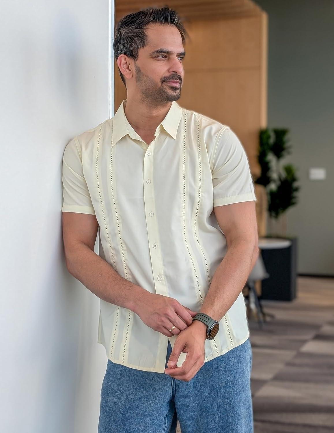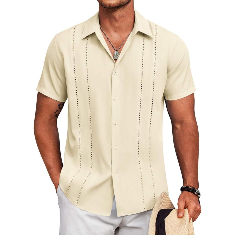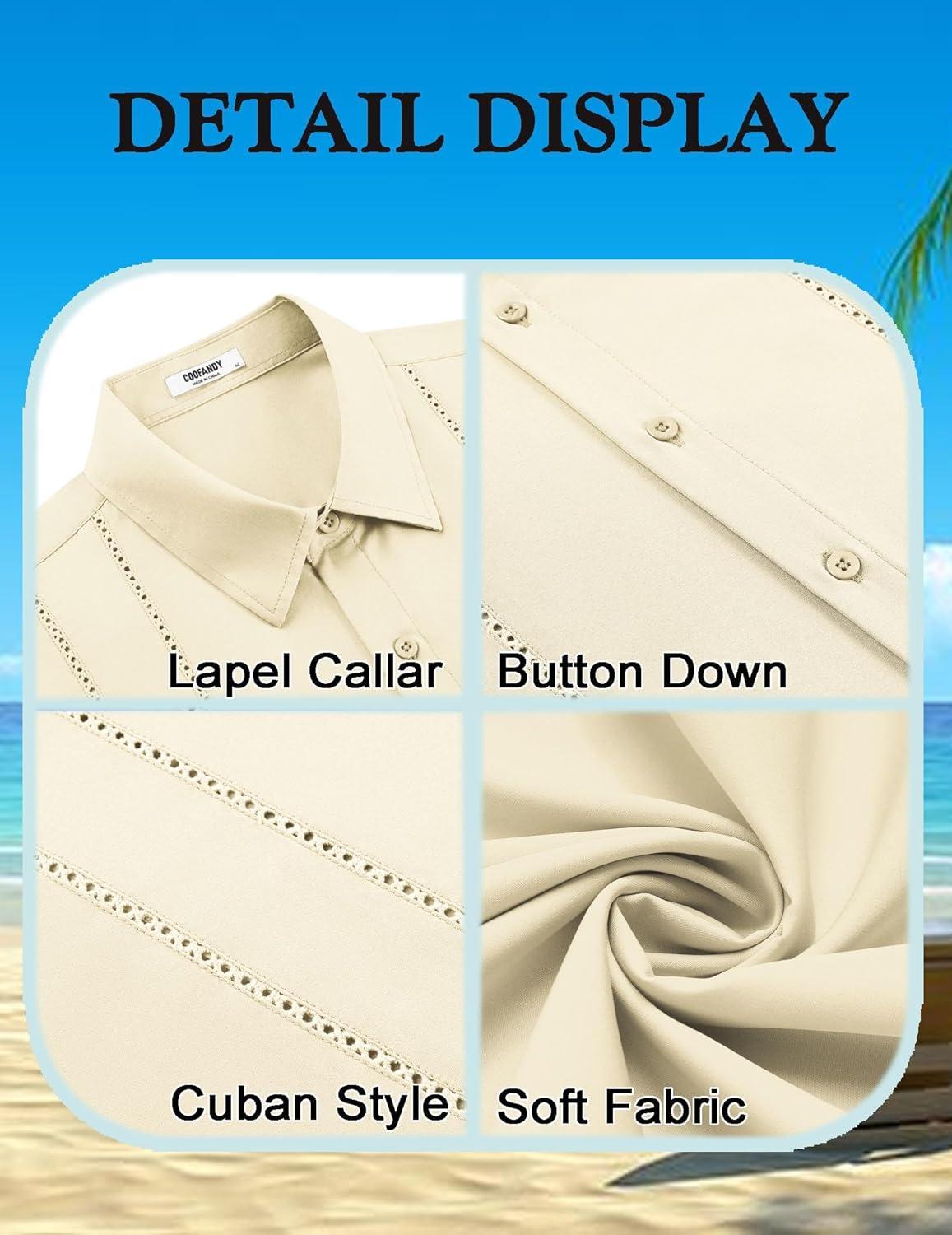 COOFANDY Mens Cuban Guayabera Shirt Short Sleeve Button Down Shirts Summer Beach Vacation Shirts(Beige)