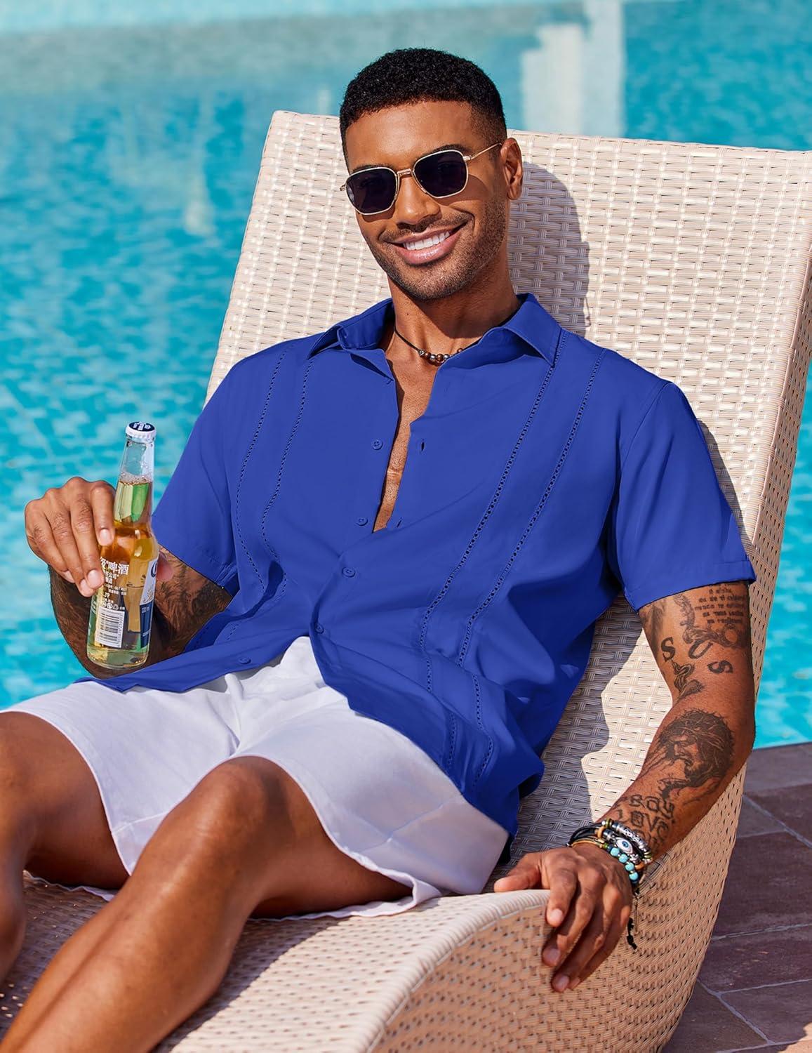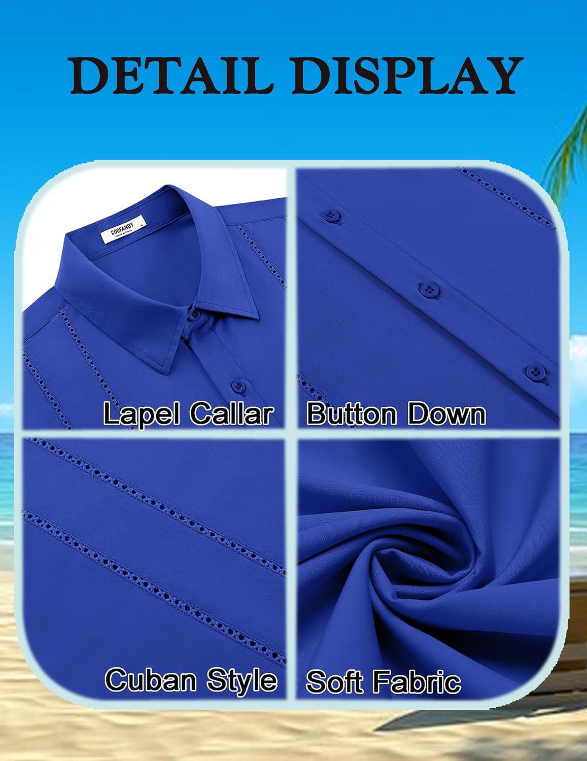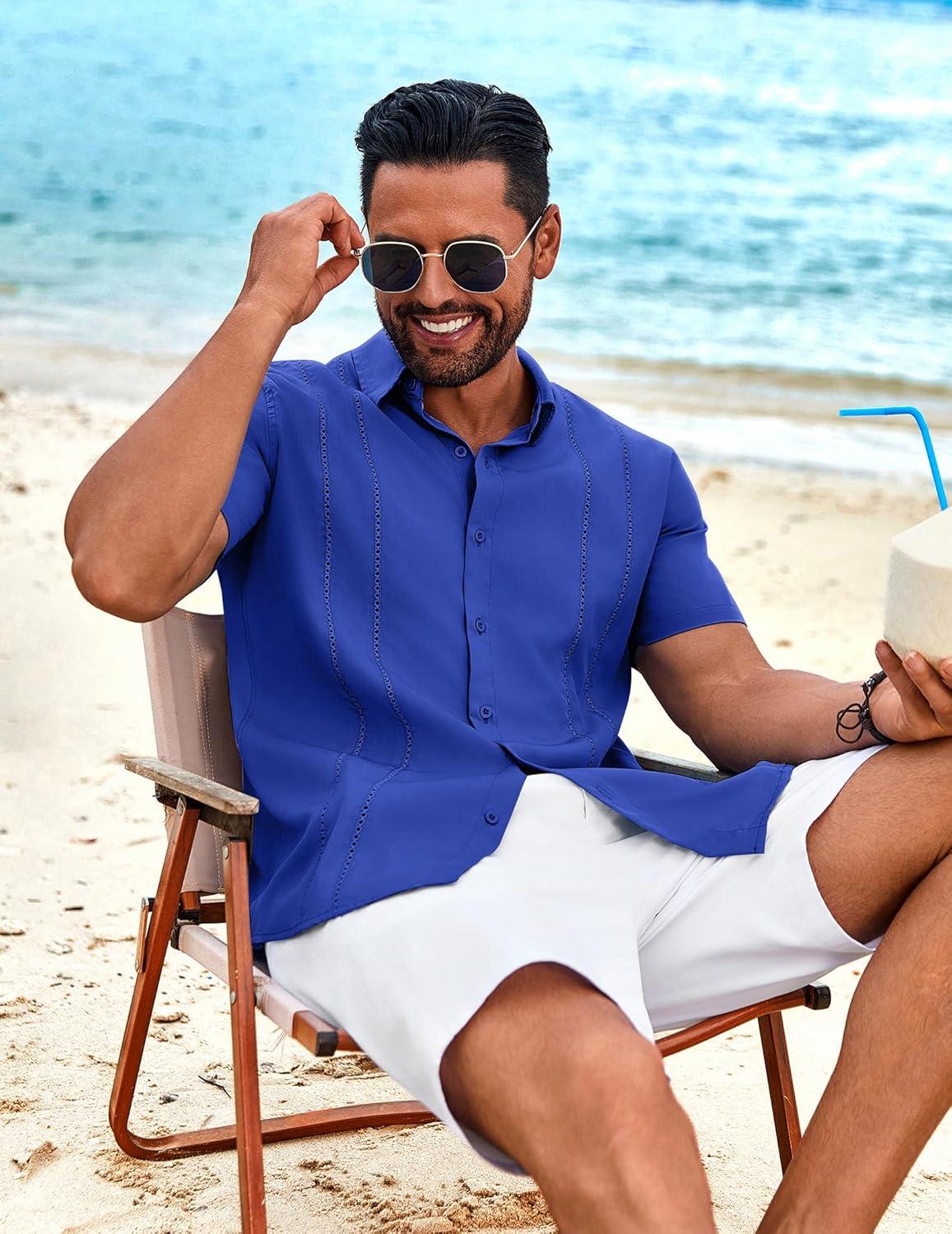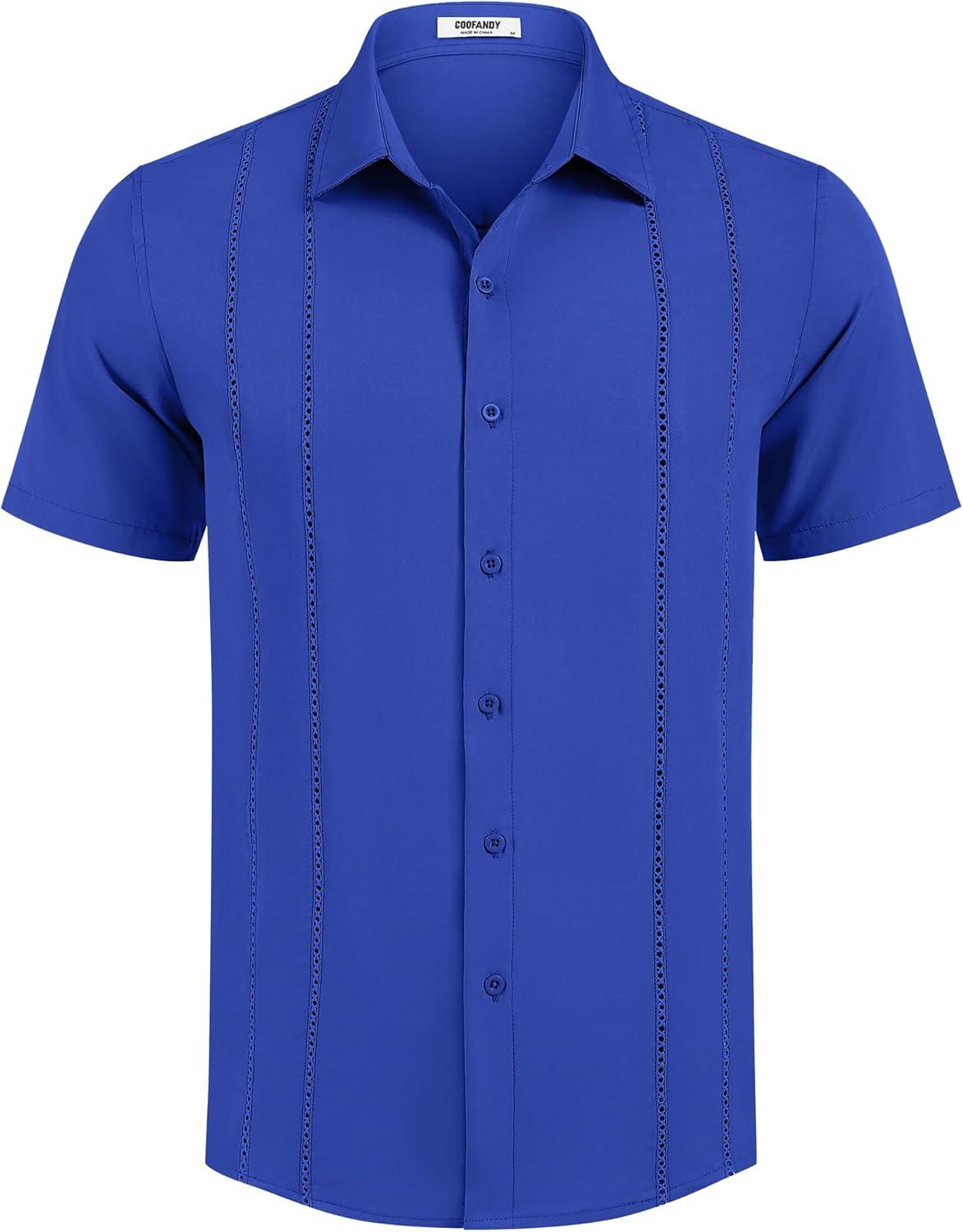 COOFANDY Mens Cuban Guayabera Shirt Short Sleeve Button Down Shirts Summer Beach Vacation Shirts(Bright Royal)