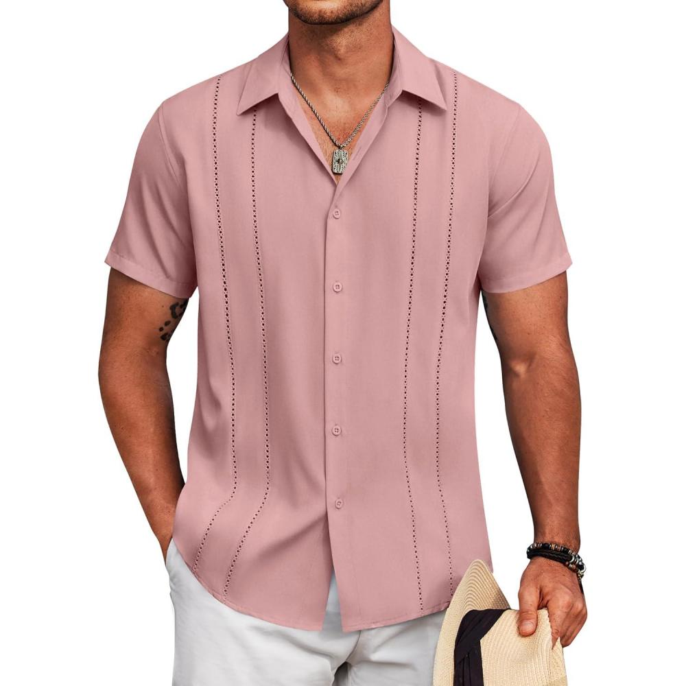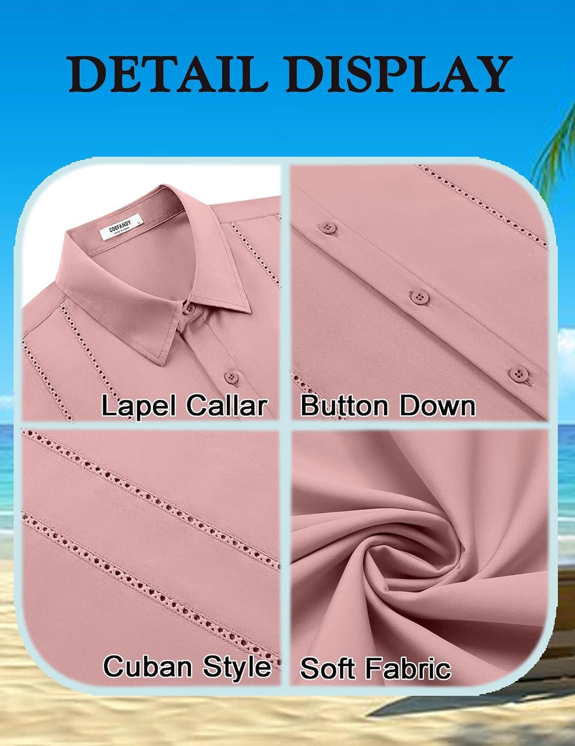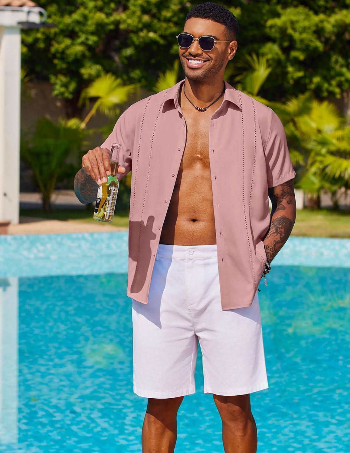 COOFANDY Mens Cuban Guayabera Shirt Short Sleeve Button Down Shirts Summer Beach Vacation Shirts(Dusty Pink)