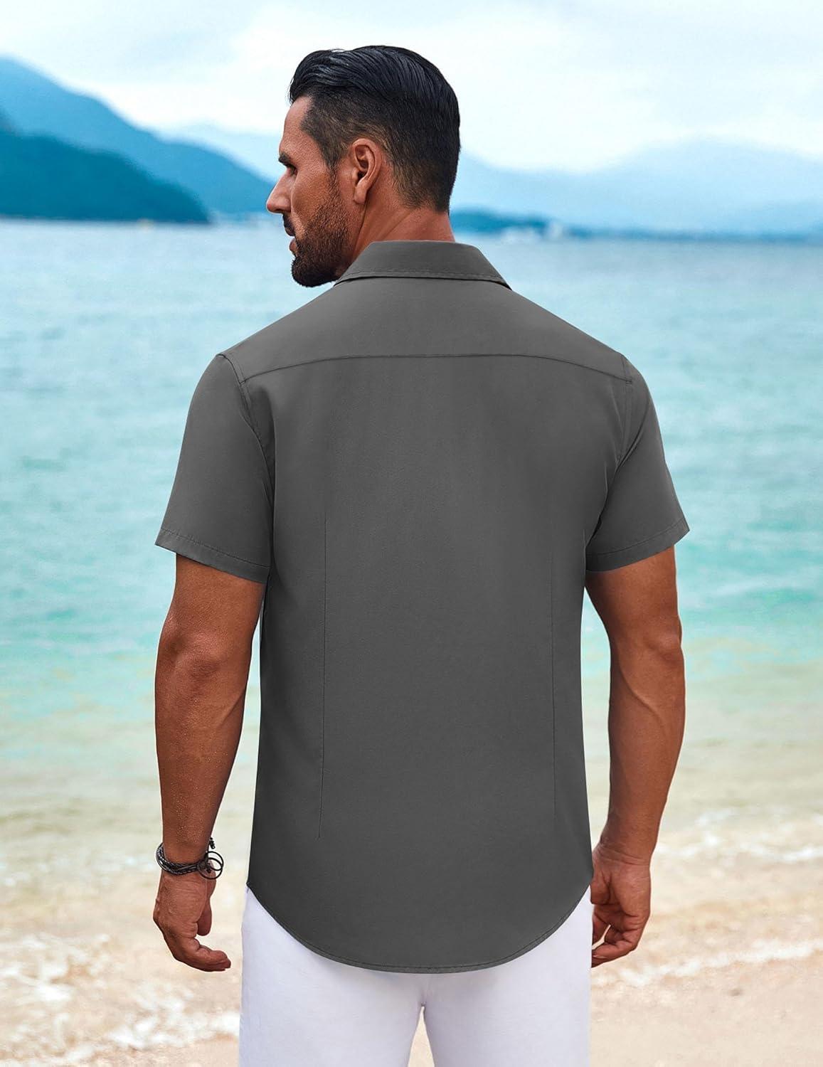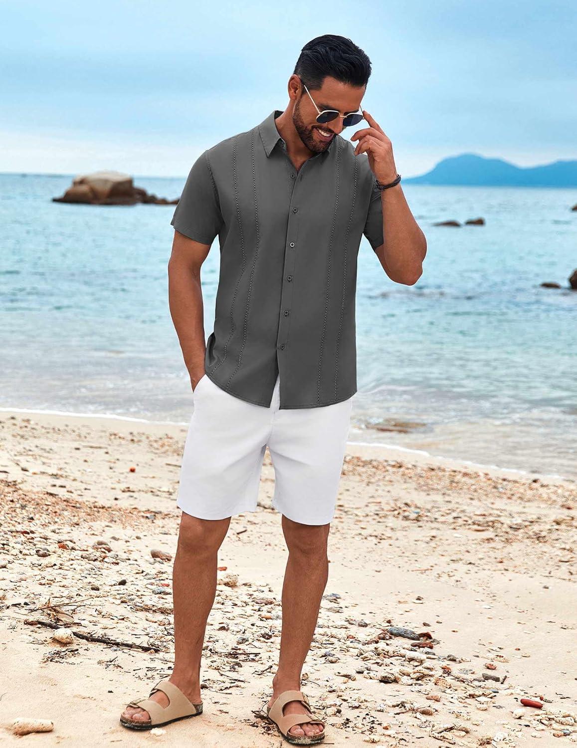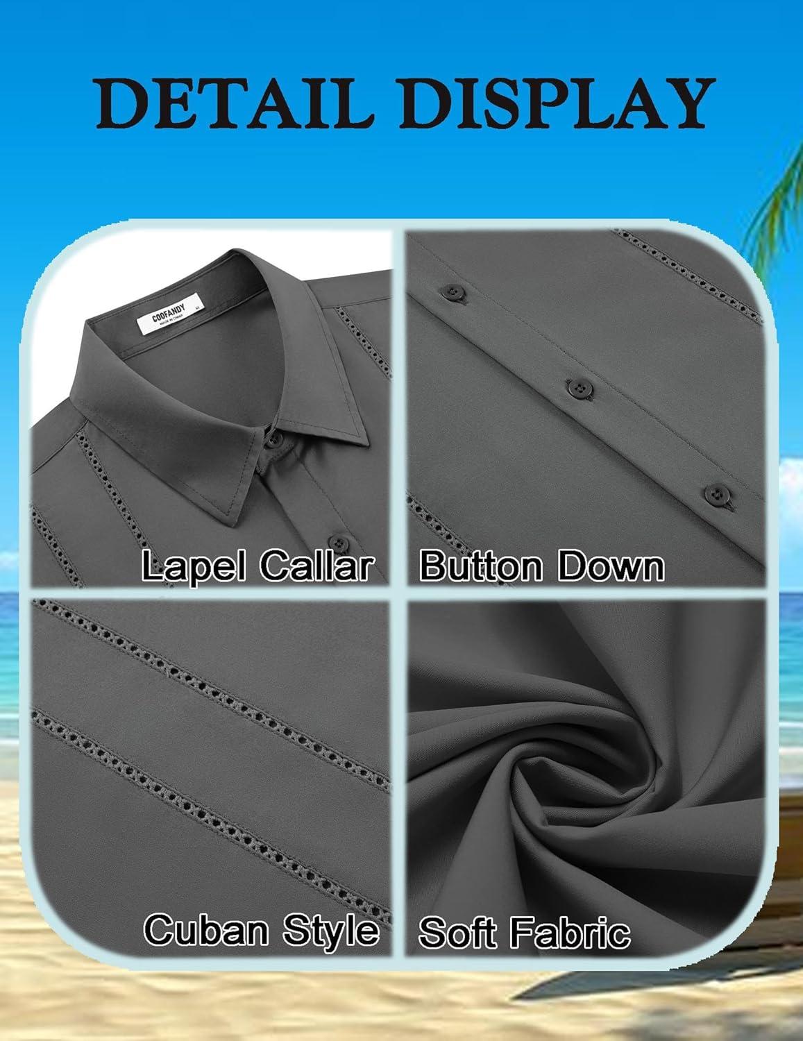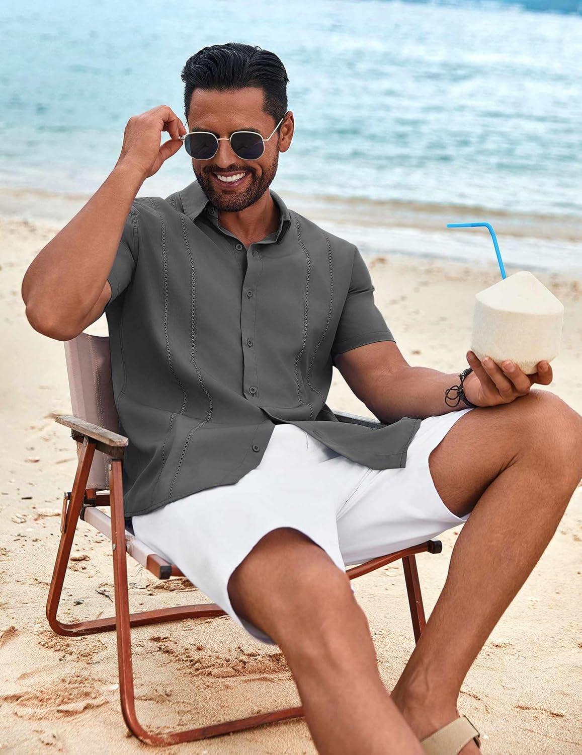 COOFANDY Mens Cuban Guayabera Shirt Short Sleeve Button Down Shirts Summer Beach Vacation Shirts(Gray)