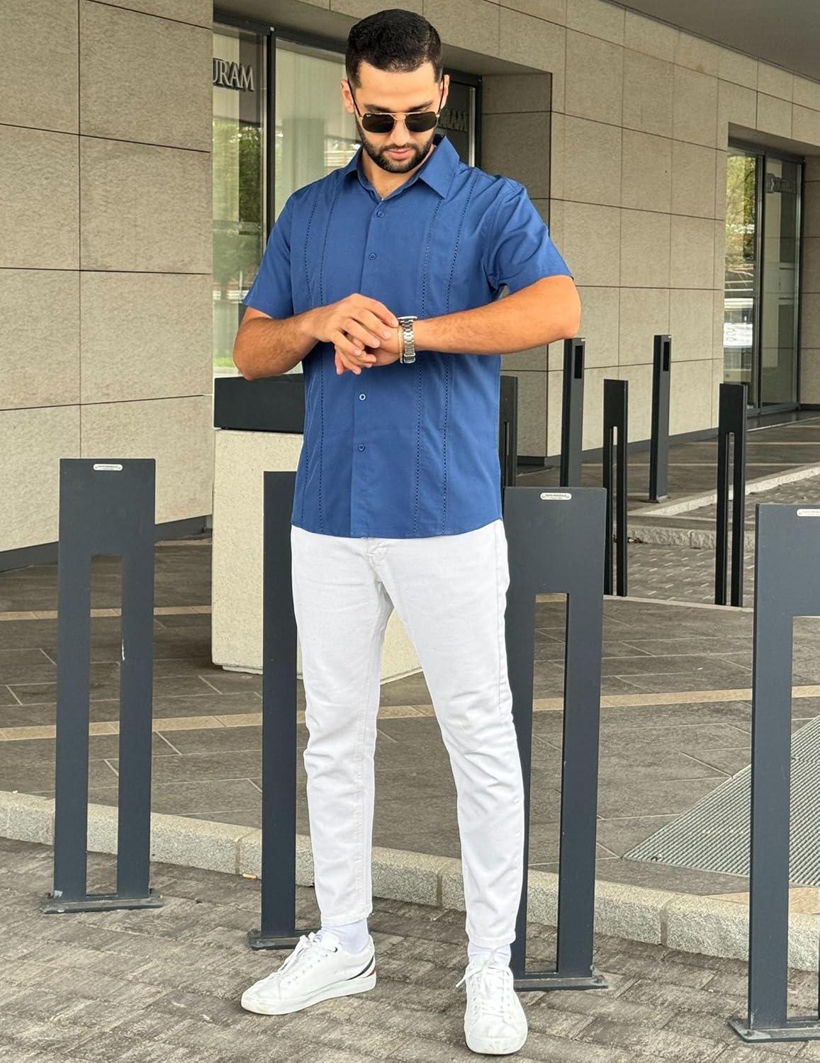 COOFANDY Mens Cuban Guayabera Shirt Short Sleeve Button Down Shirts Summer Beach Vacation Shirts(Royal Blue)